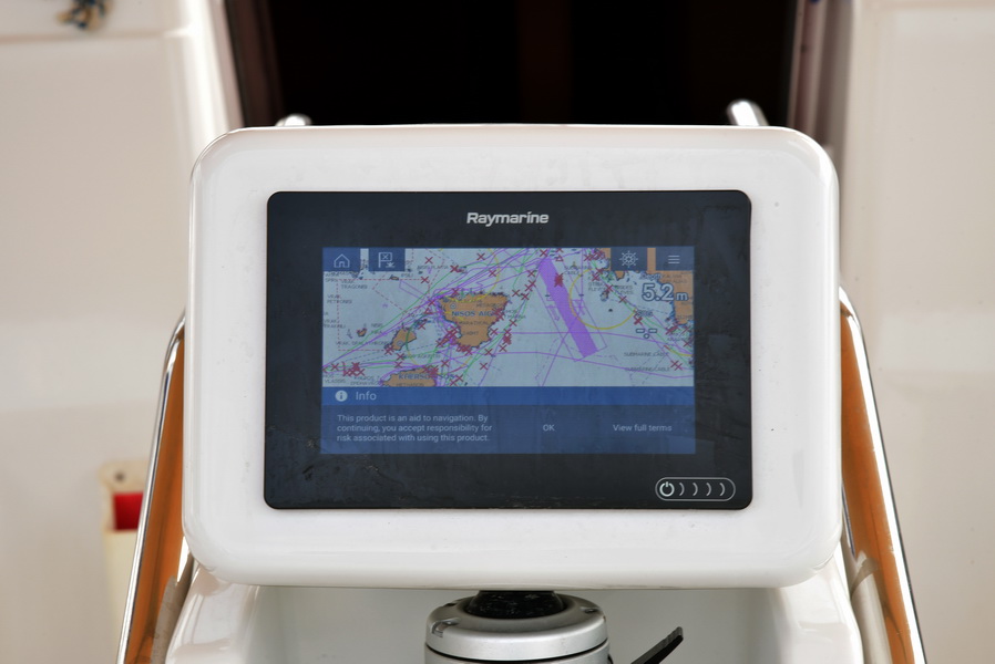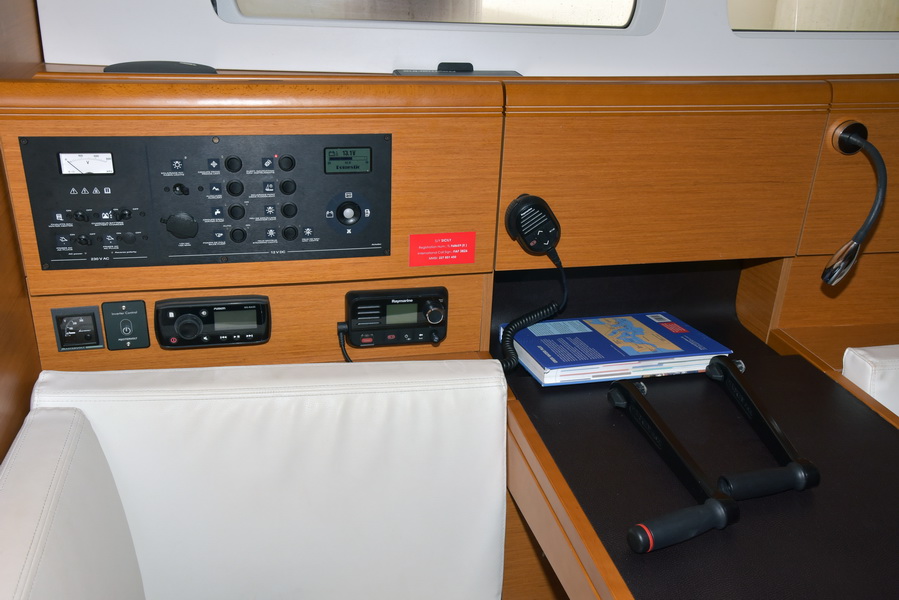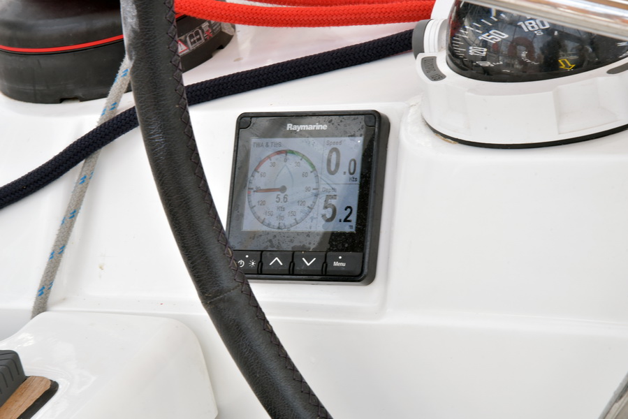 | Navigation | Echolot, elektr. Seekarten, GPS mit Kartenplotter im Cockpit, Hafenhandbücher, Navigationsbesteck, Sumlog, Windmesser |