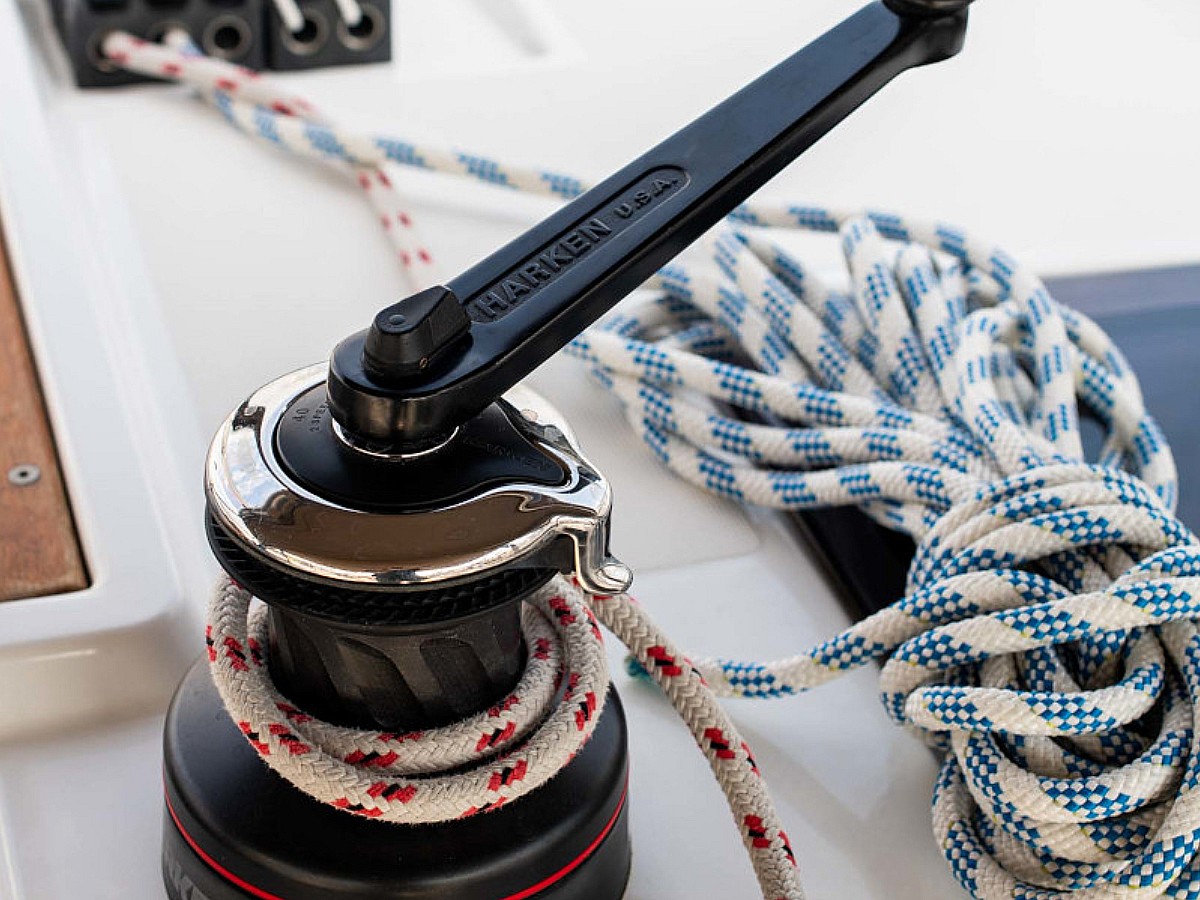 Safety Autopilot, Bootsmannstuhl, Bordapotheke, Bugstrahlruder, Epirb, Feuerlöscher, Nebelhorn, Notsignale, Radarreflektor, Reparaturset für Beiboot, Rettungsinsel, Rettungskragen, Rettungswesten, Sicherheitsausrüstung, Sicherheitsgurt, UKW-Funk