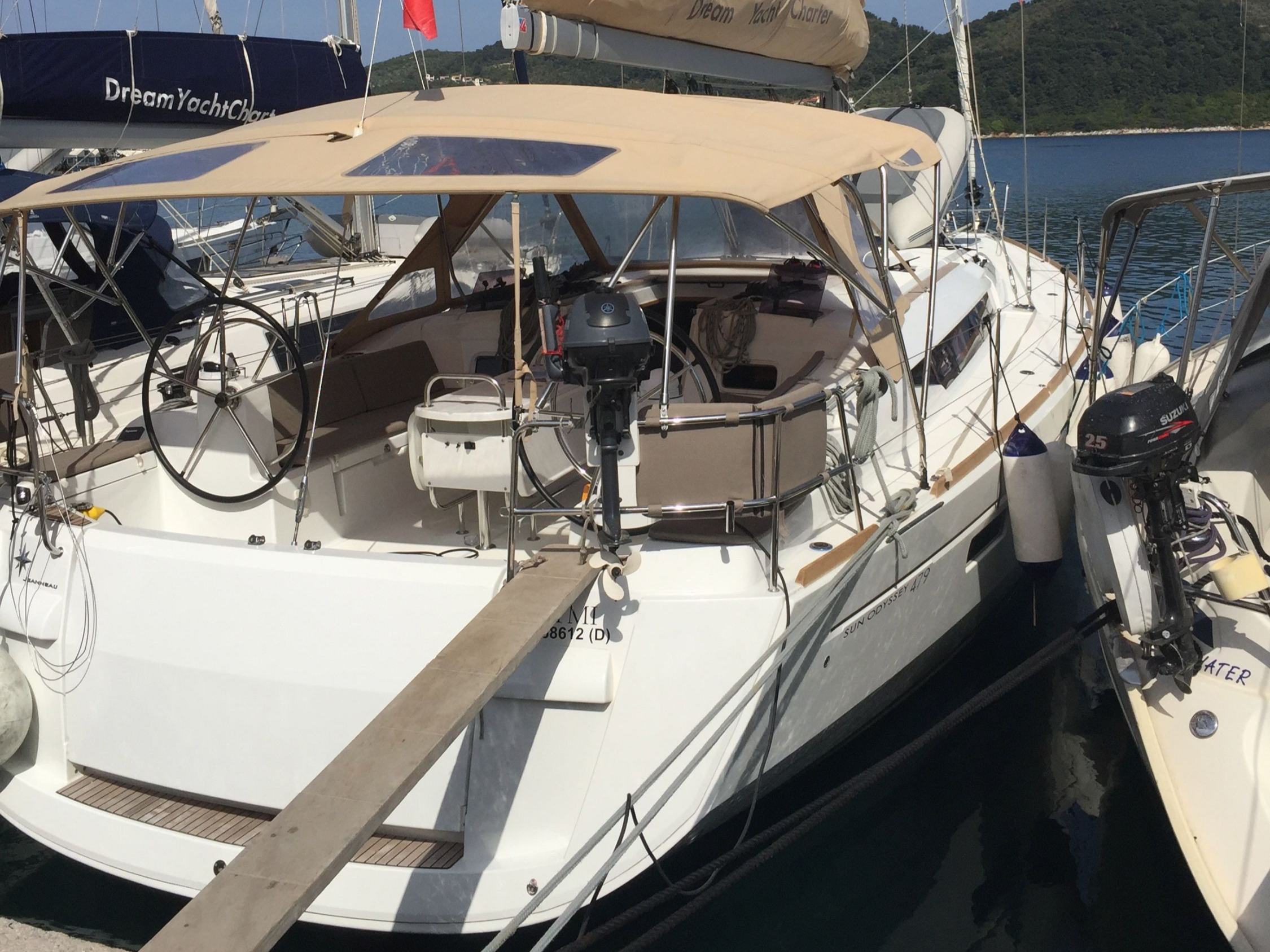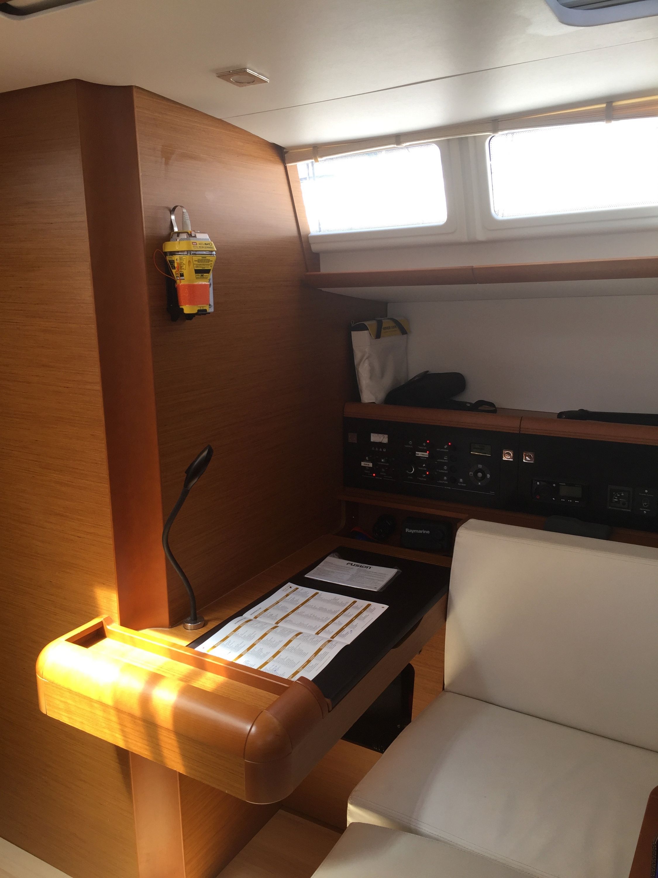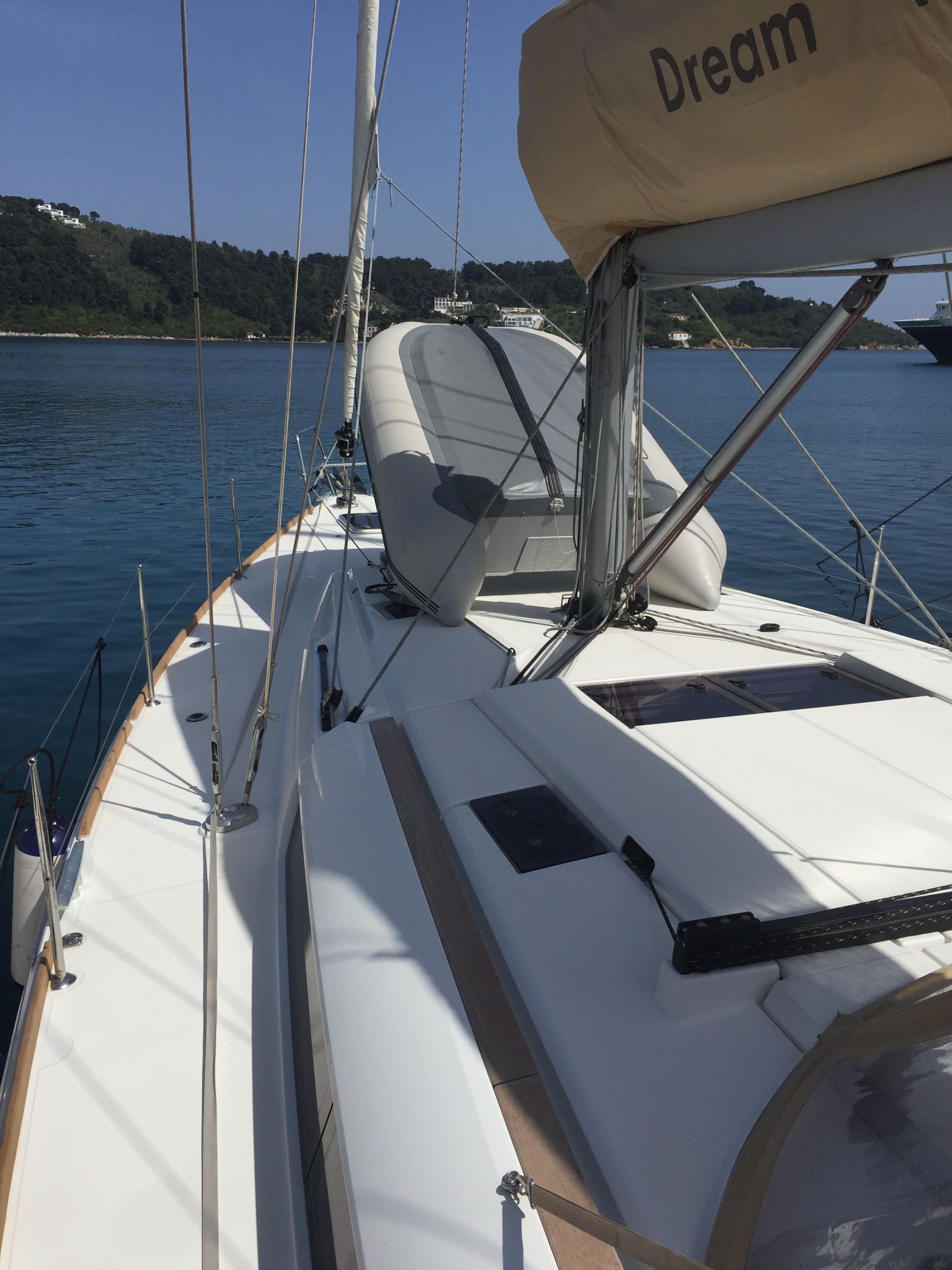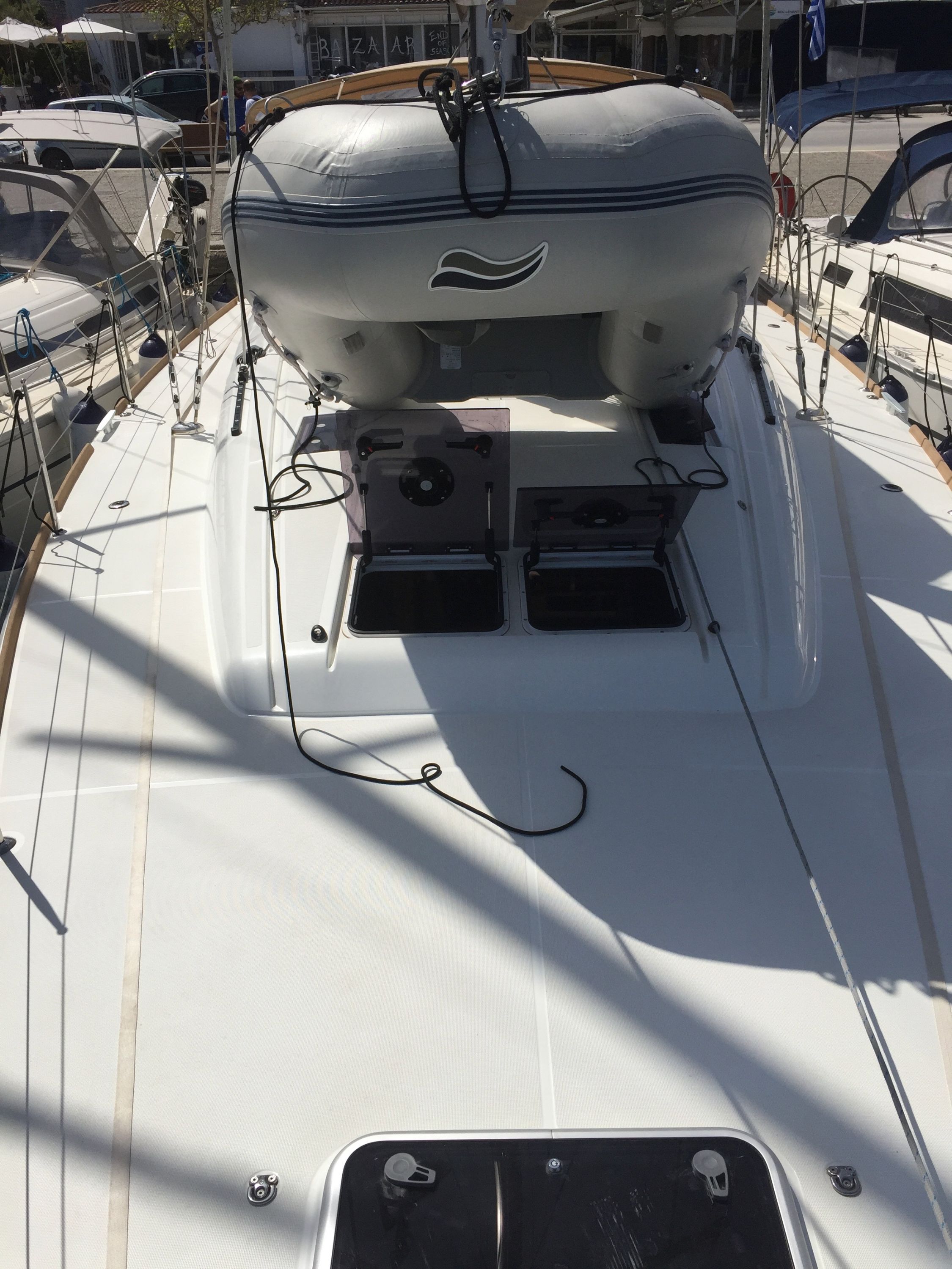 | Outside | Badeleiter, Biminitop, Cockpitdusche, Cockpitlautsprecher, Cockpitpolster, Cockpittisch, elektr. Ankerwinsch, Sprayhood |