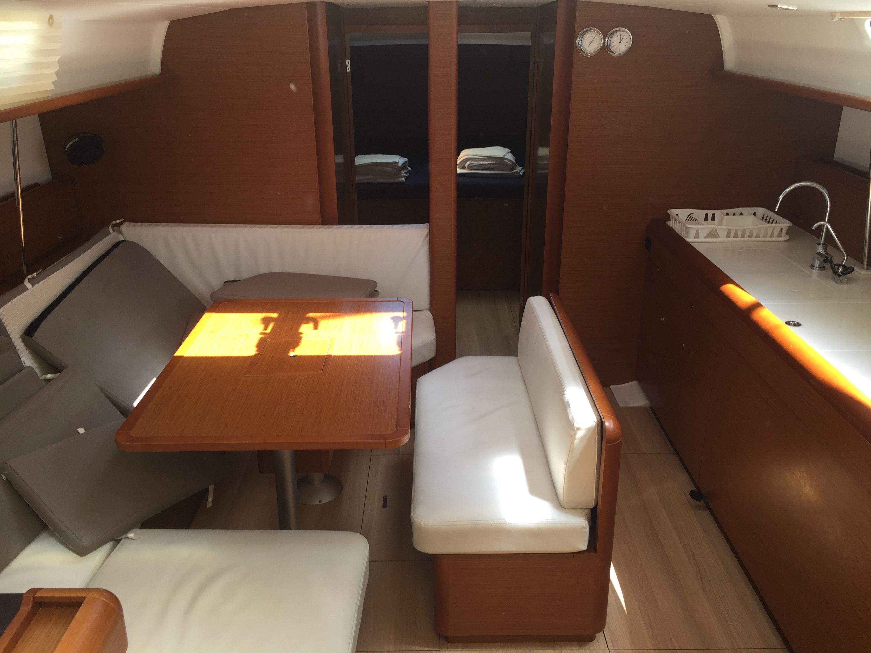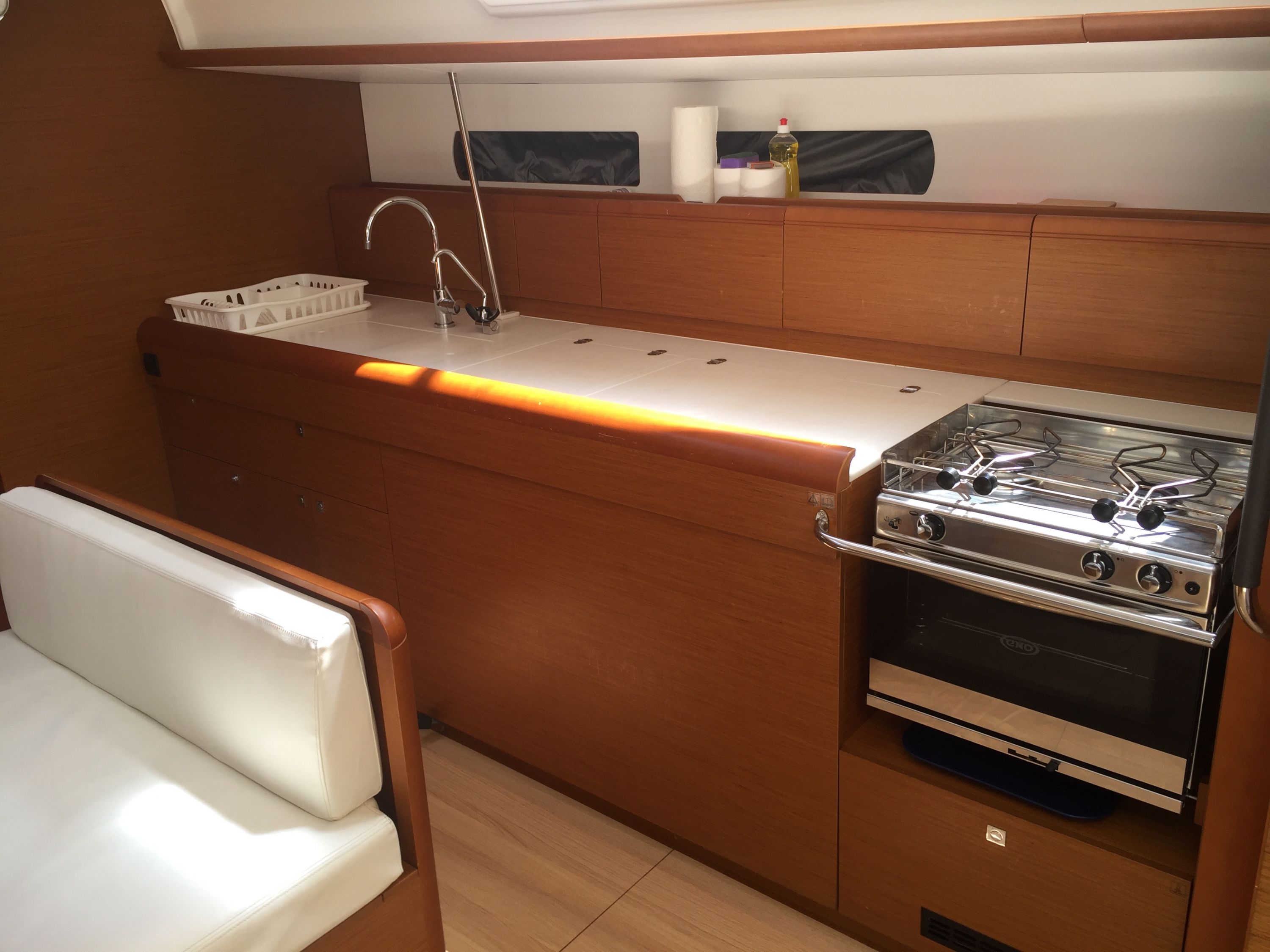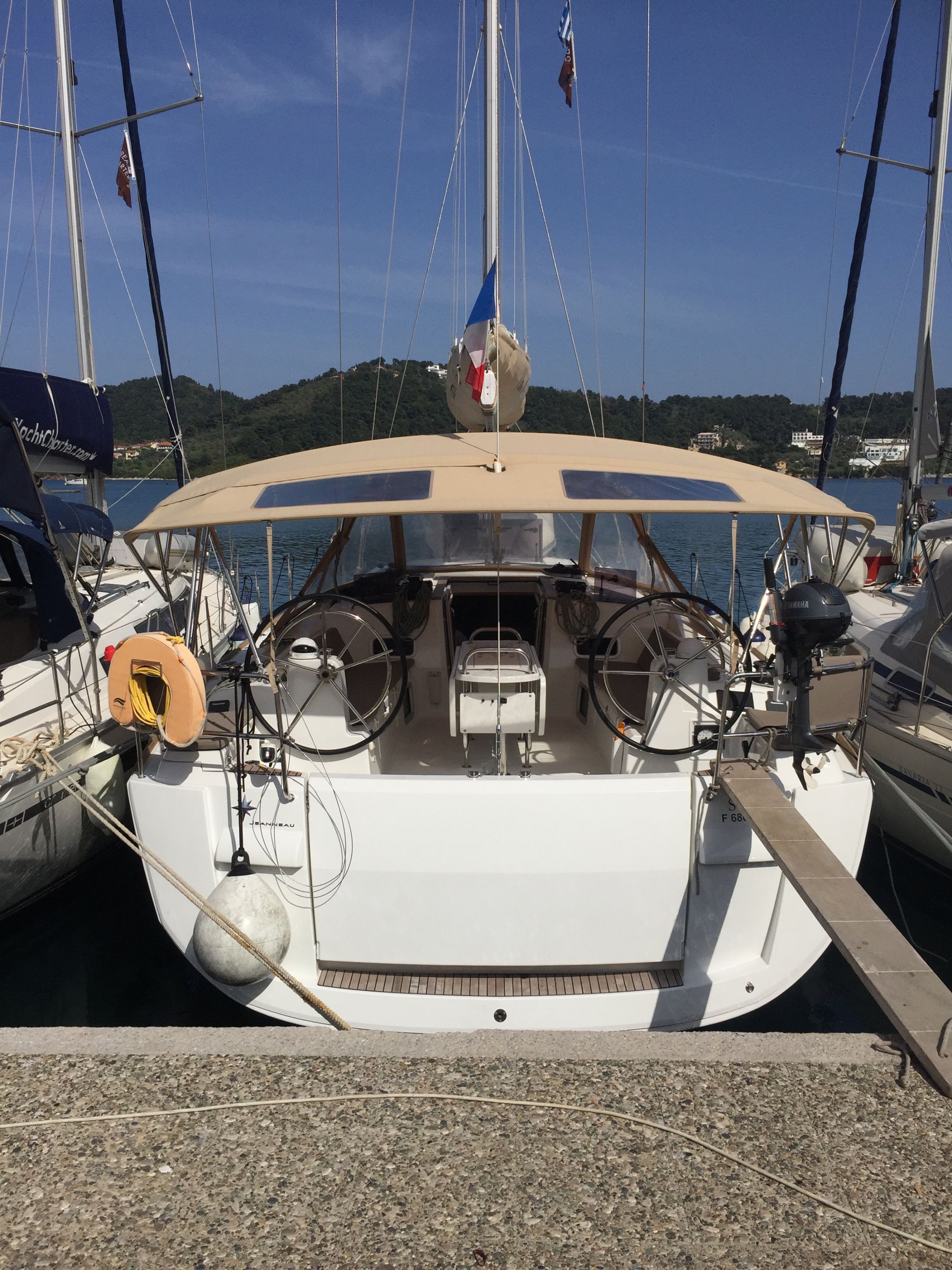 | Outside | Badeleiter, Biminitop, Cockpitdusche, Cockpitlautsprecher, Cockpitpolster, Cockpittisch, elektr. Ankerwinsch, Sprayhood |