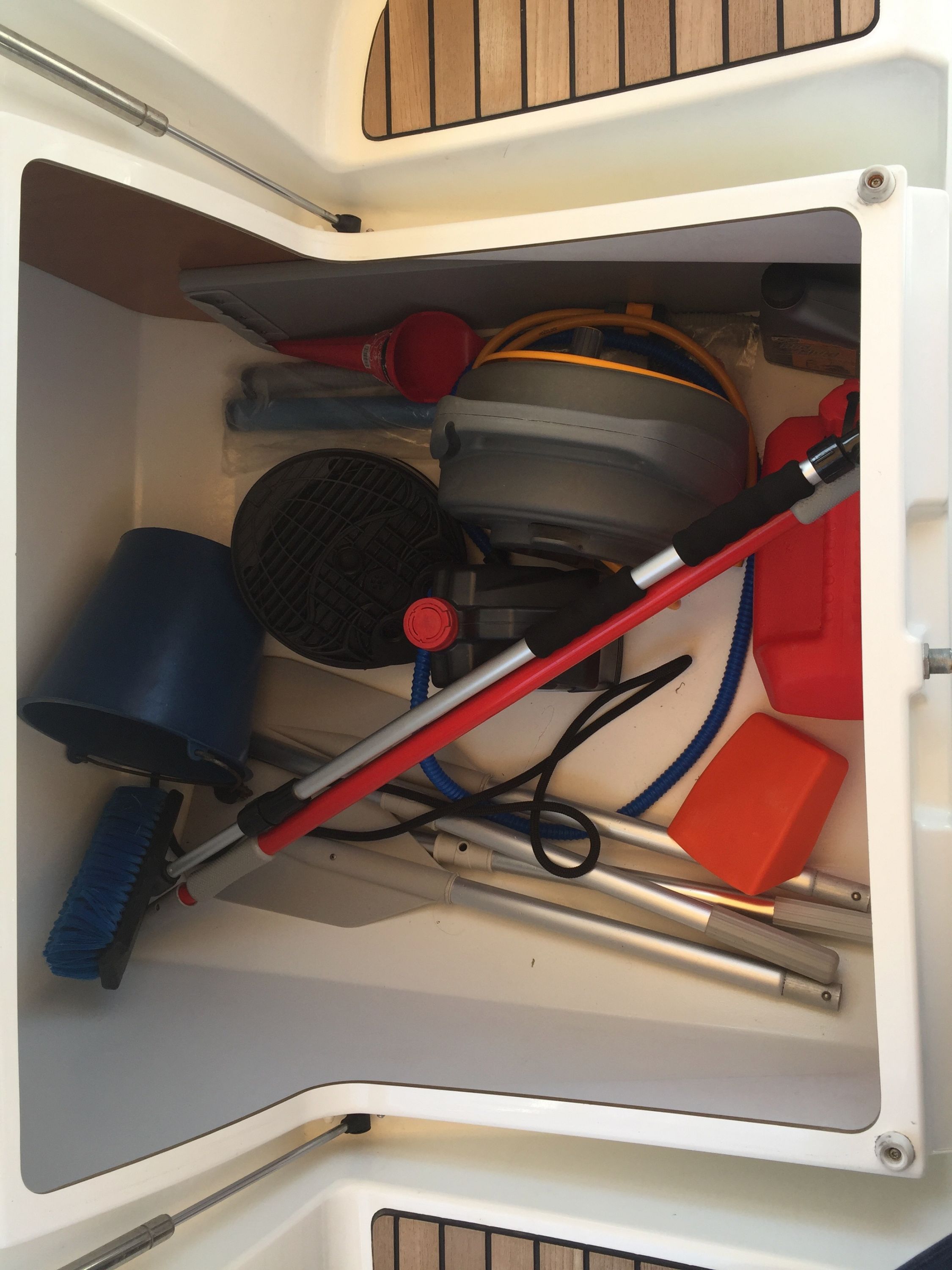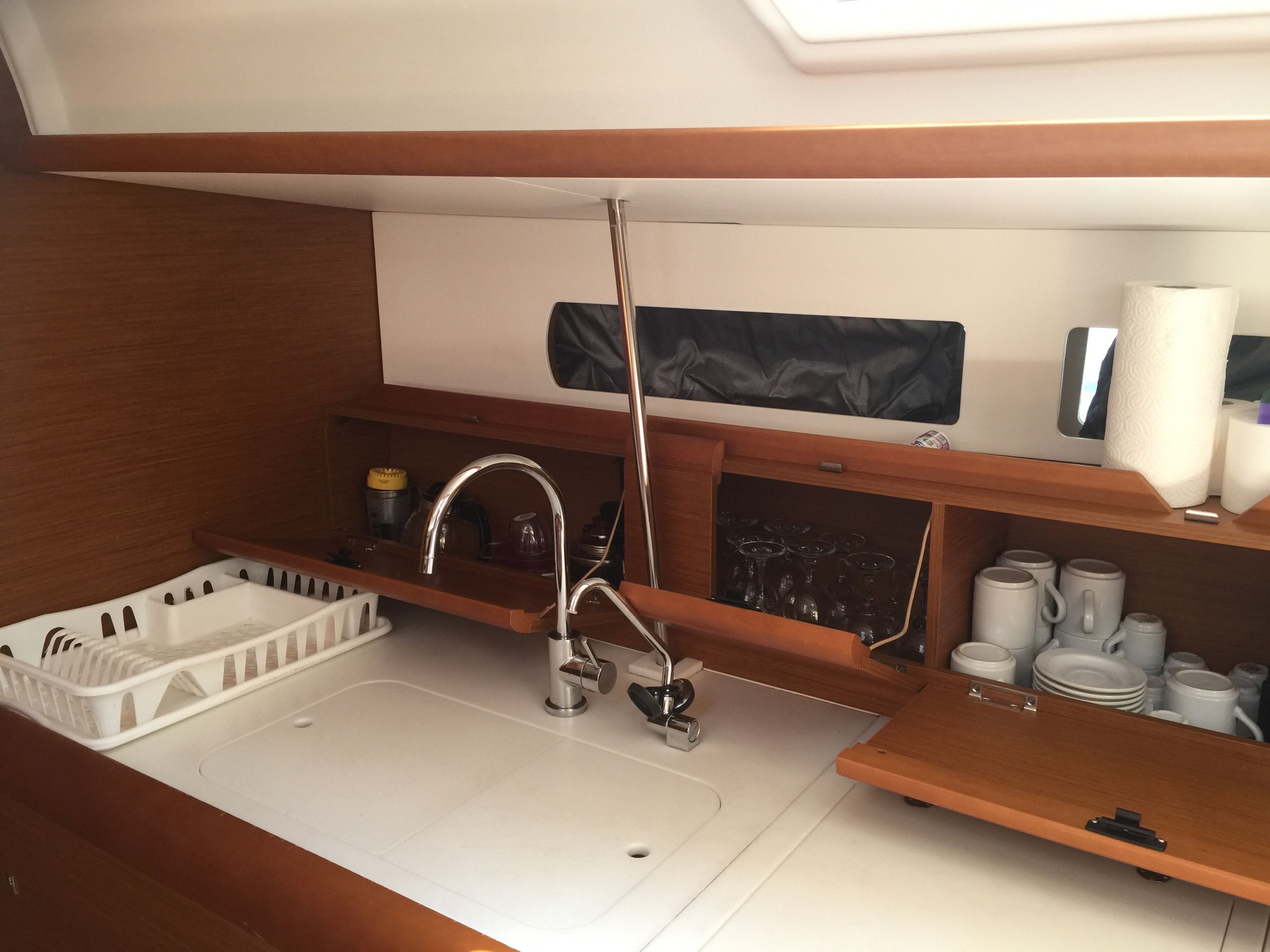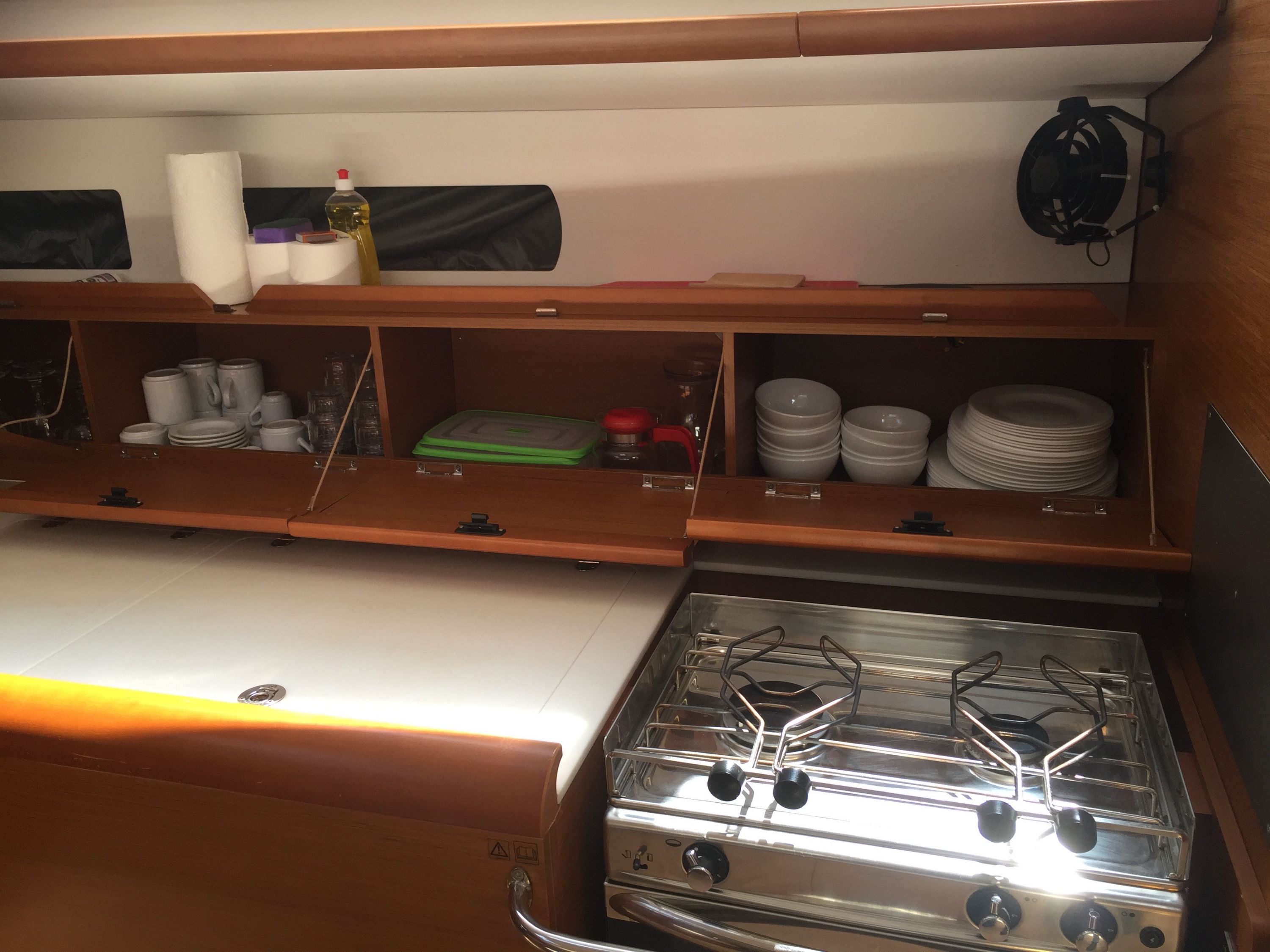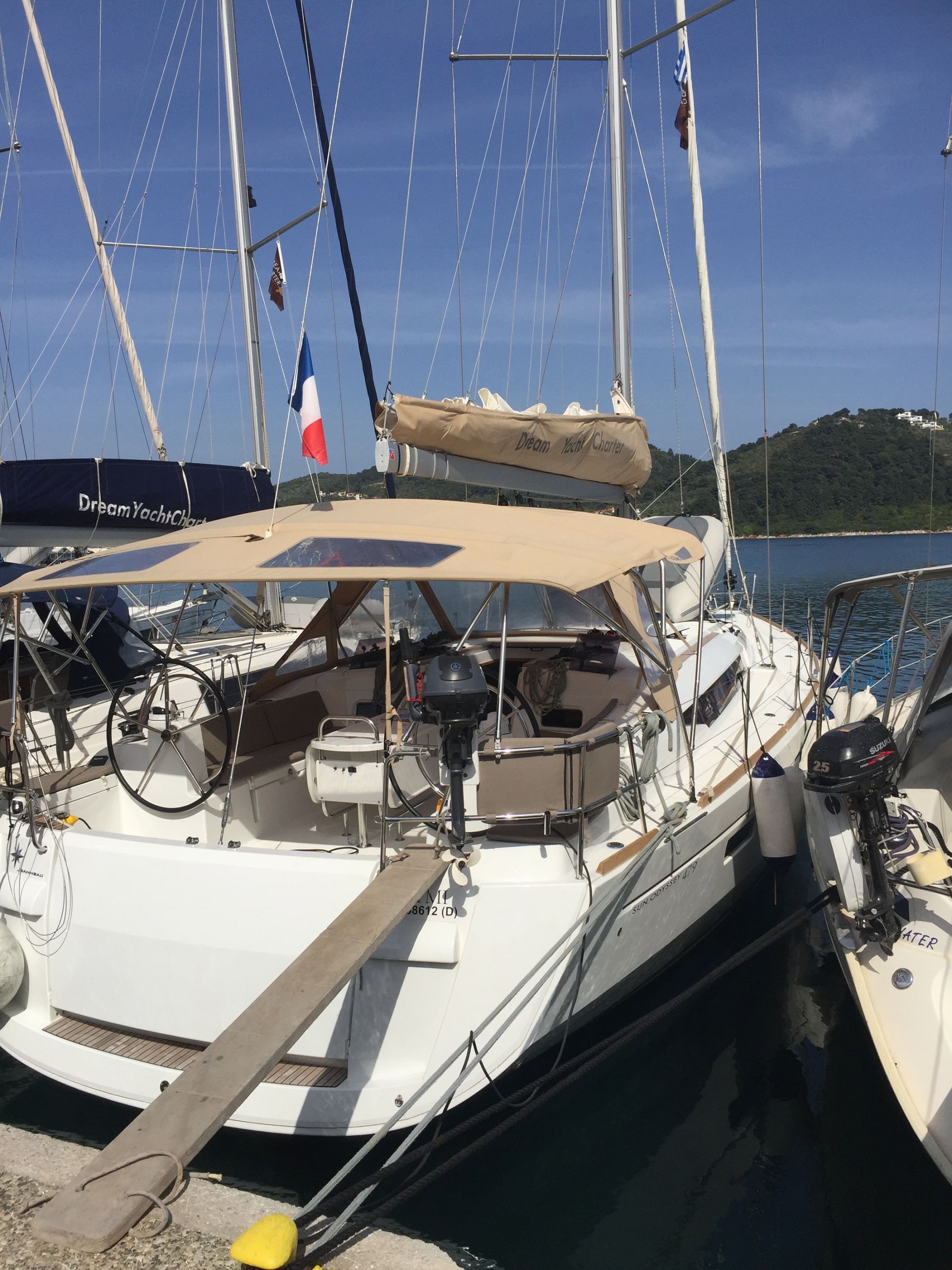 | Outside | Badeleiter, Biminitop, Cockpitdusche, Cockpitlautsprecher, Cockpitpolster, Cockpittisch, elektr. Ankerwinsch, Sprayhood |