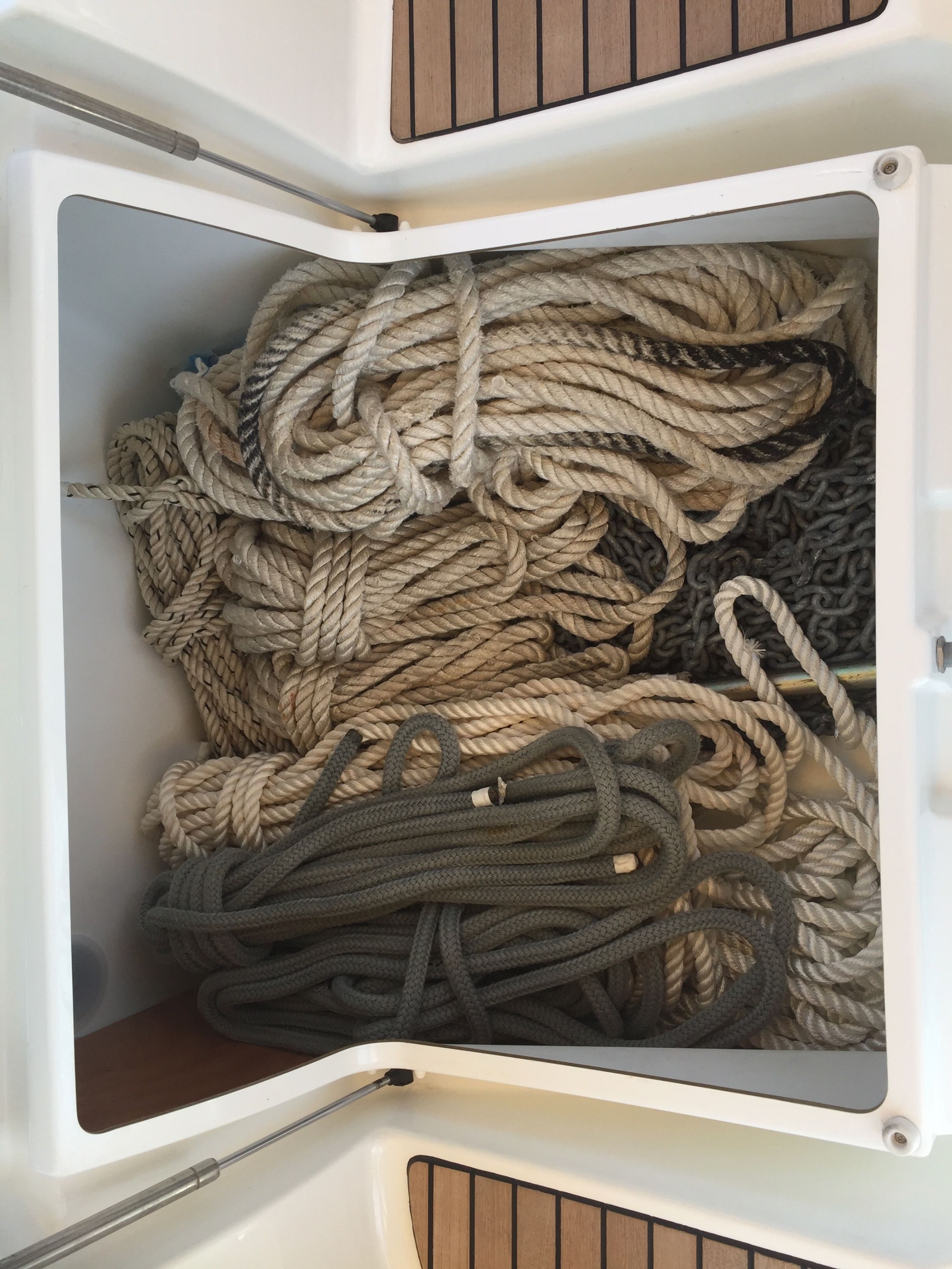 | Navigation | Echolot, GPS mit Kartenplotter im Cockpit, Sumlog, Windmesser |