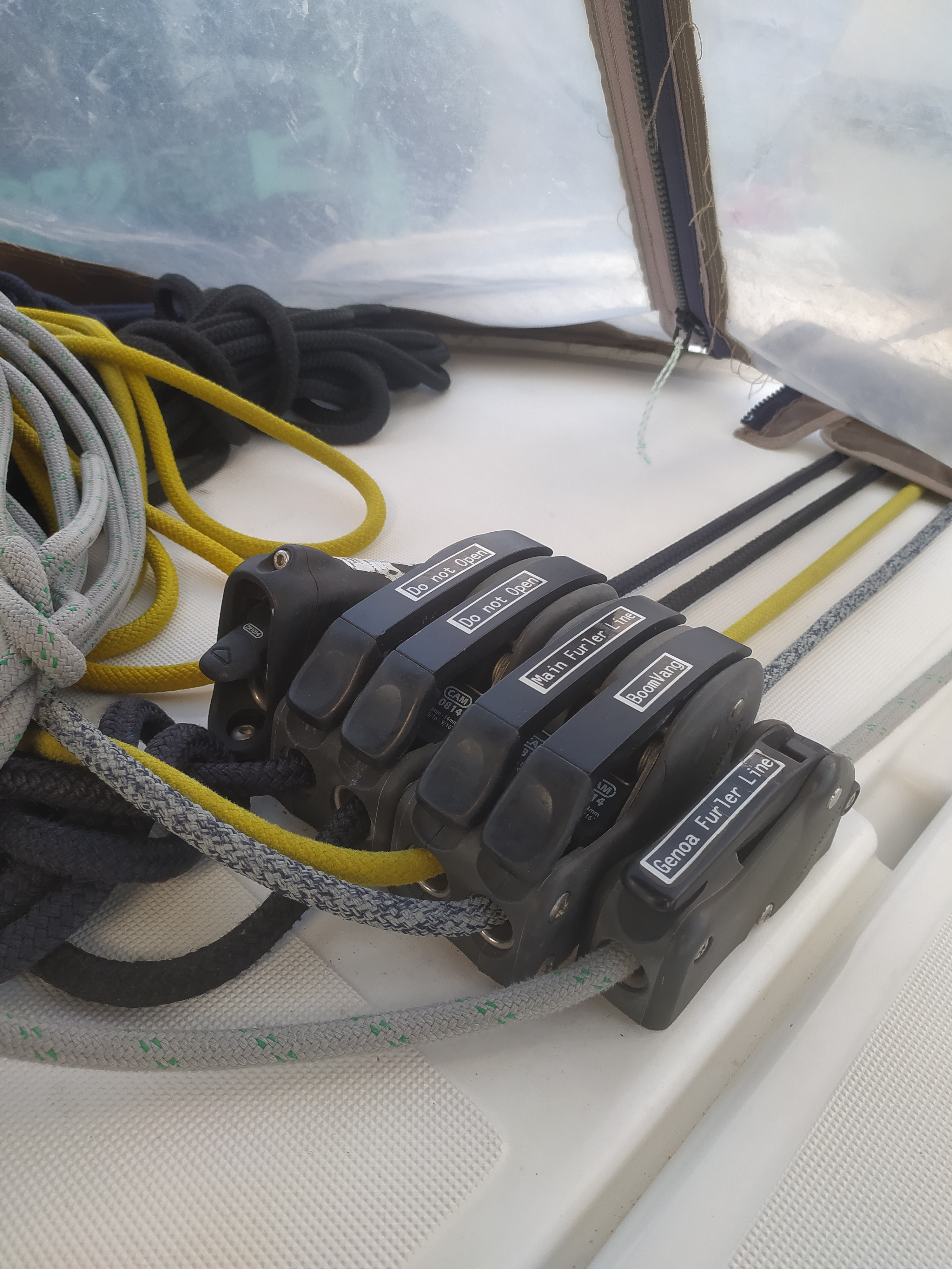 | Outside | Anker mit Kette, Biminitop, Cockpitdusche, Cockpitlautsprecher, Cockpitpolster, Cockpittisch (klappbar), Deckbürste, elektr. Ankerwinsch, Fender, Kunststoff-Eimer (Pütz), Sprayhood |