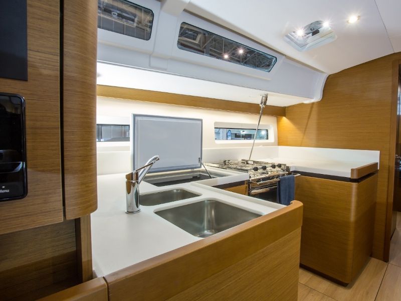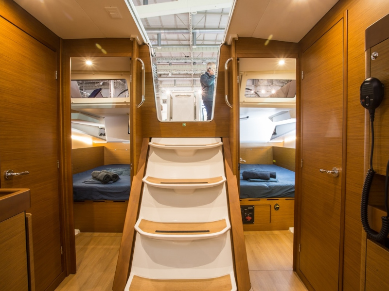 | Safety | Automatikwesten, Autopilot, Bootsmannstuhl, Bordapotheke, Bugstrahlruder, elektr. Bilgepumpe, Epirb, Feuerlöscher, GMDSS, Nebelhorn, Notpinne, Notsignale, Radarreflektor, Rettungsinsel, Rettungskragen, Teak-Seitendeck, UKW-Funk, Zweitanker |