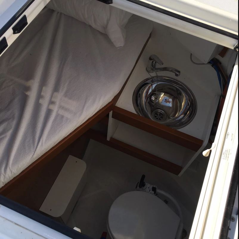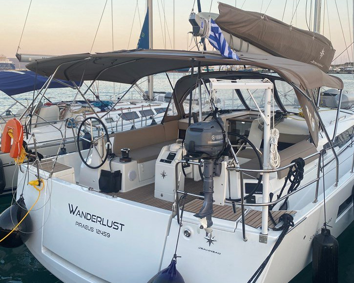 | Outside | Anker mit Kette, Badeleiter, Biminitop, Bootshaken, Cockpitdusche, Cockpitpolster, Deckbürste, Dieselkanister , elektr. Ankerwinsch, Fender, Festmacherleinen, Gangway, Kunststoff-Eimer (Pütz), Solaranlage, Sprayhood, Wantenschneider, Winschen |