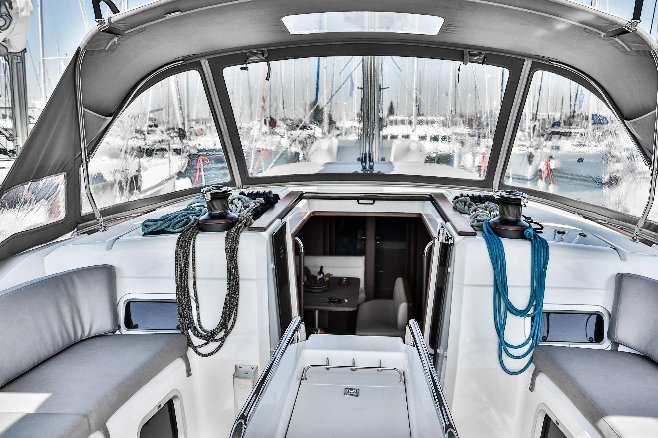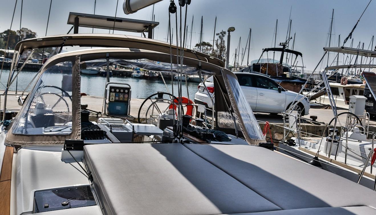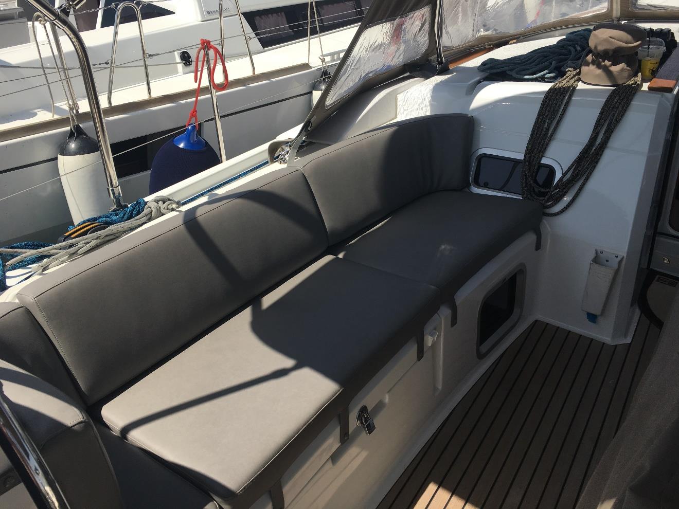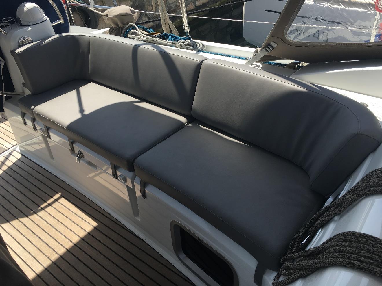 | Outside | Badeleiter, Biminitop, Cockpitdusche, Cockpitlautsprecher, Cockpitleuchte, Cockpitpolster, Cockpittisch, hydraul. Gangway, Solaranlage, Sonnendeck, Sprayhood, Teak im Cockpit, Unterwasserbeleuchtung, Windex |