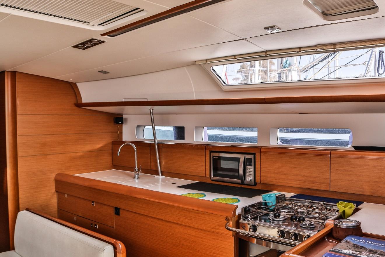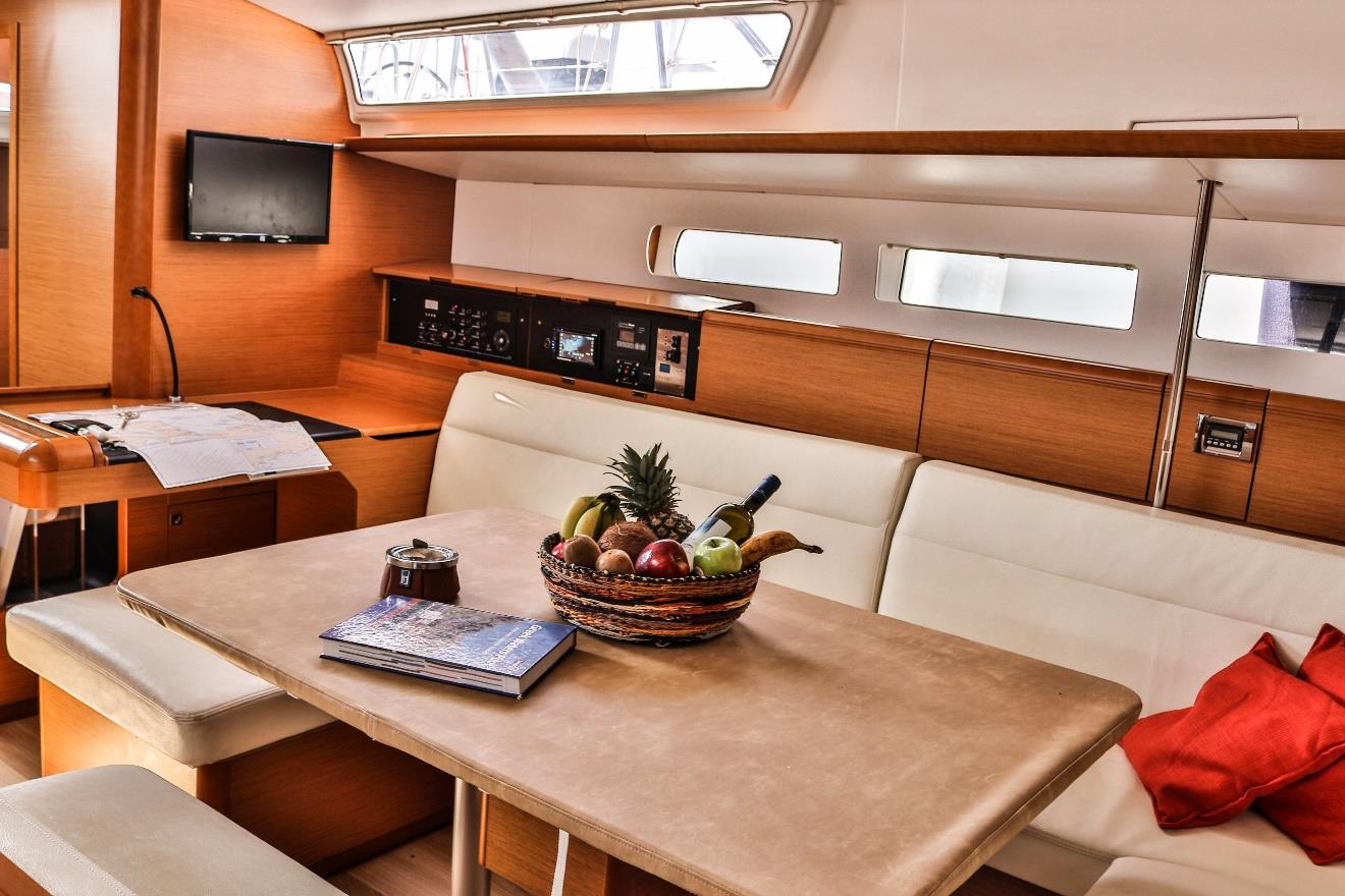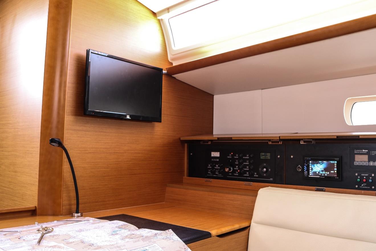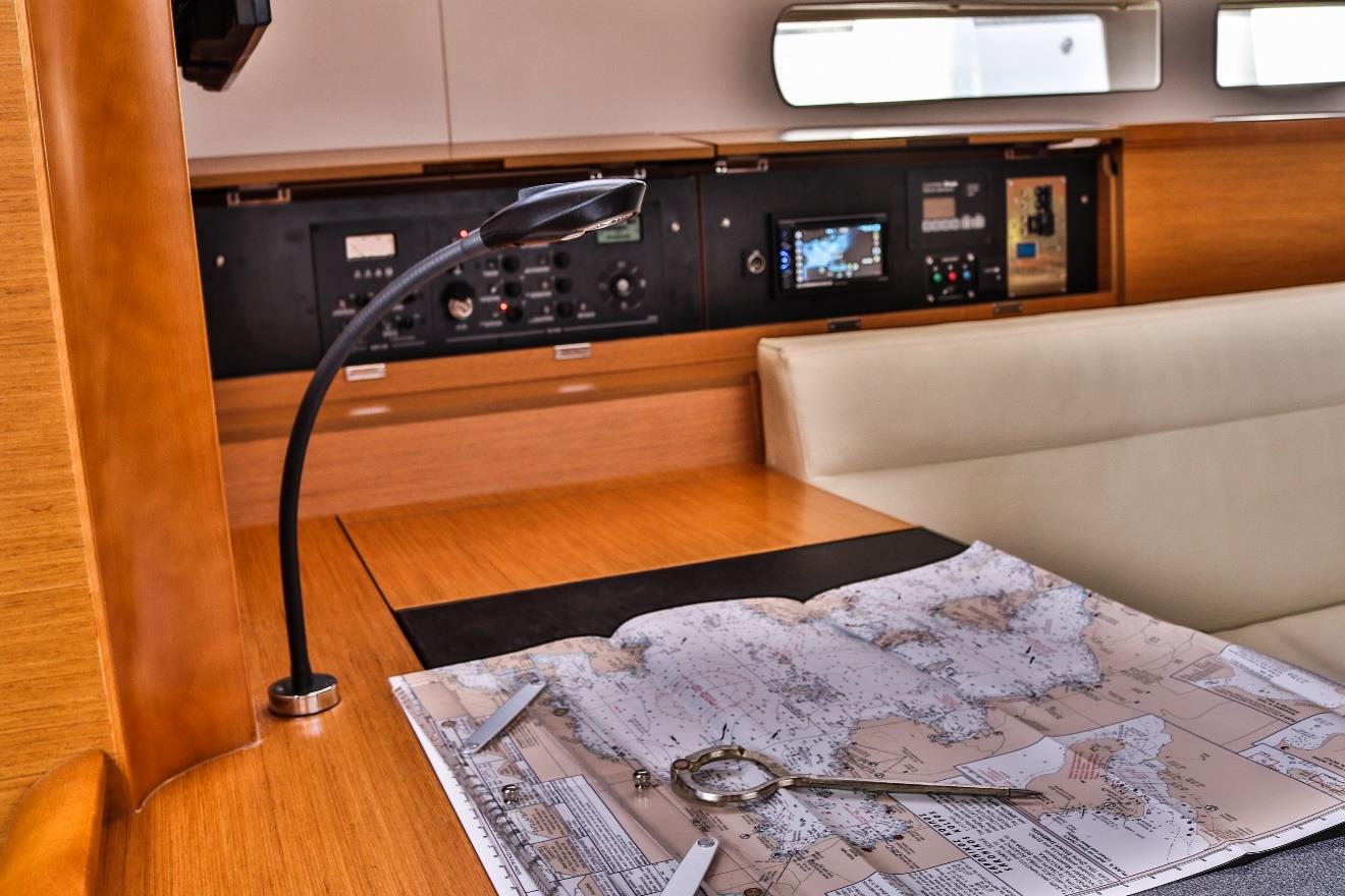 | Outside | Badeleiter, Biminitop, Cockpitdusche, Cockpitlautsprecher, Cockpitleuchte, Cockpitpolster, Cockpittisch, hydraul. Gangway, Solaranlage, Sonnendeck, Sprayhood, Teak im Cockpit, Unterwasserbeleuchtung, Windex |