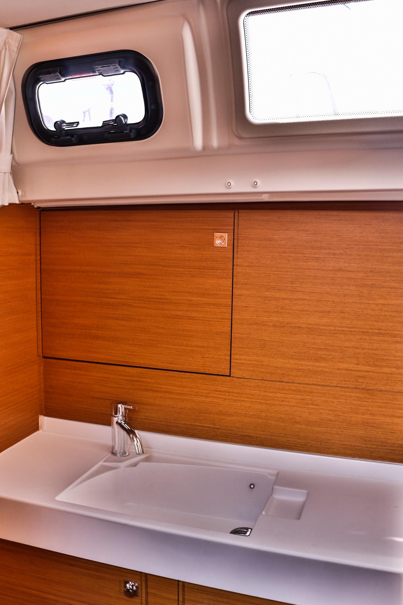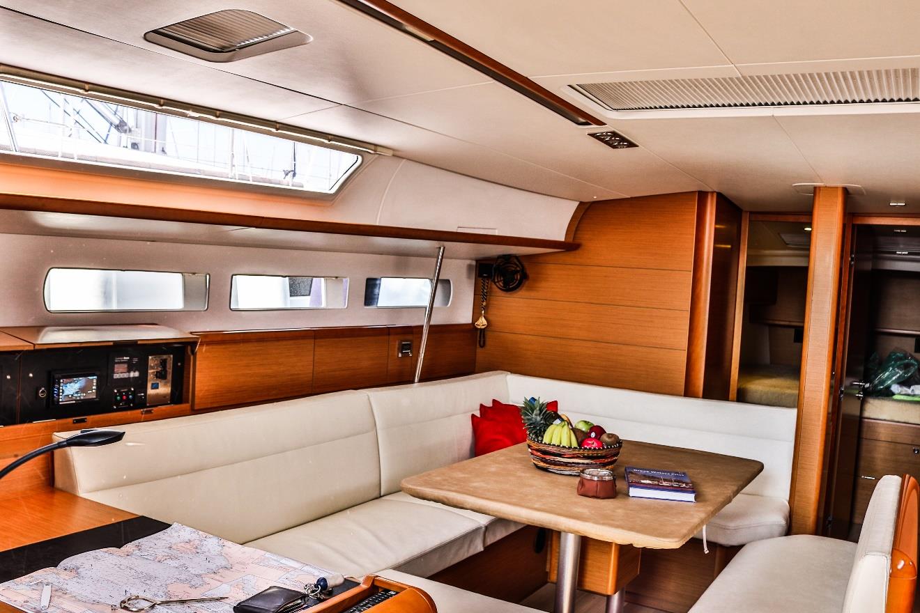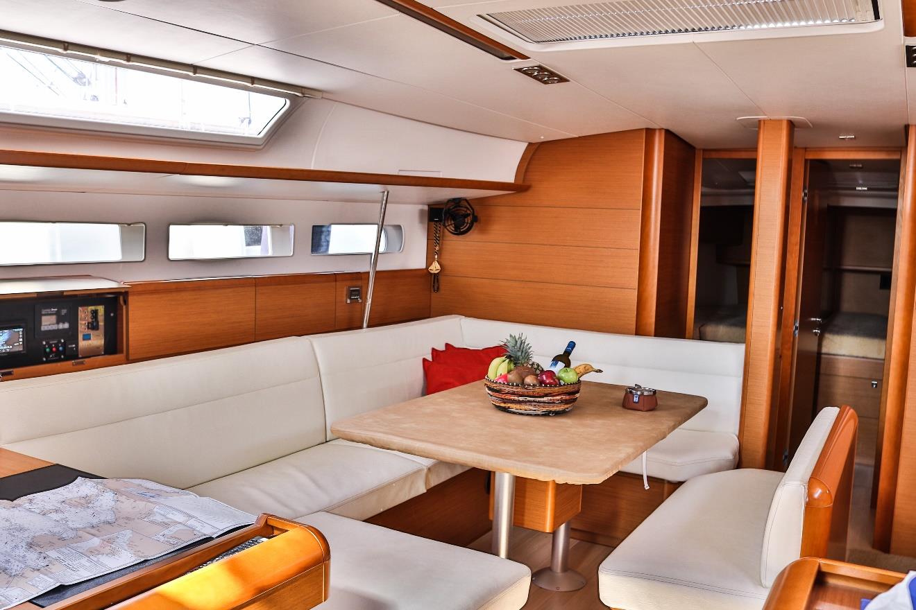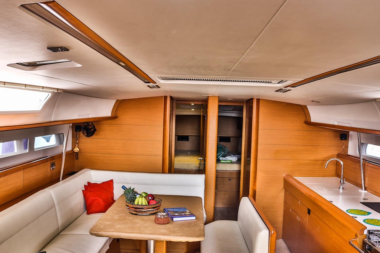 | Outside | Badeleiter, Biminitop, Cockpitdusche, Cockpitlautsprecher, Cockpitleuchte, Cockpitpolster, Cockpittisch, hydraul. Gangway, Solaranlage, Sonnendeck, Sprayhood, Teak im Cockpit, Unterwasserbeleuchtung, Windex |