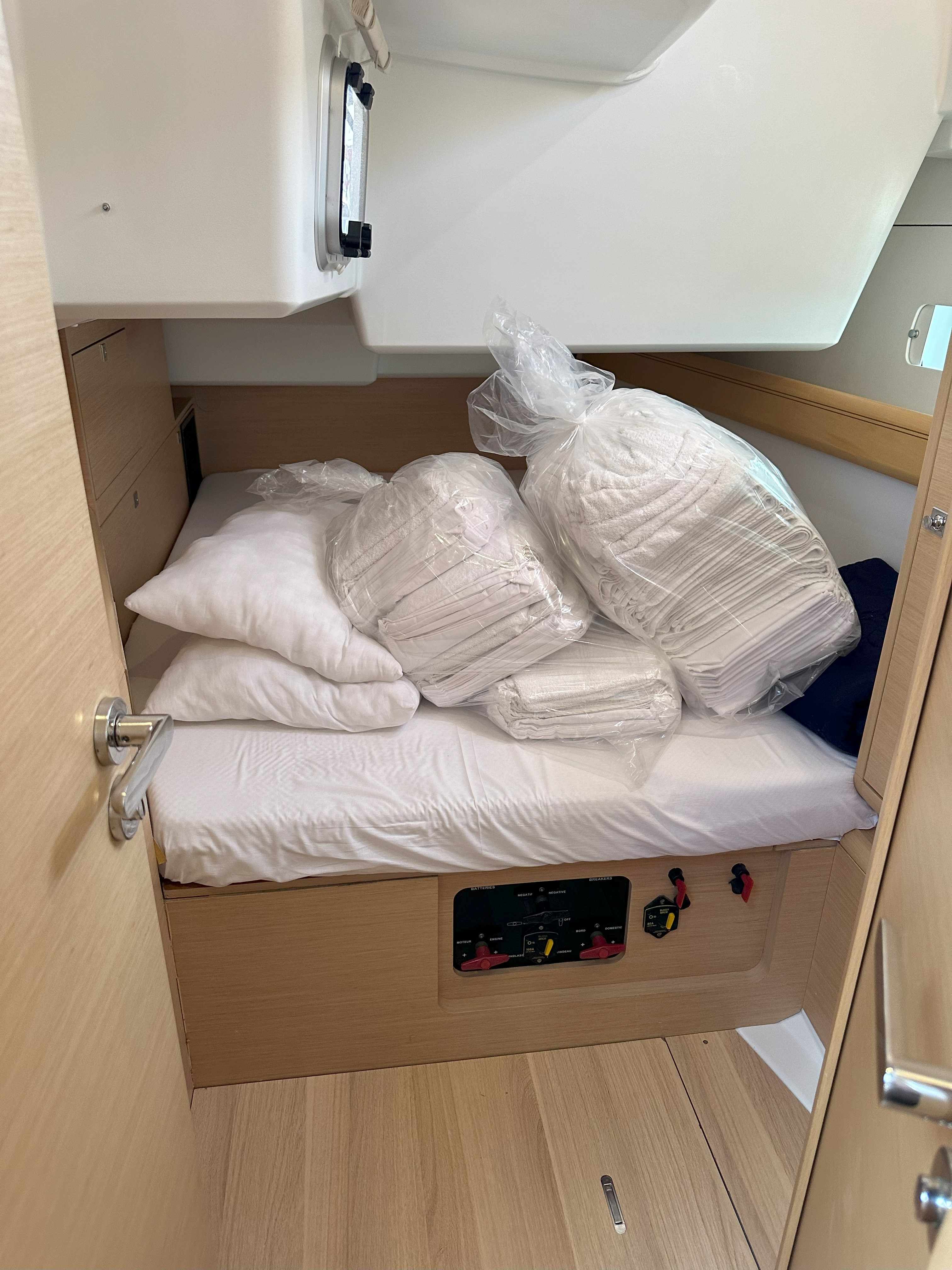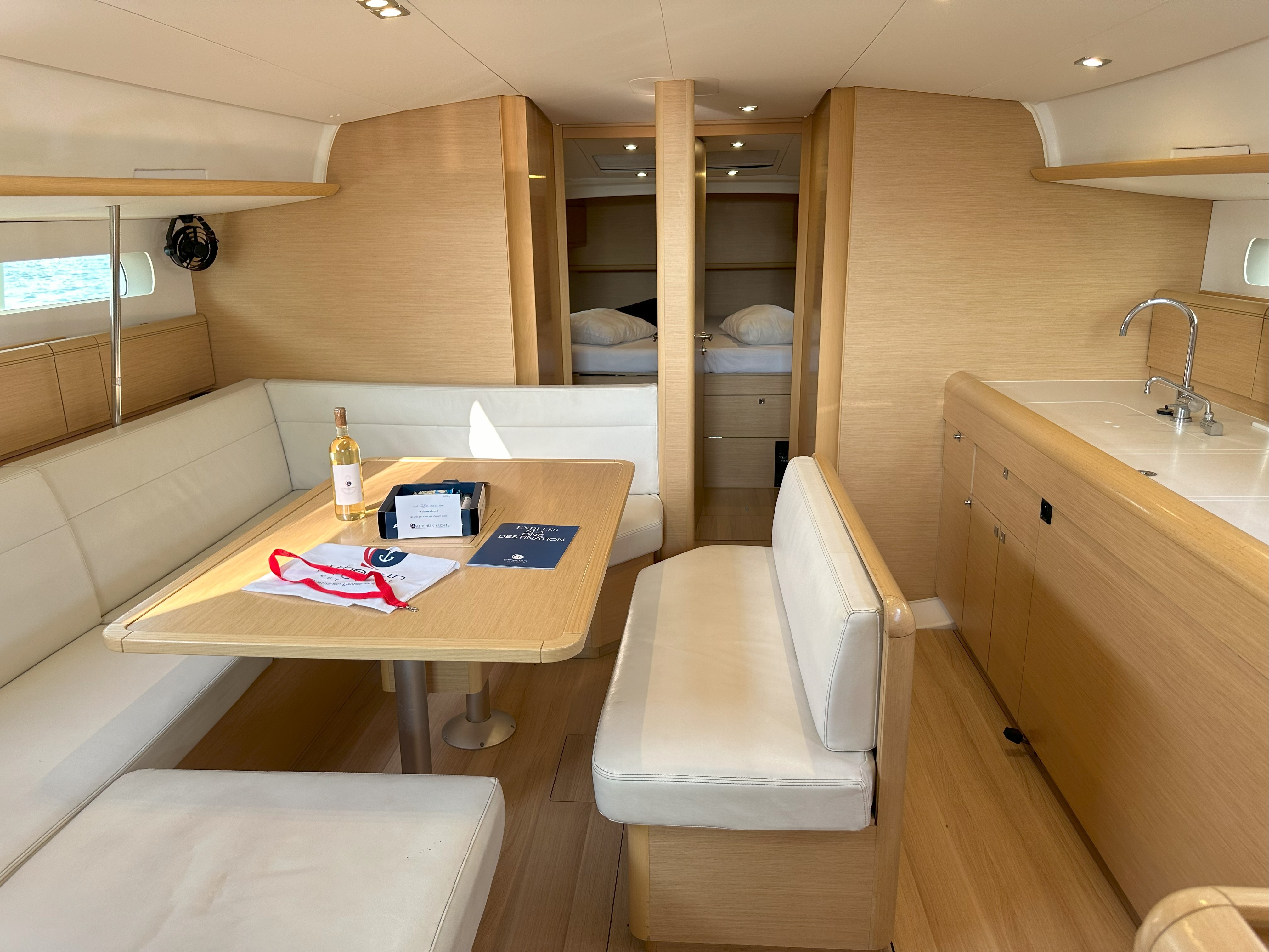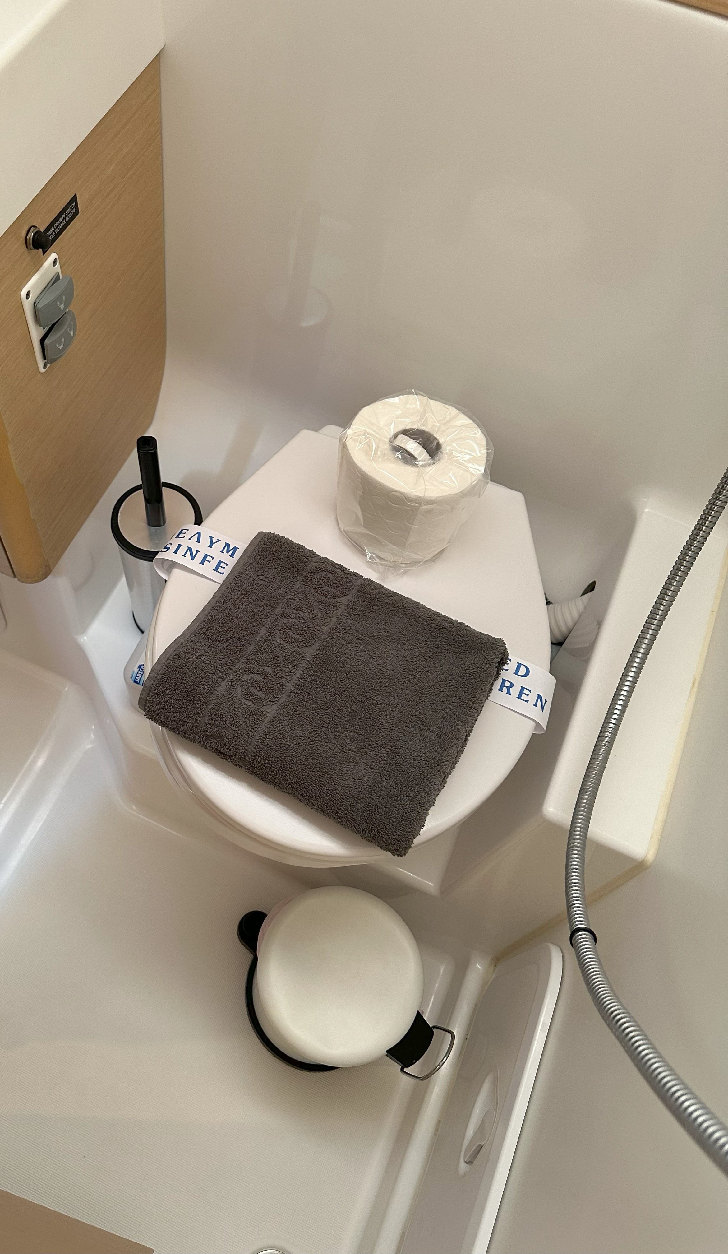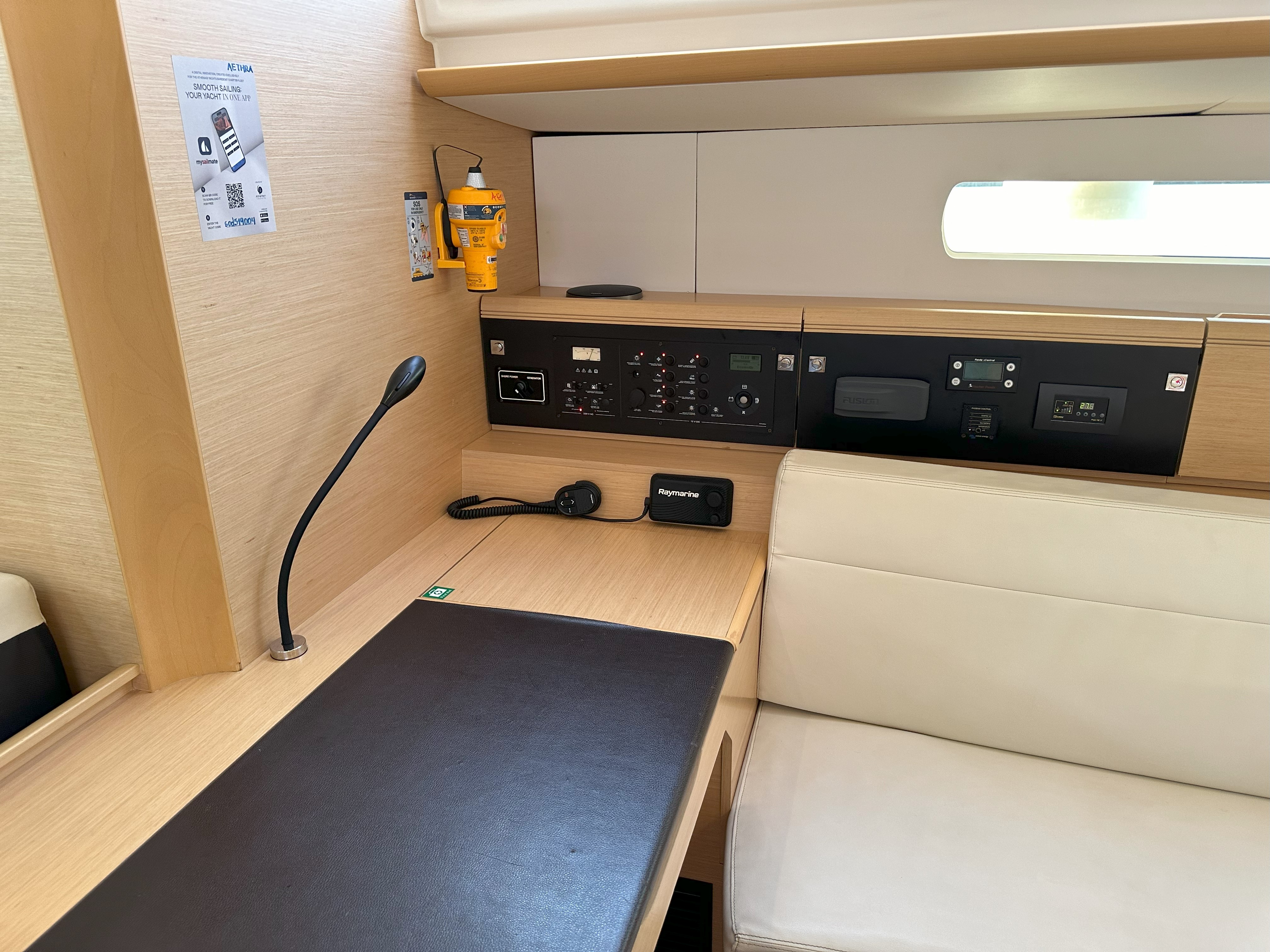 | Outside | Biminitop, Cockpitdusche, Cockpitlautsprecher, Cockpittisch, elektr. Ankerwinsch, elektr. Winsch, Solaranlage, Sprayhood |