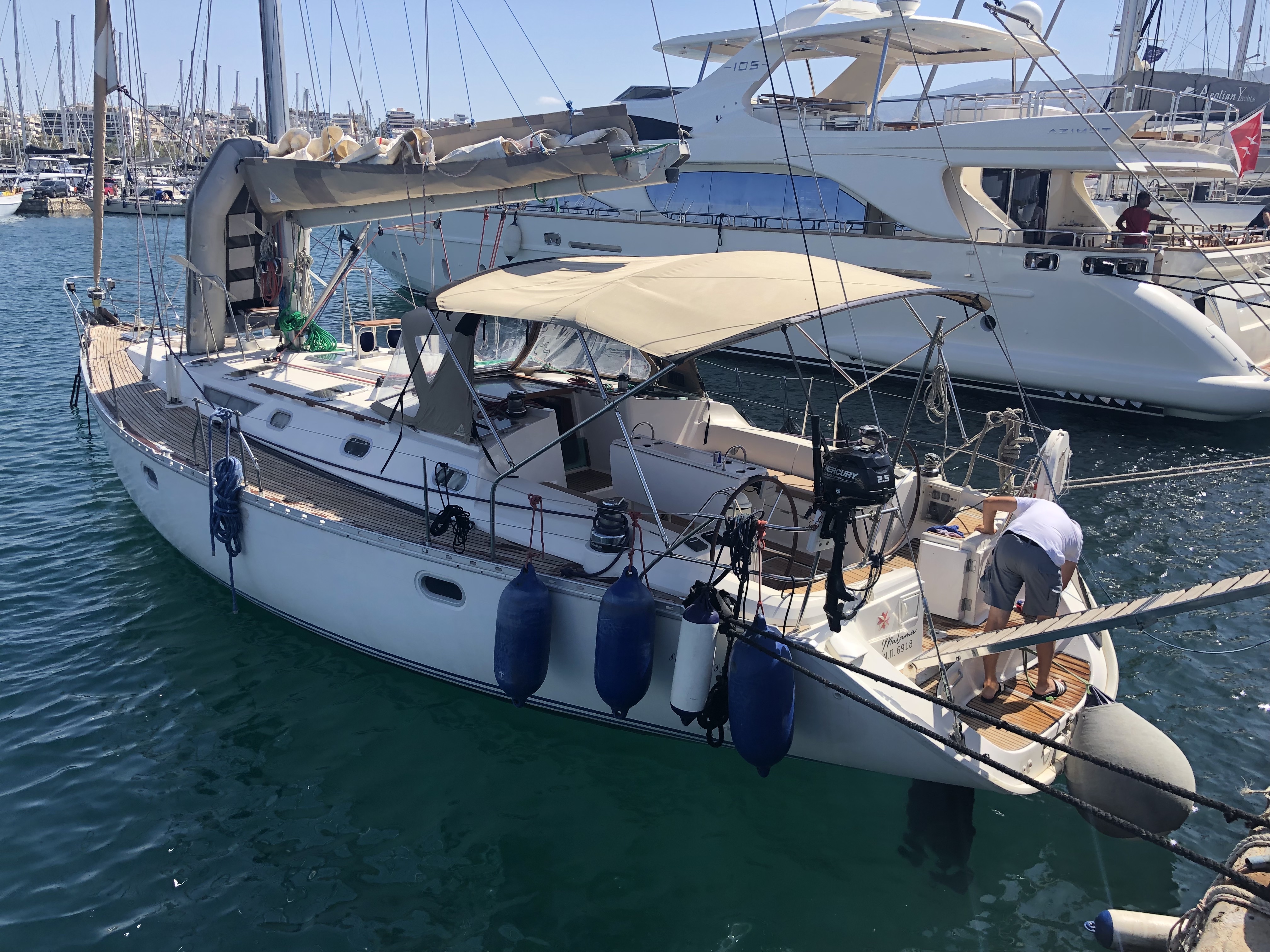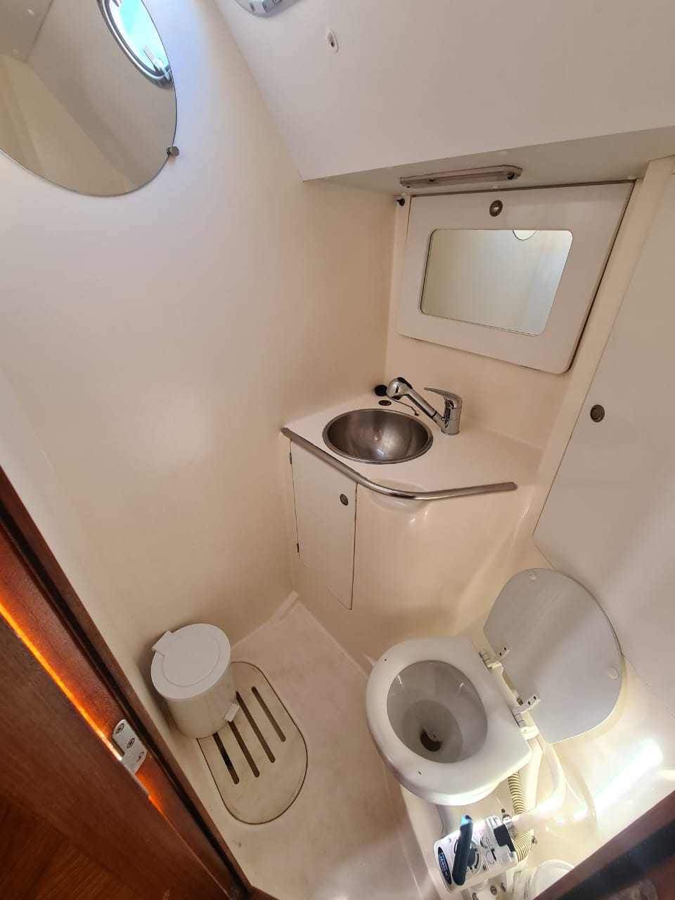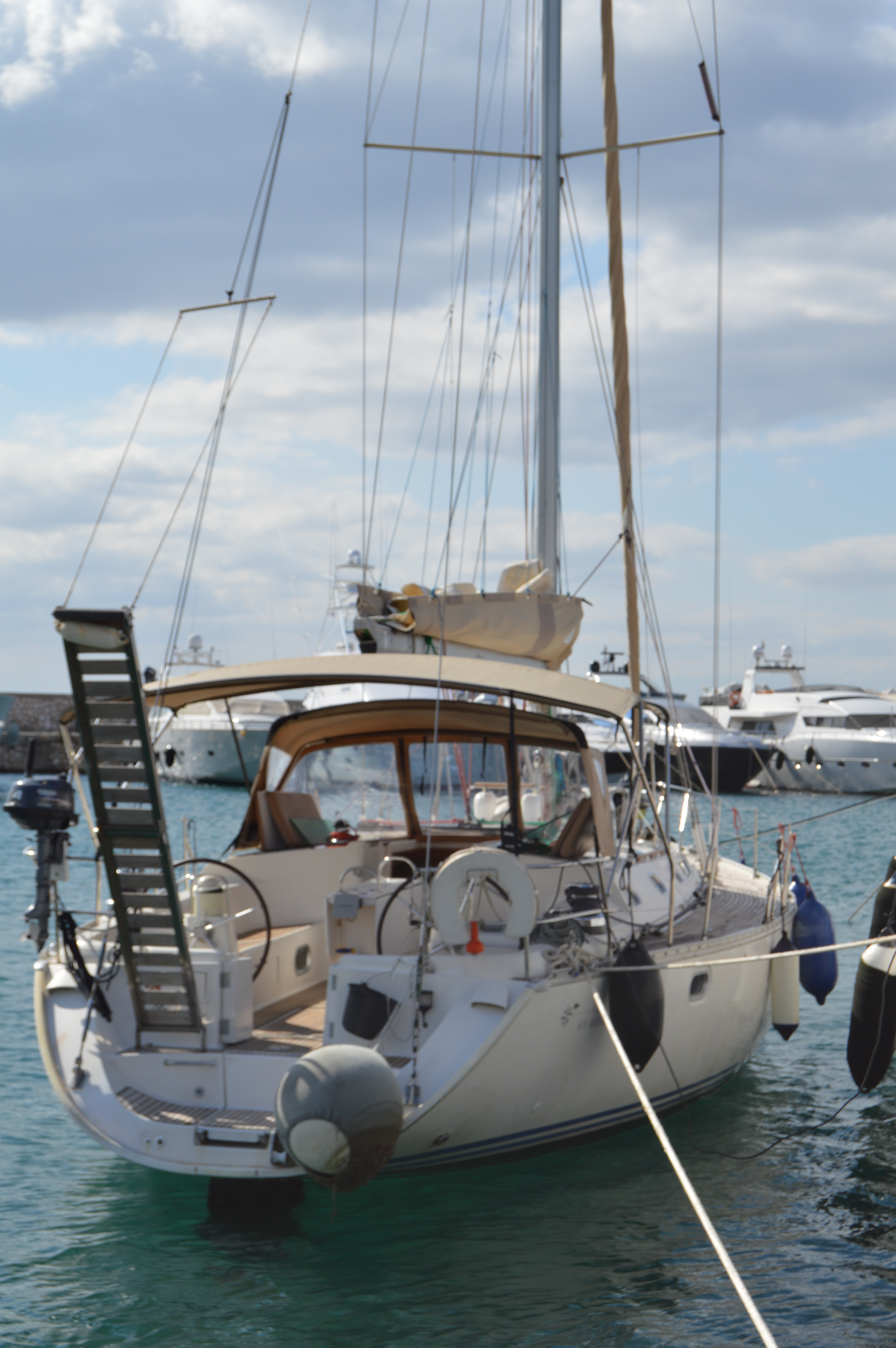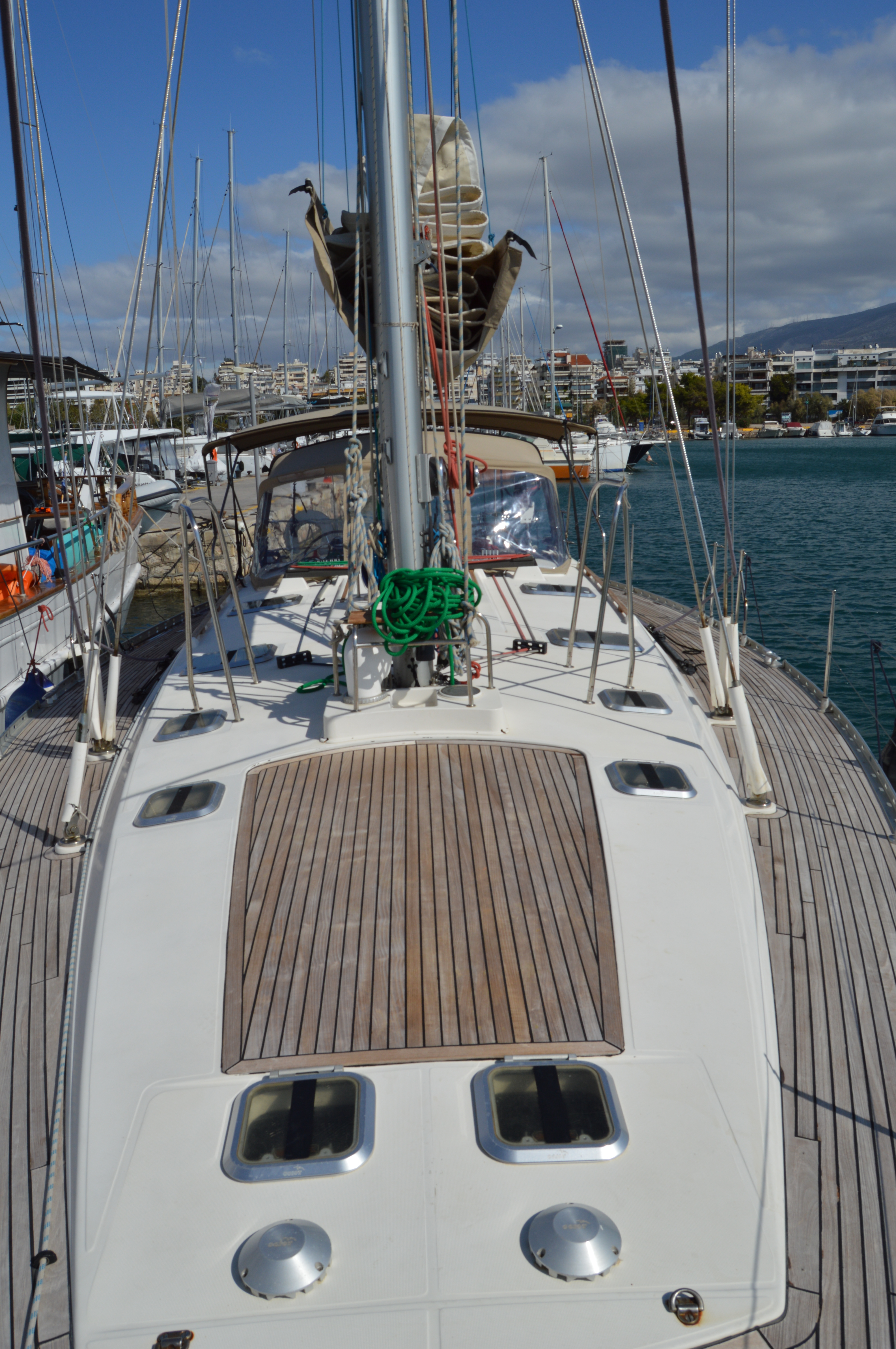 | Outside | 220 V-Landanschluss, Biminitop, Cockpitdusche, Cockpitlautsprecher, Cockpittisch, elektr. Ankerwinsch, Sprayhood, Teakdeck |