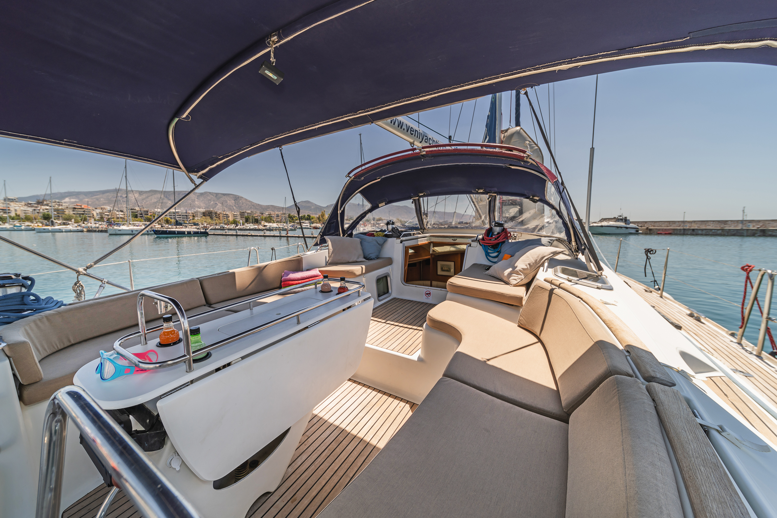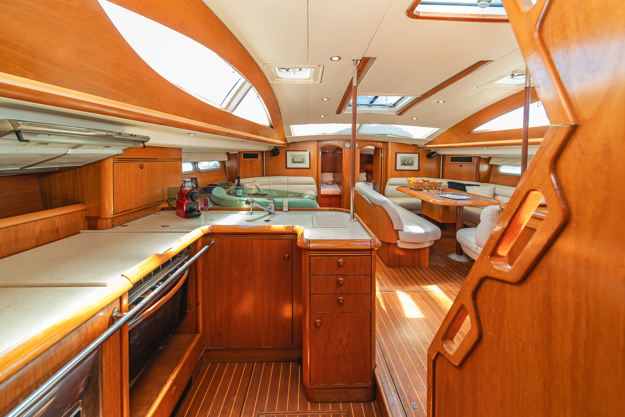 | Safety | Autopilot, Bilgepumpe, Bootsmannstuhl, Bordapotheke, Bordwerkzeug, Bugstrahlruder, Feststoffschwimmwesten, Feuerlöscher, Handbilgepumpe, Lifebelts, Navigationslichter, Nebelhorn, Notpinne, Notsignale, Radarreflektor, Rettungsinsel, Rettungskragen, Sicherheitsausrüstung, Taschenlampe, UKW-Funk, Zweitanker |