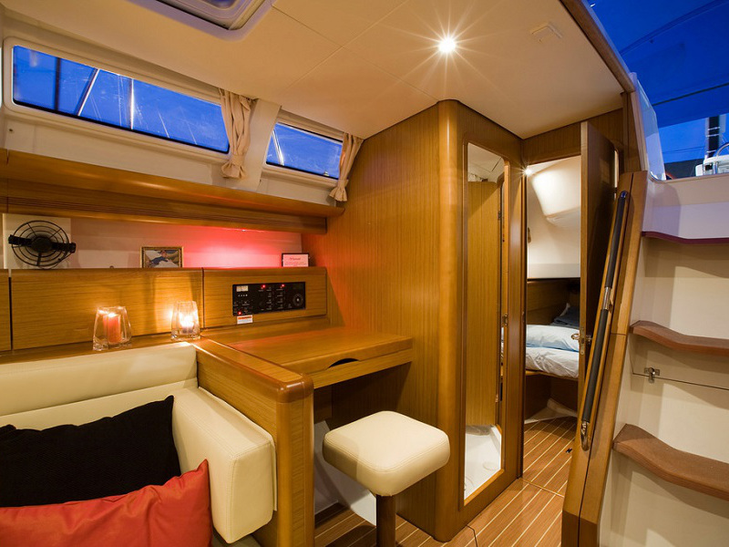 | Safety | Autopilot, Bordapotheke, Bugstrahlruder, elektr. Bilgepumpe, Feststoffschwimmwesten, Navigationslichter, Notsignale, Sicherheitsausrüstung, Sicherheitsgurt, UKW-Funk, Zweitanker |