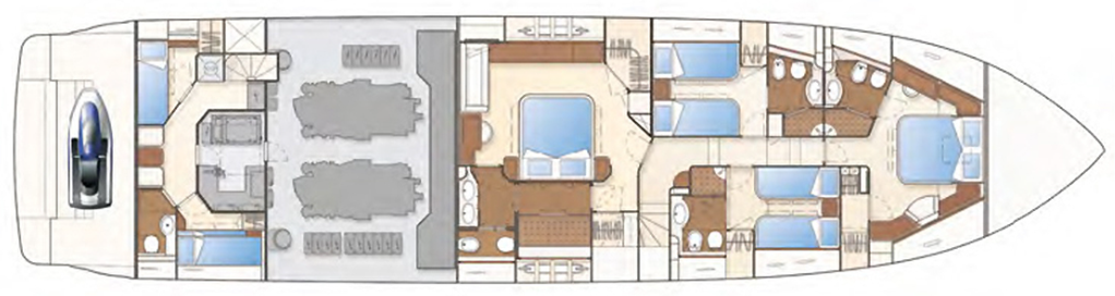 | Inside | Gefrierschrank, Generator, Geschirrspüler, Jacuzzi, Klimaanlage (ohne Landstrombedarf), Kühlschrank, Trockner, TV, Waschmaschine, Watermaker |