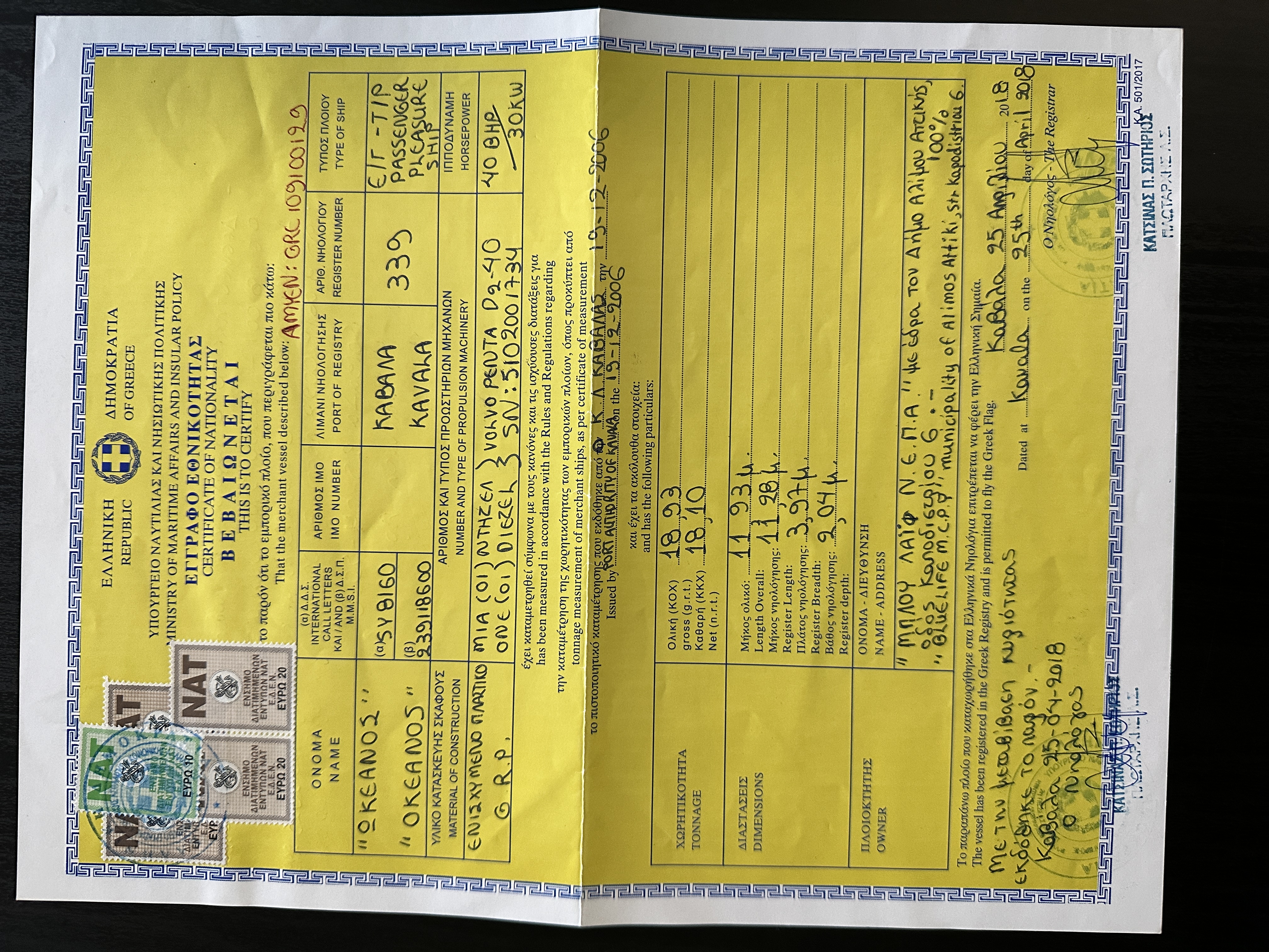 | Navigation | Echolot, GPS mit Kartenplotter im Cockpit, Kompass, Seekarten, Sumlog |