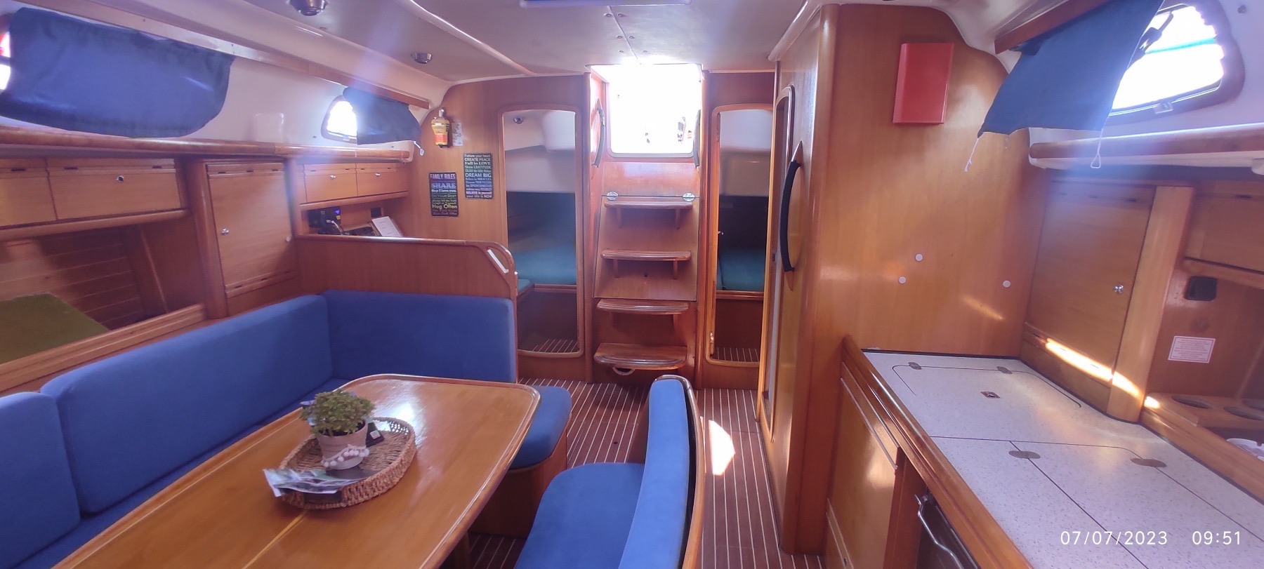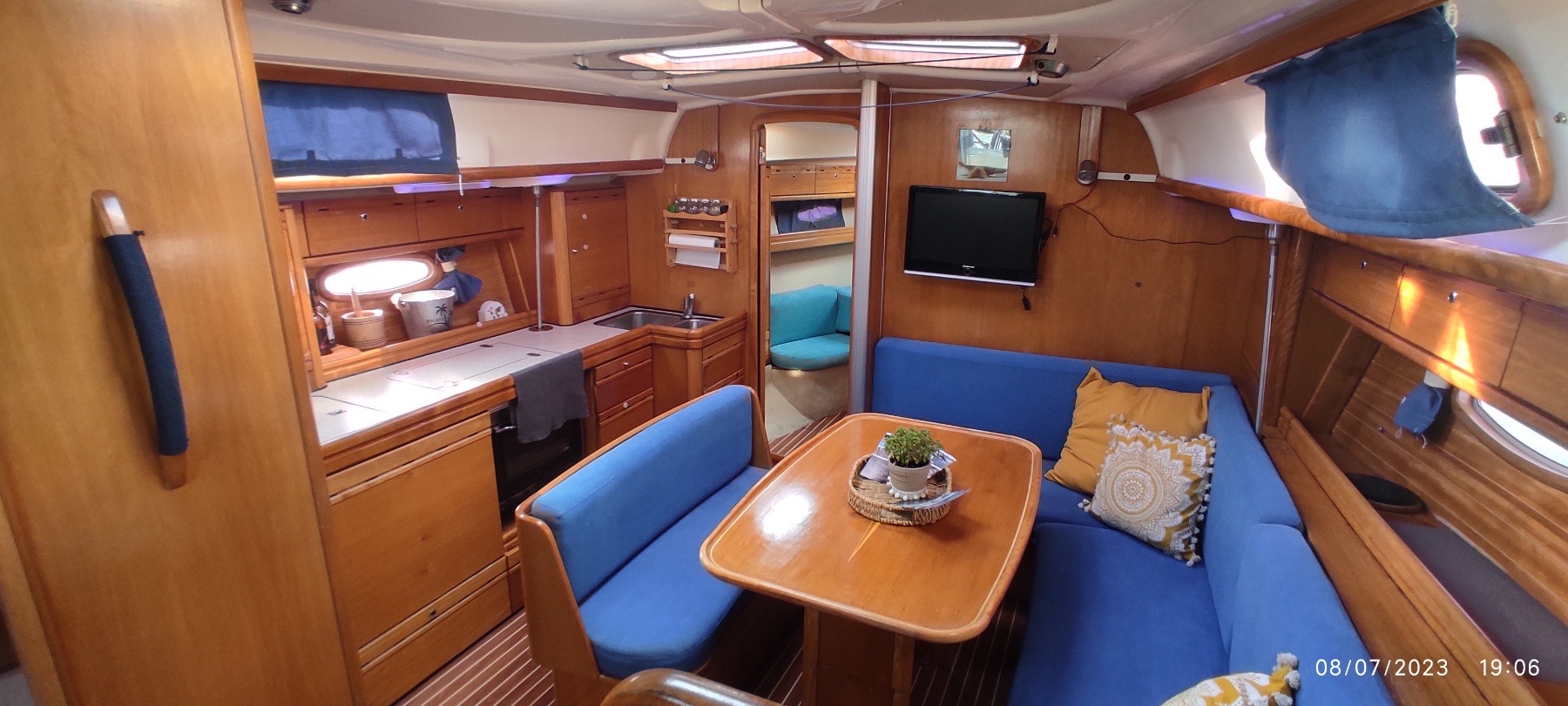 | Outside | 220 V-Landanschluss, Anker mit Kette, Biminitop, Cockpitdusche, Cockpitlautsprecher, Cockpitpolster, elektr. Ankerwinsch, Schnorchelausrüstung, Solaranlage, Sprayhood |