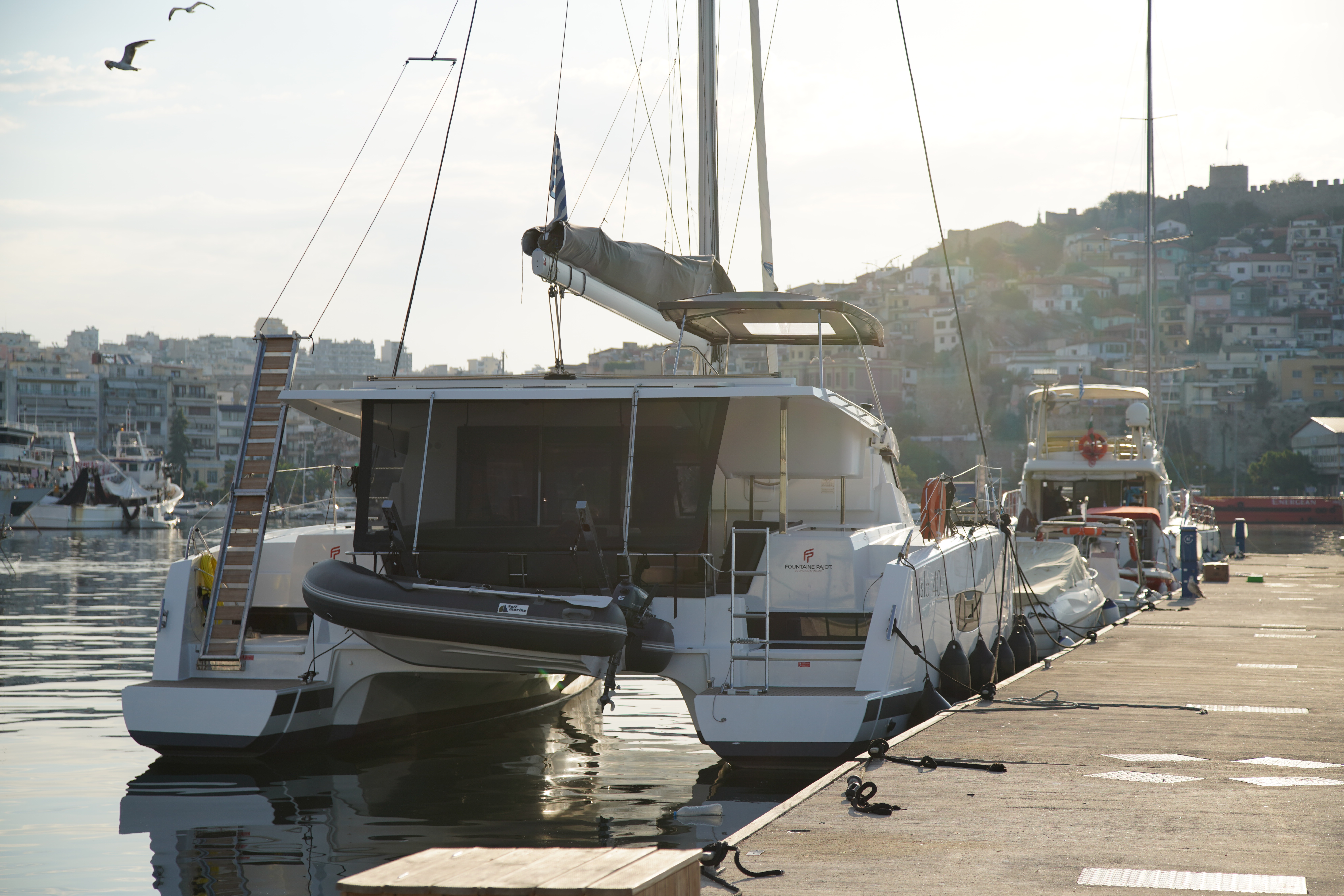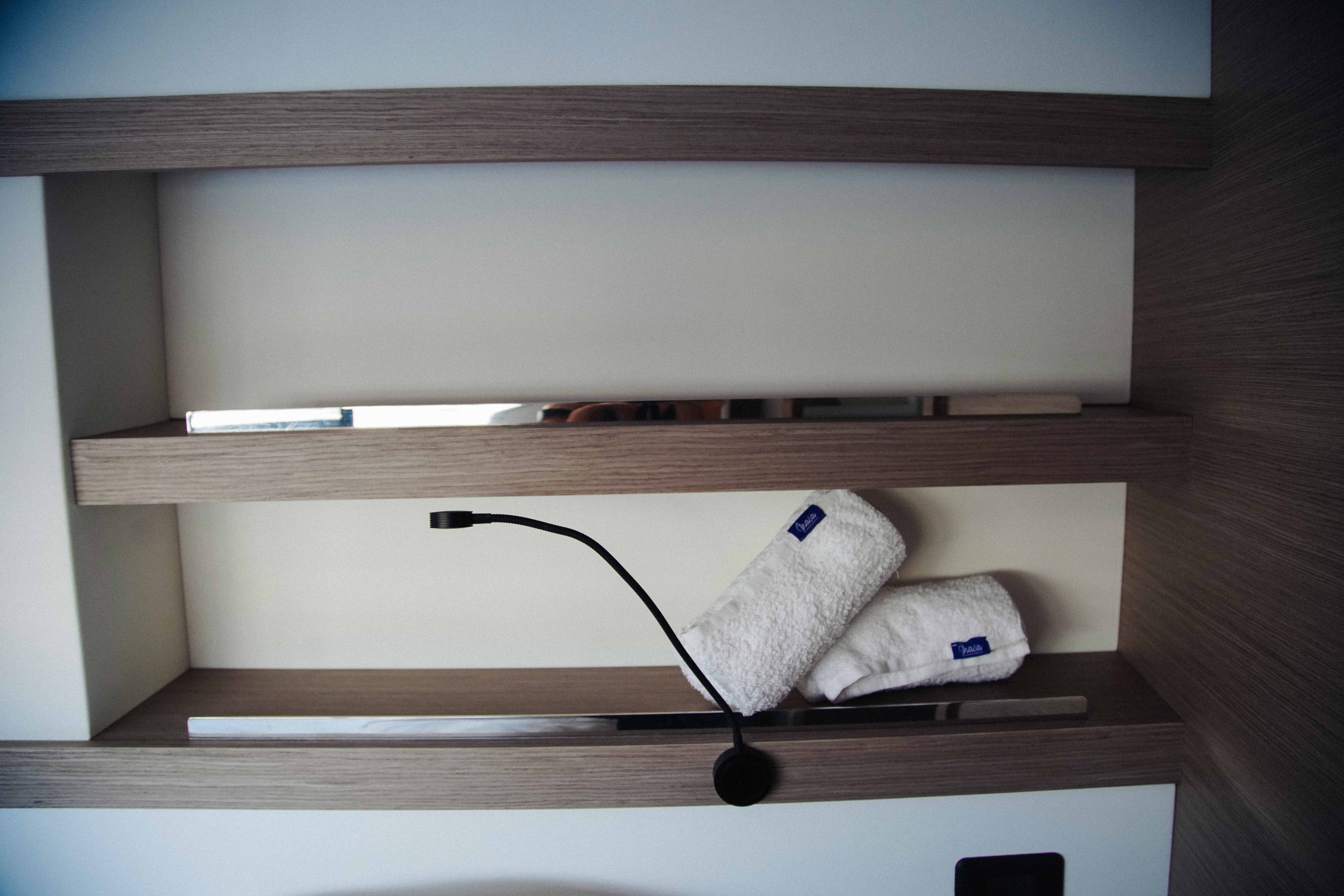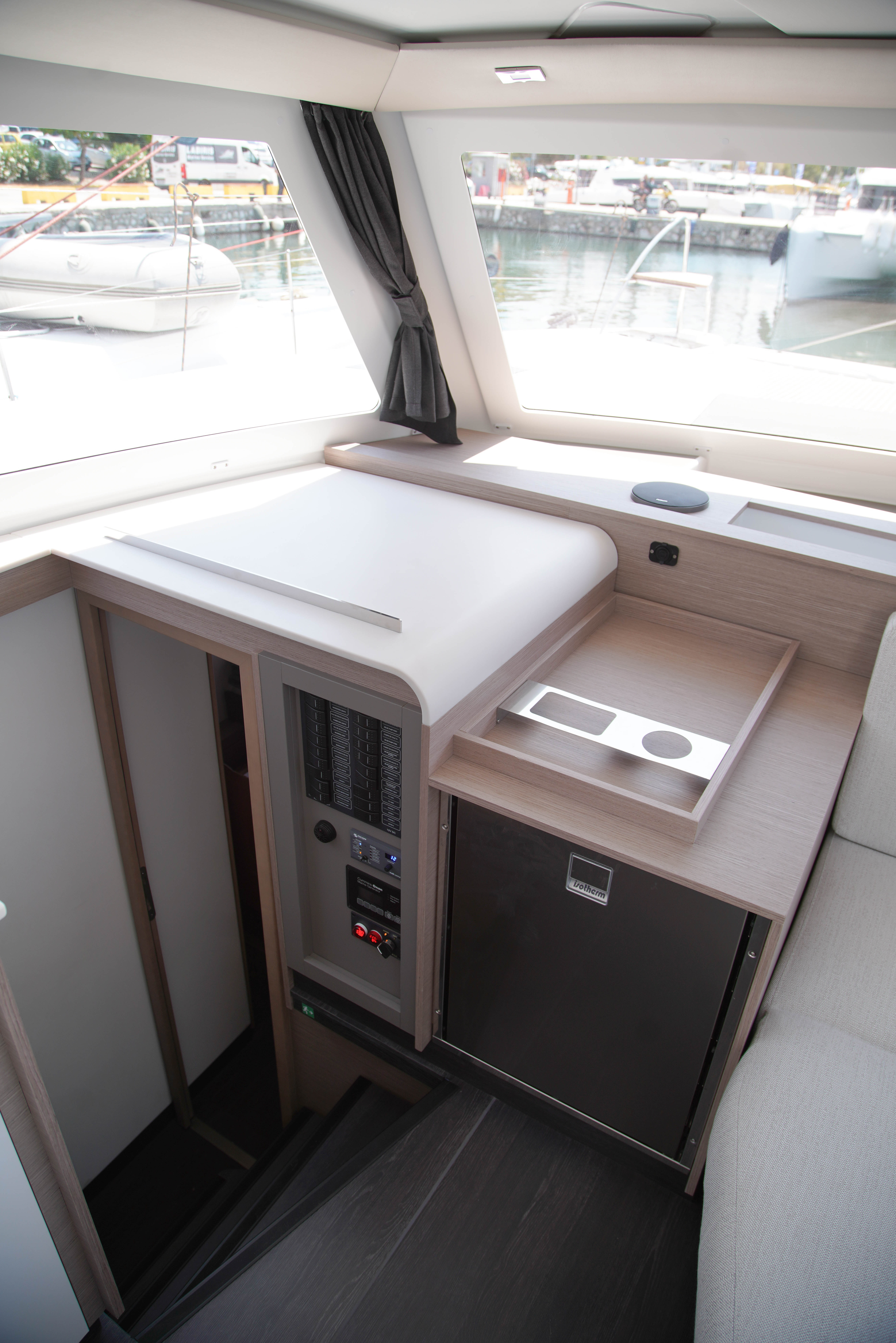 | Inside | Backofen, Druckwasser, FUSION Sound System, Generator, Inverter 12V/220V, Klimaanlage (ohne Landstrombedarf), Kühlschrank, Landstromkabel, Pantryausstattung, Salontisch absenkbar, Trichter, Ventilator, Warmwasser, Watermaker, WC (elektr.) |