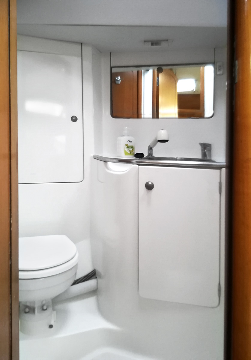 | Outside | 220 V-Landanschluss, Anker mit Kette, Biminitop, Cockpitdusche, Cockpitlautsprecher, elektr. Ankerwinsch, Schnorchelausrüstung, Solaranlage, Sprayhood |