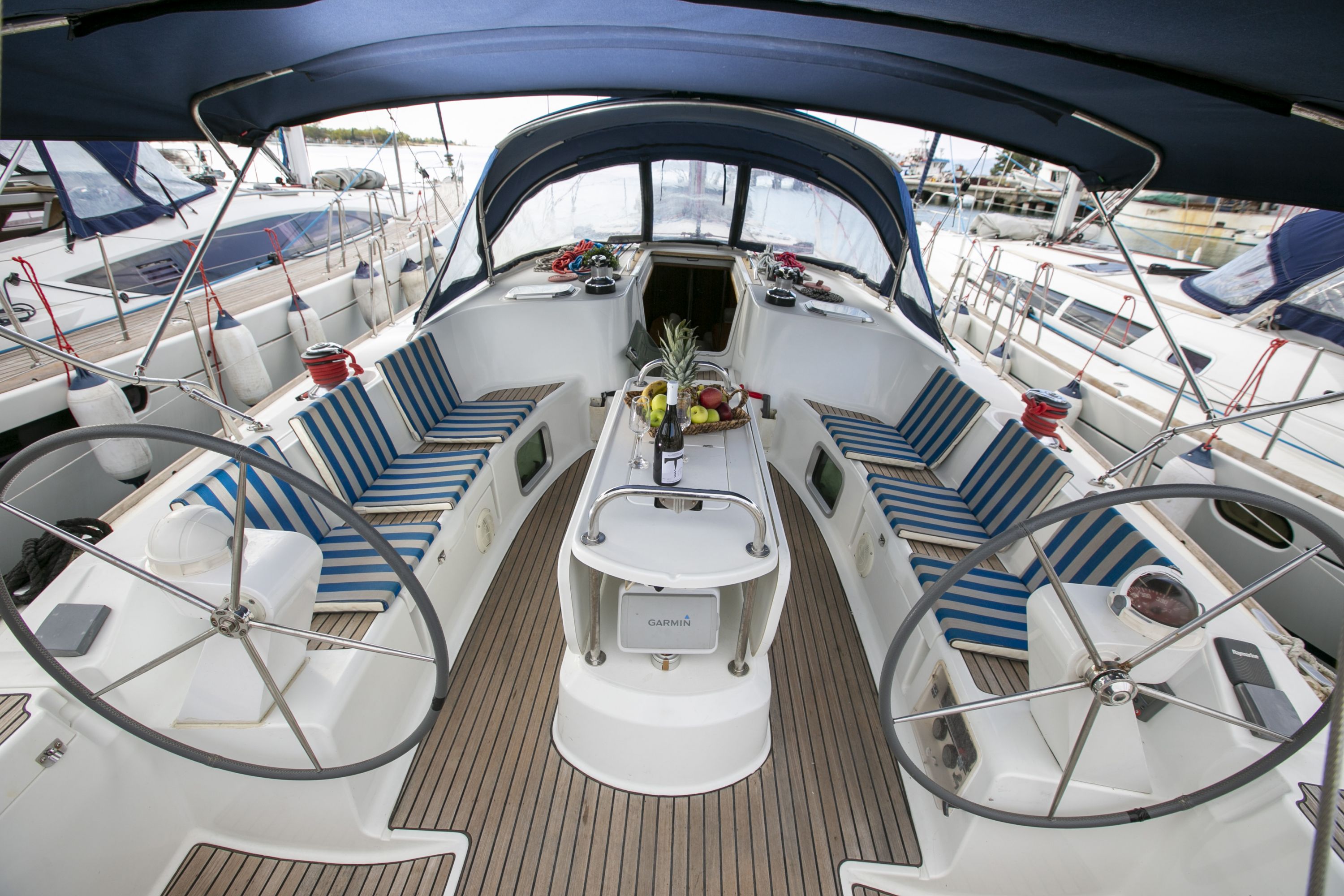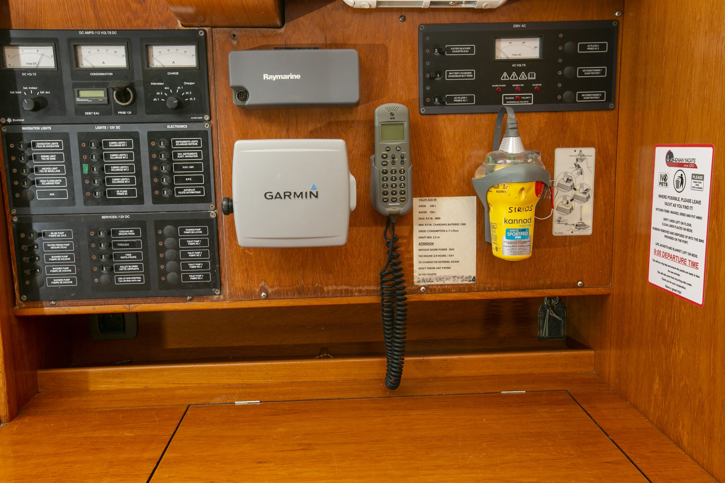 | Navigation | Echolot, GPS im Cockpit, GPS mit Kartenplotter im Salon, Hafenhandbücher, Handpeilkompass, Kompass, Navigationsbesteck, Sumlog, Windmesser |