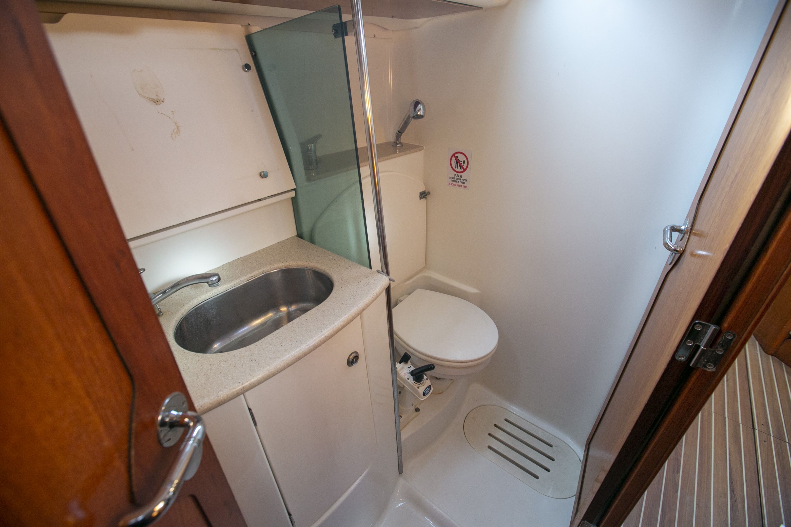 | Outside | 220 V-Landanschluss, Badeleiter, Biminitop, Cockpitdusche, Cockpitlautsprecher, Cockpitpolster, elektr. Ankerwinsch, Gangway, Sprayhood, Teak im Cockpit, Wantenschneider |