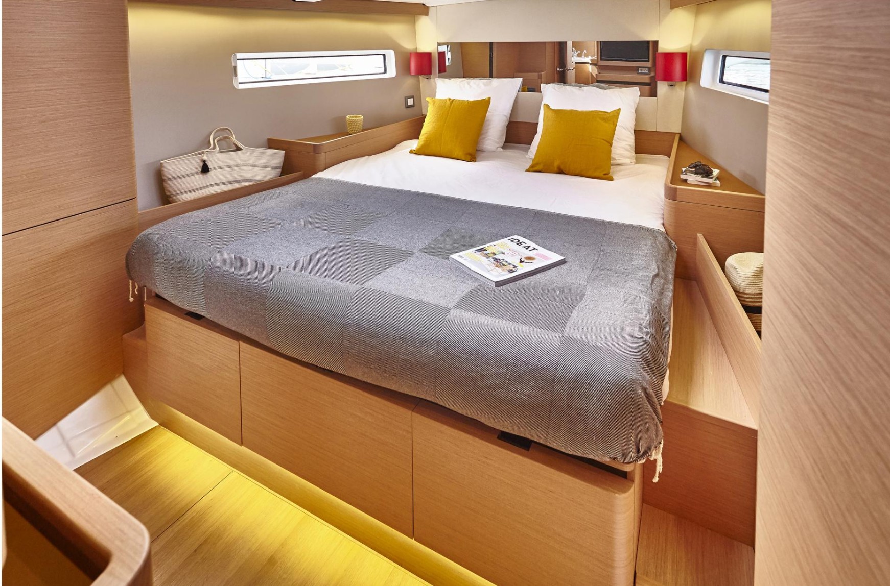 | Safety | Bootsmannstuhl, Bordapotheke, Bordwerkzeug, Bugstrahlruder, Epirb, Feststoffschwimmwesten, Feuerlöscher, Leuchtboje, Lifebelts, Nebelhorn, Notpinne, Notsignale, Rettungsinsel, UKW-Funk, Zweitanker |