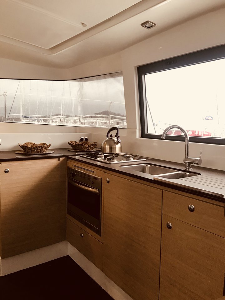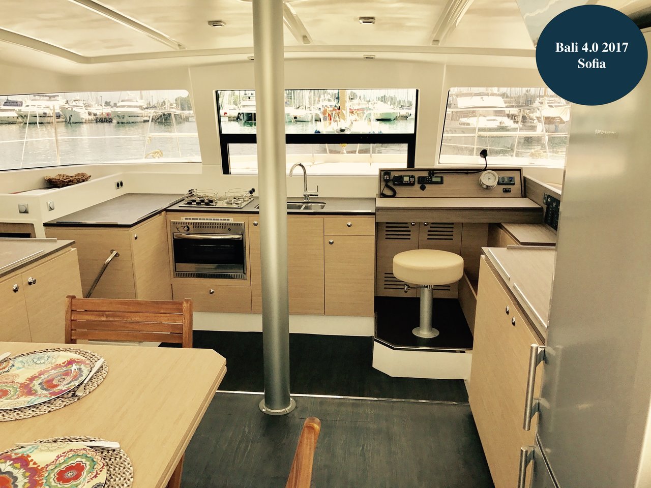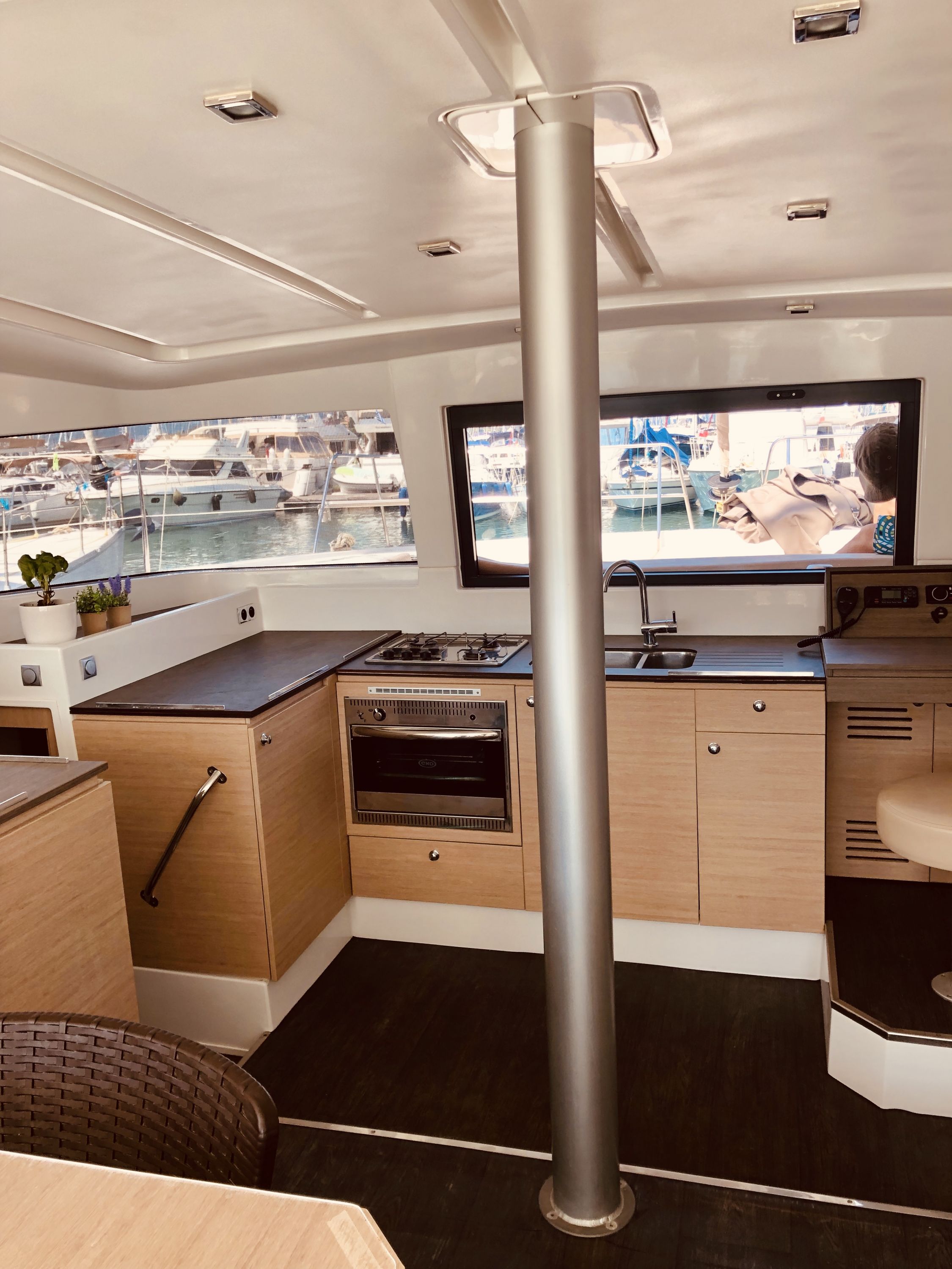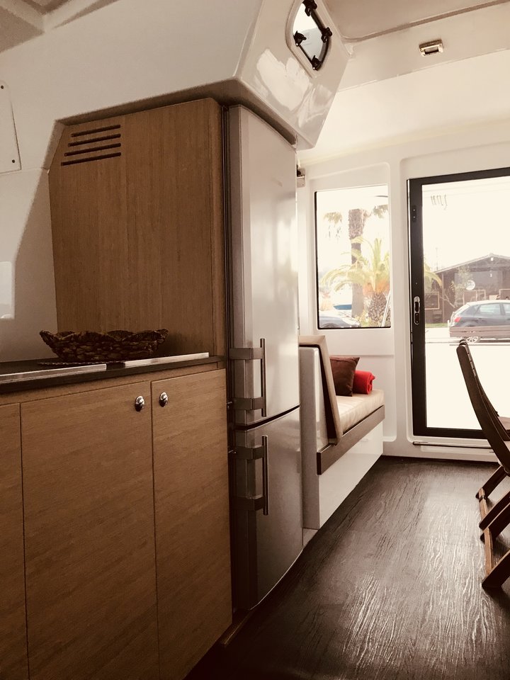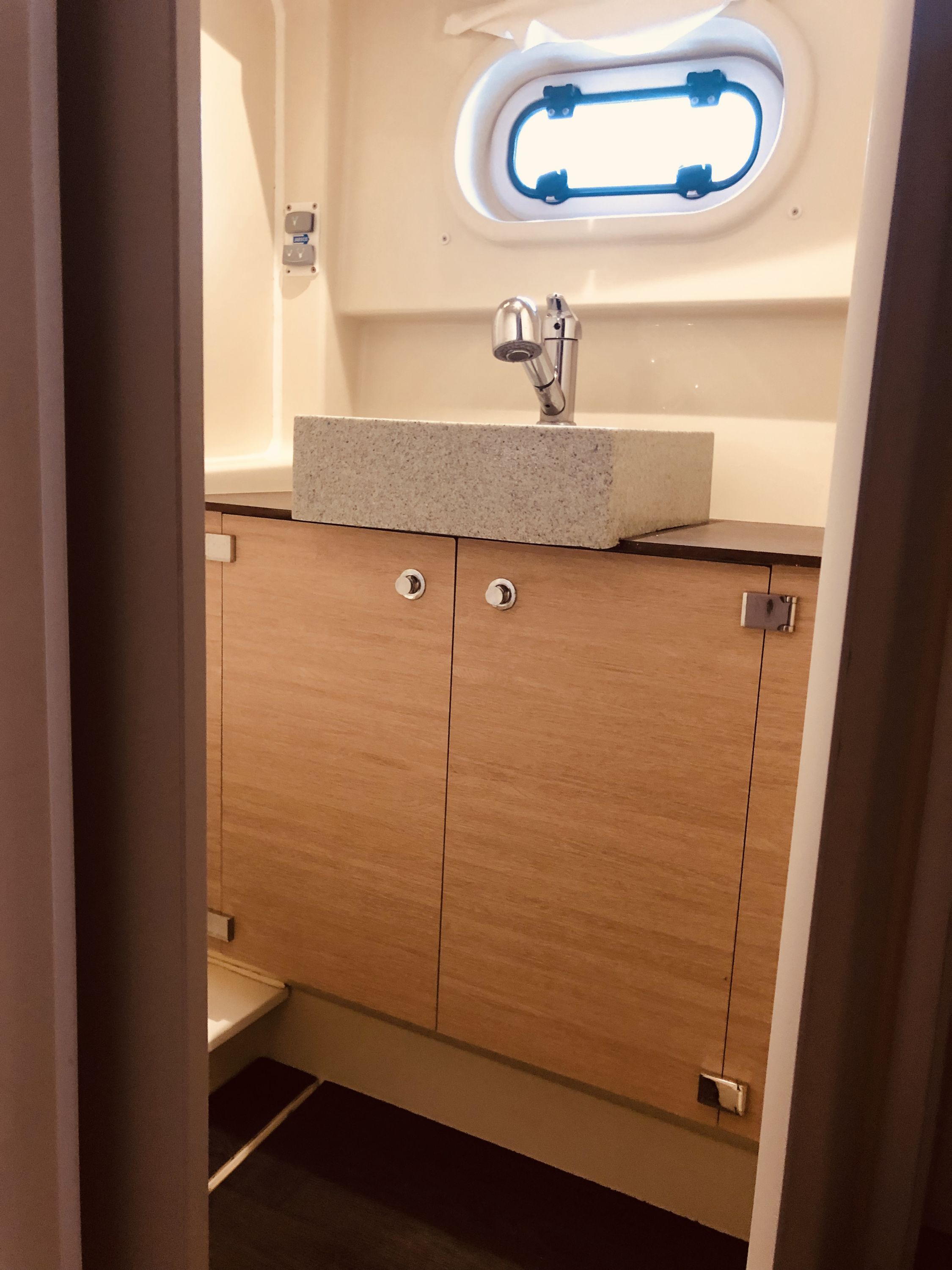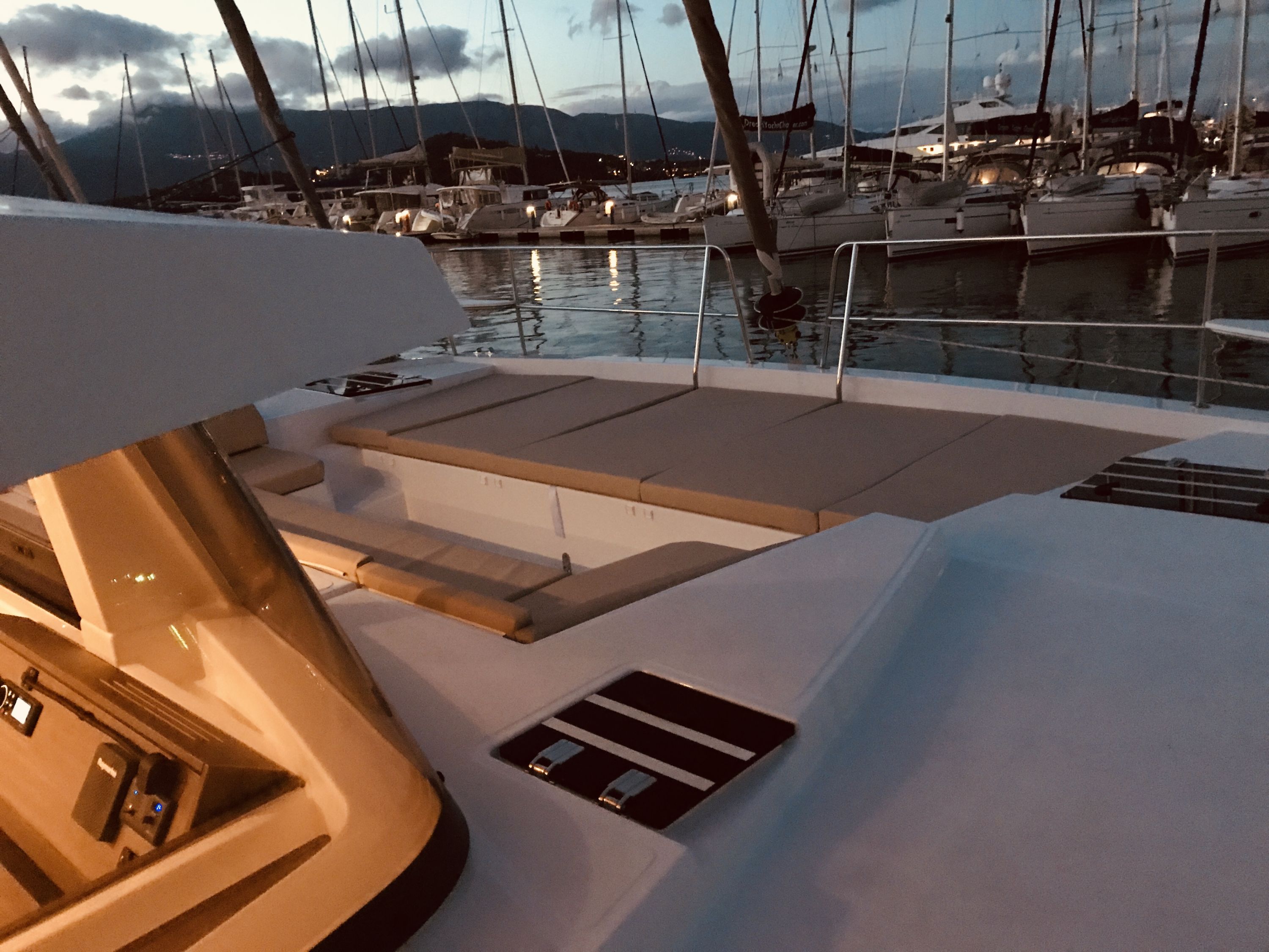 | Outside | 12 V-Anschluss, 220 V-Landanschluss, Abnehmbarer Cockpittisch, Anker mit Kette, Biminitop, Cockpitdusche, Cockpitpolster, Davits, Deckpolster, elektr. Ankerwinsch, Fender, Festmacherleinen, Sonnensegel |