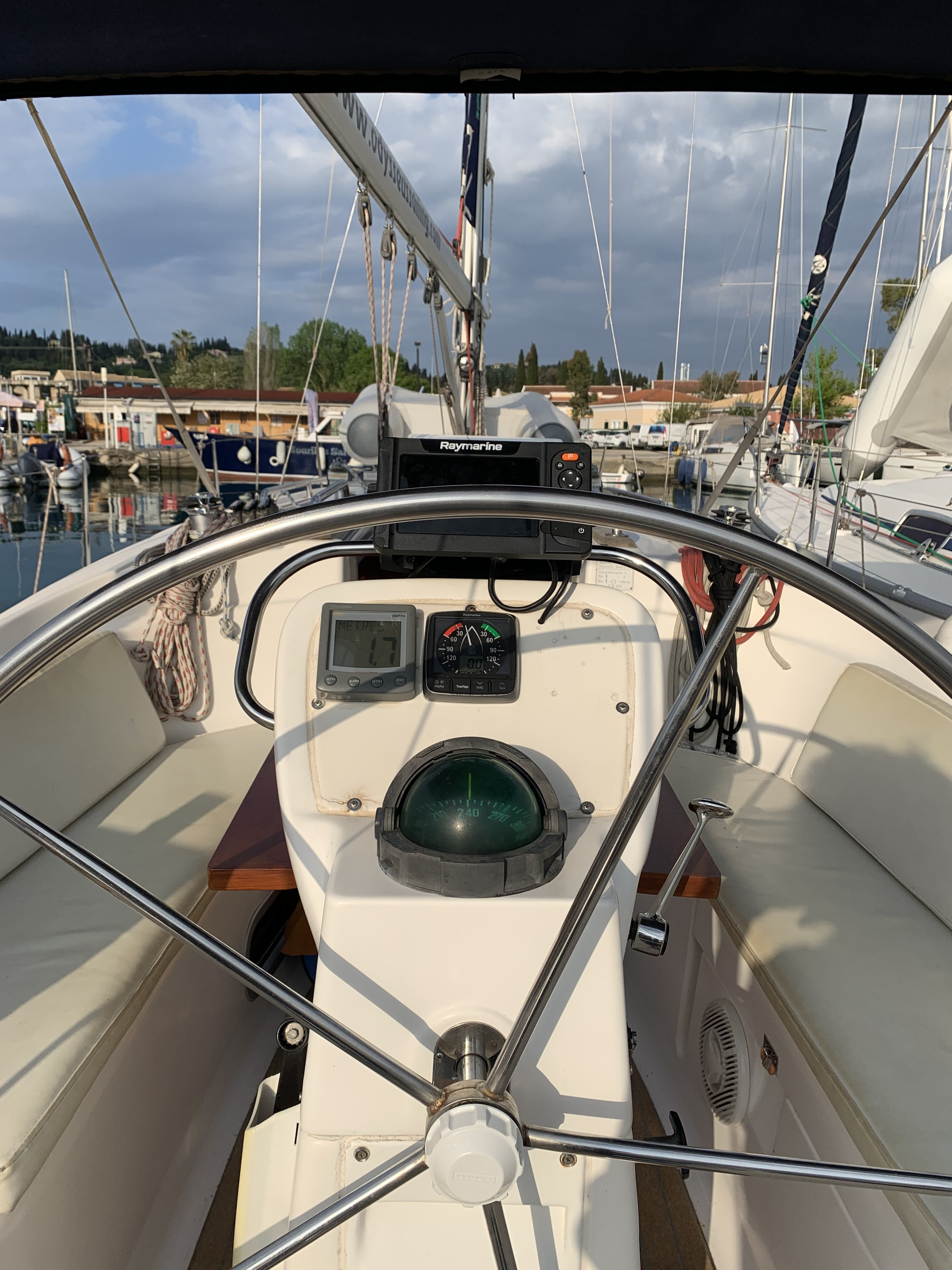 | Navigation | Echolot, Fernglas, GPS mit Kartenplotter im Cockpit, Hafenhandbücher, Handpeilkompass, Navigationsbesteck, Seekarten, Sumlog |