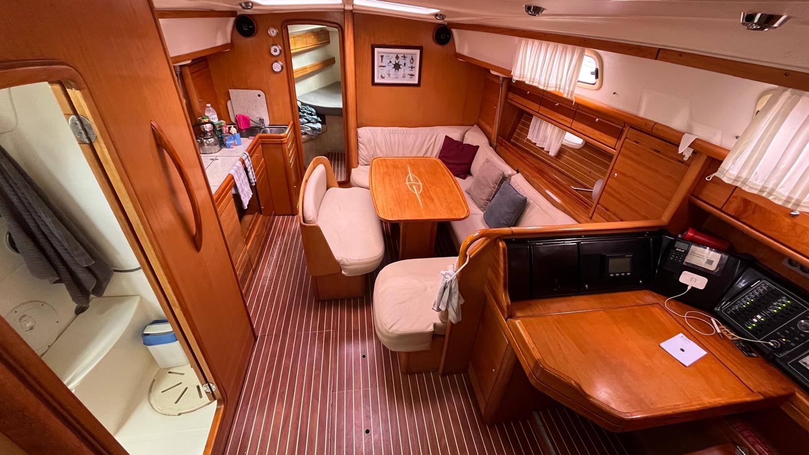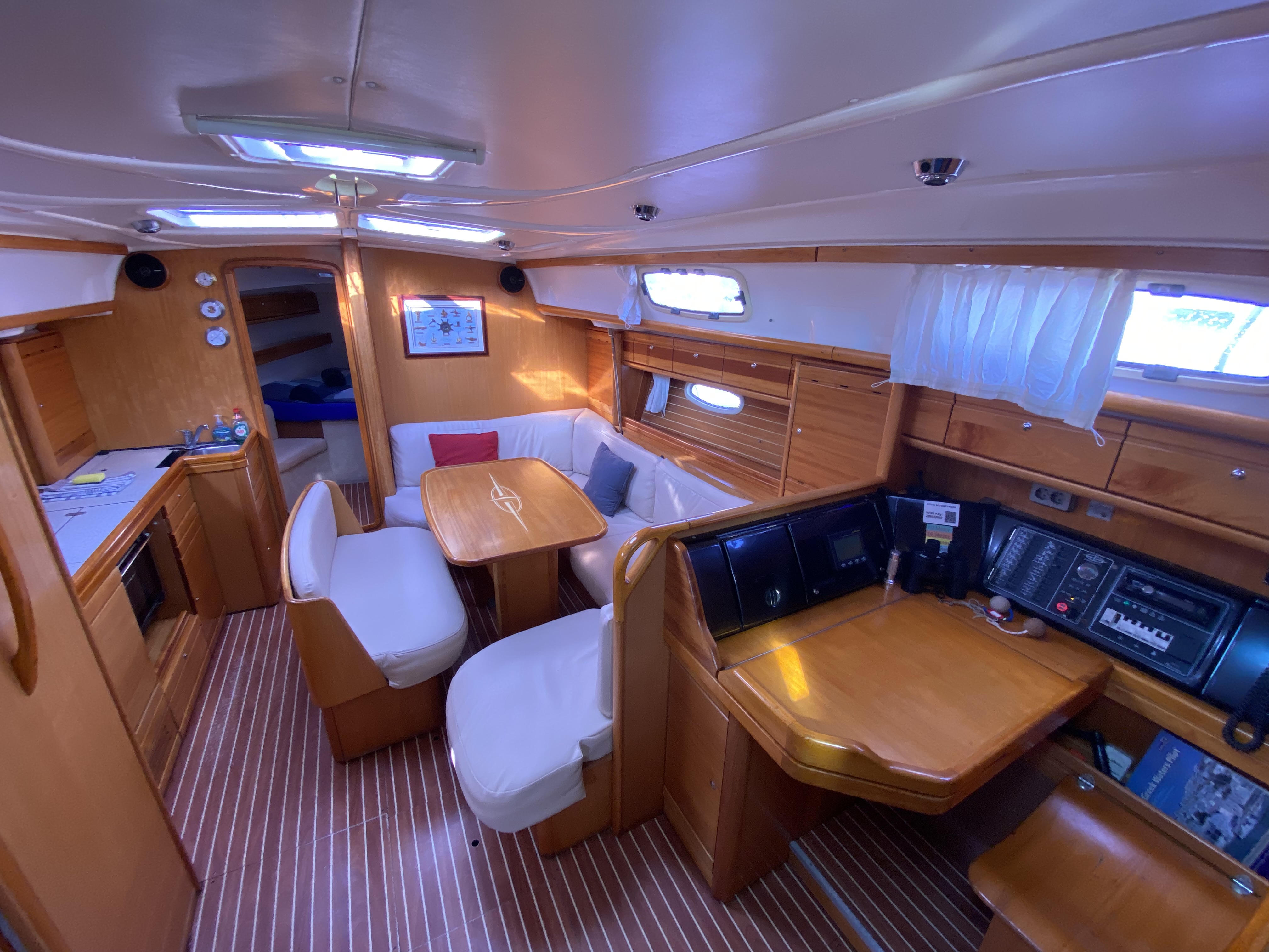 | Outside | 220 V-Landanschluss, Biminitop, Cockpitlautsprecher, Cockpitpolster, Cockpittisch, Deckbürste, Dieselkanister , elektr. Ankerwinsch, Fender, Gangway, Kunststoff-Eimer (Pütz), Schnorchelausrüstung, Solaranlage, Sprayhood, Wasserkanister , Wasserschlauch, Windex, Winschen |