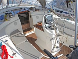 | Outside | 220 V-Landanschluss, Biminitop, Cockpitlautsprecher, Cockpitpolster, Cockpittisch, elektr. Ankerwinsch, Solaranlage, Sprayhood, Windex |