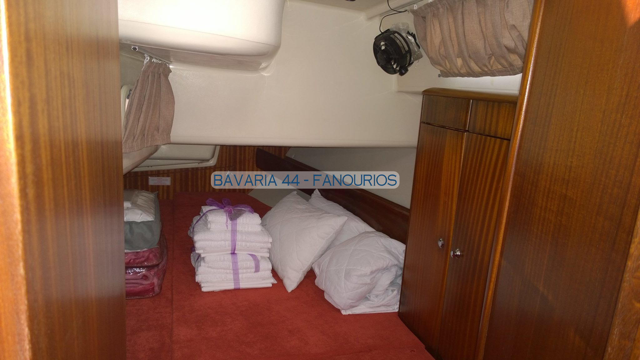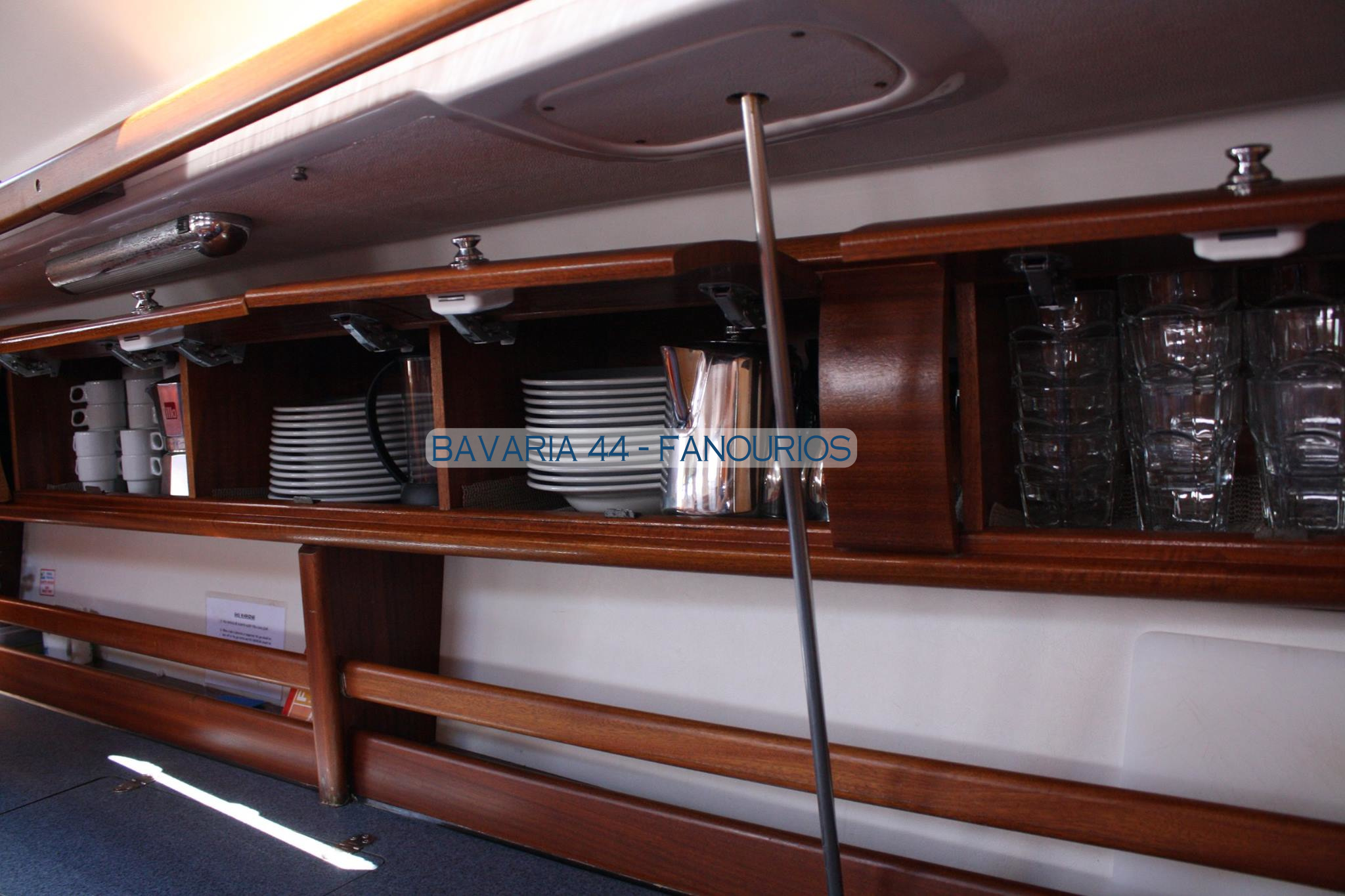 | Inside | Borduhr, Inverter 12V/220V, Kühlschrank, Ladegerät, Luftpumpe für Beiboot, Pantryausstattung, Radio, Ventilatoren in Kabinen, Warmwasser |