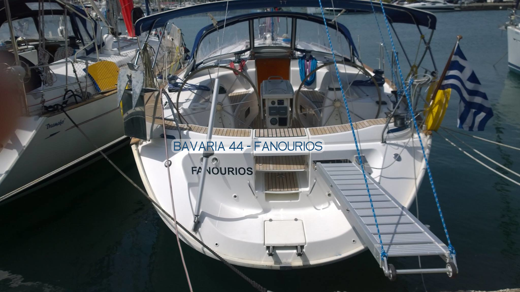 | Outside | 220 V-Landanschluss, Anker mit Kette, Biminitop, Cockpitdusche, Cockpitlautsprecher, Cockpitpolster, Cockpittisch, Dieselkanister , elektr. Ankerwinsch, Faltpropeller, Fender, Festmacherleinen, Gangway, Kugelfender, Sprayhood, Teak im Cockpit |