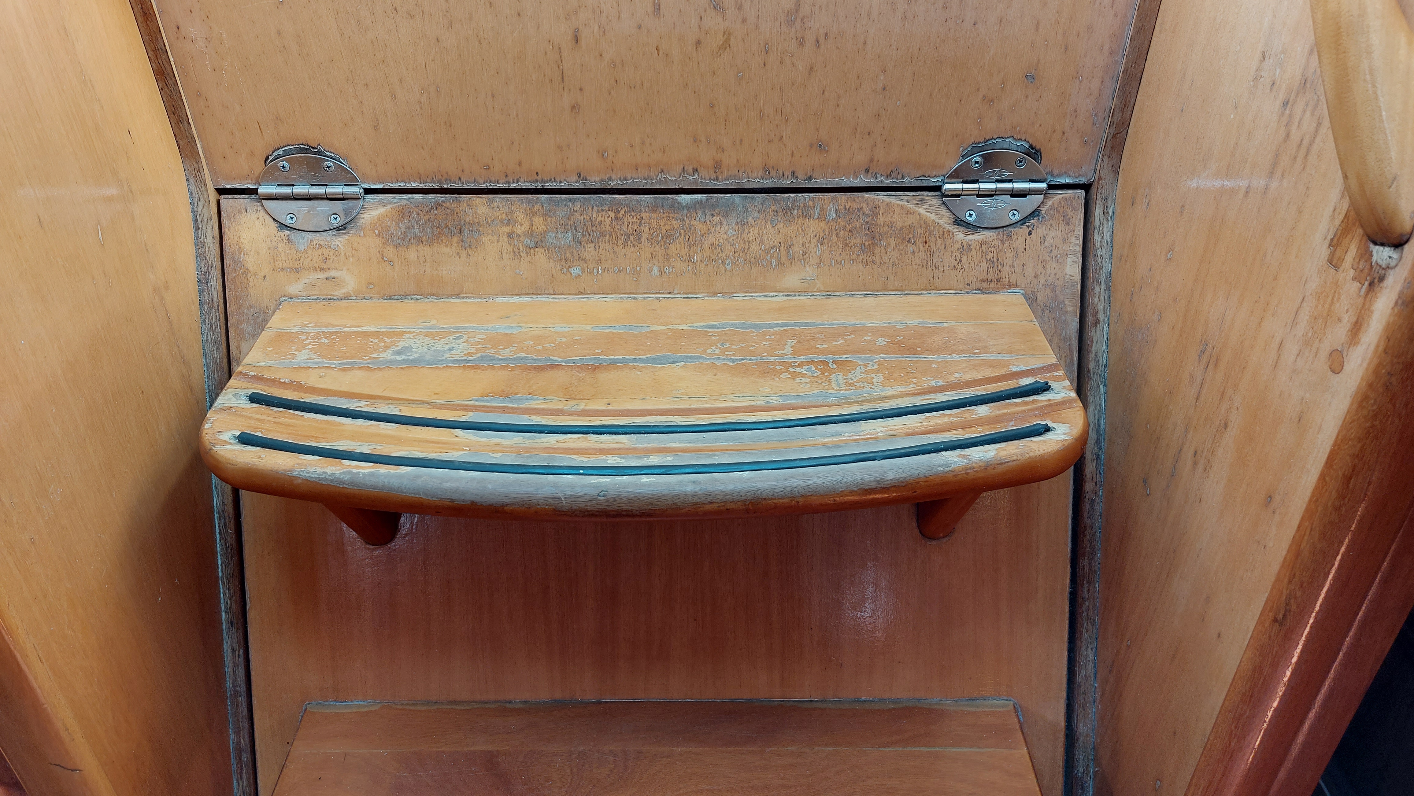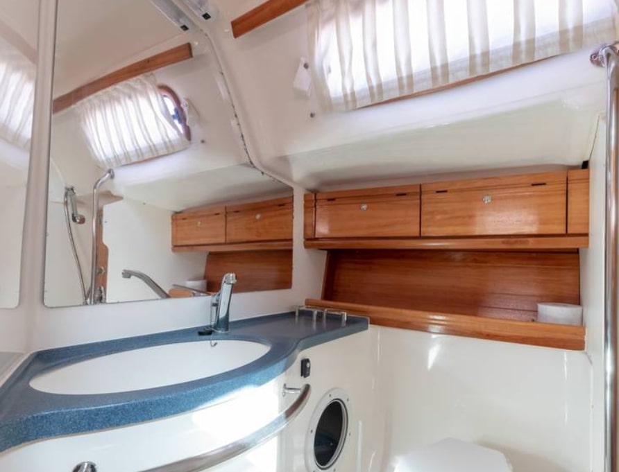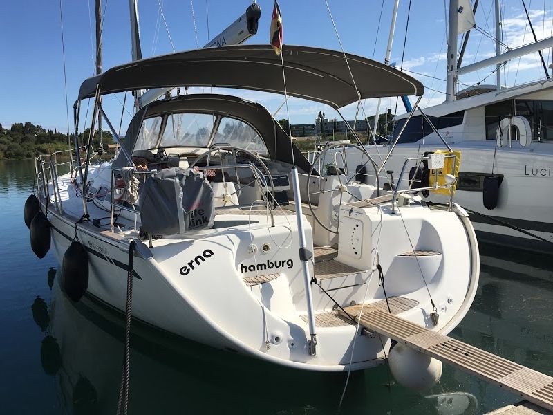 | Outside | 12 V-Anschluss, Anker mit Kette, Badeleiter, Biminitop, Cockpitdusche, Cockpitlautsprecher, Cockpitpolster, Cockpittisch, elektr. Ankerwinsch, Fender, Festmacherleinen, Gangway, Segel-Flickwerkzeug, Solaranlage, Sprayhood, Teak im Cockpit, Treibanker, Windex |