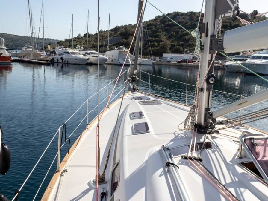 | Safety | AIS Empfänger, Autopilot, Bootsmannstuhl, Bordapotheke, Bordwerkzeug, Bugstrahlruder, elektr. Bilgepumpe, Epirb, Feststoffschwimmwesten, Feuerlöscher, Flaggen, GMDSS, Leuchtboje, Lifebelts, Markierungsboje, Navigationslichter, Nebelhorn, Notpinne, Notsignale, Radarreflektor, Rettungsinsel, Rettungskragen, Sicherheitsgurt, Taschenlampe, UKW-Funk |