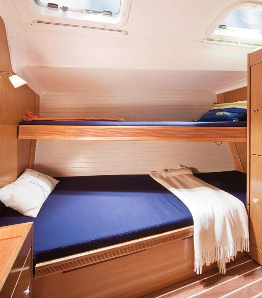 | Safety | Autopilot, Bootsmannstuhl, Bordapotheke, Bordwerkzeug, Bugstrahlruder, Feststoffschwimmwesten, Feuerlöscher, Handbilgepumpe, Leuchtboje, Nebelhorn, Notpinne, Radarreflektor, Rettungsinsel, Rettungskragen, Sicherheitsgurt, Taschenlampe, UKW-Funk |