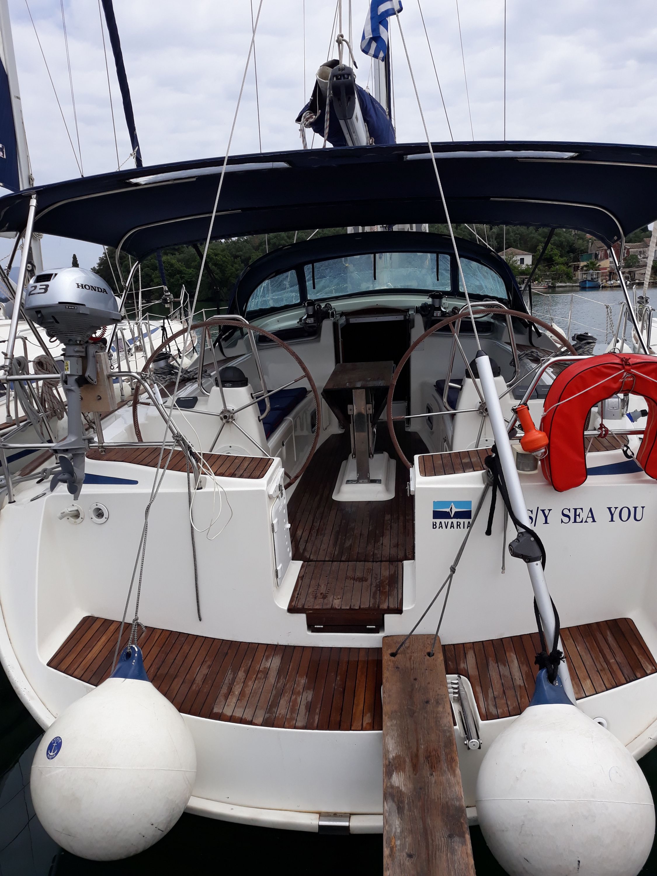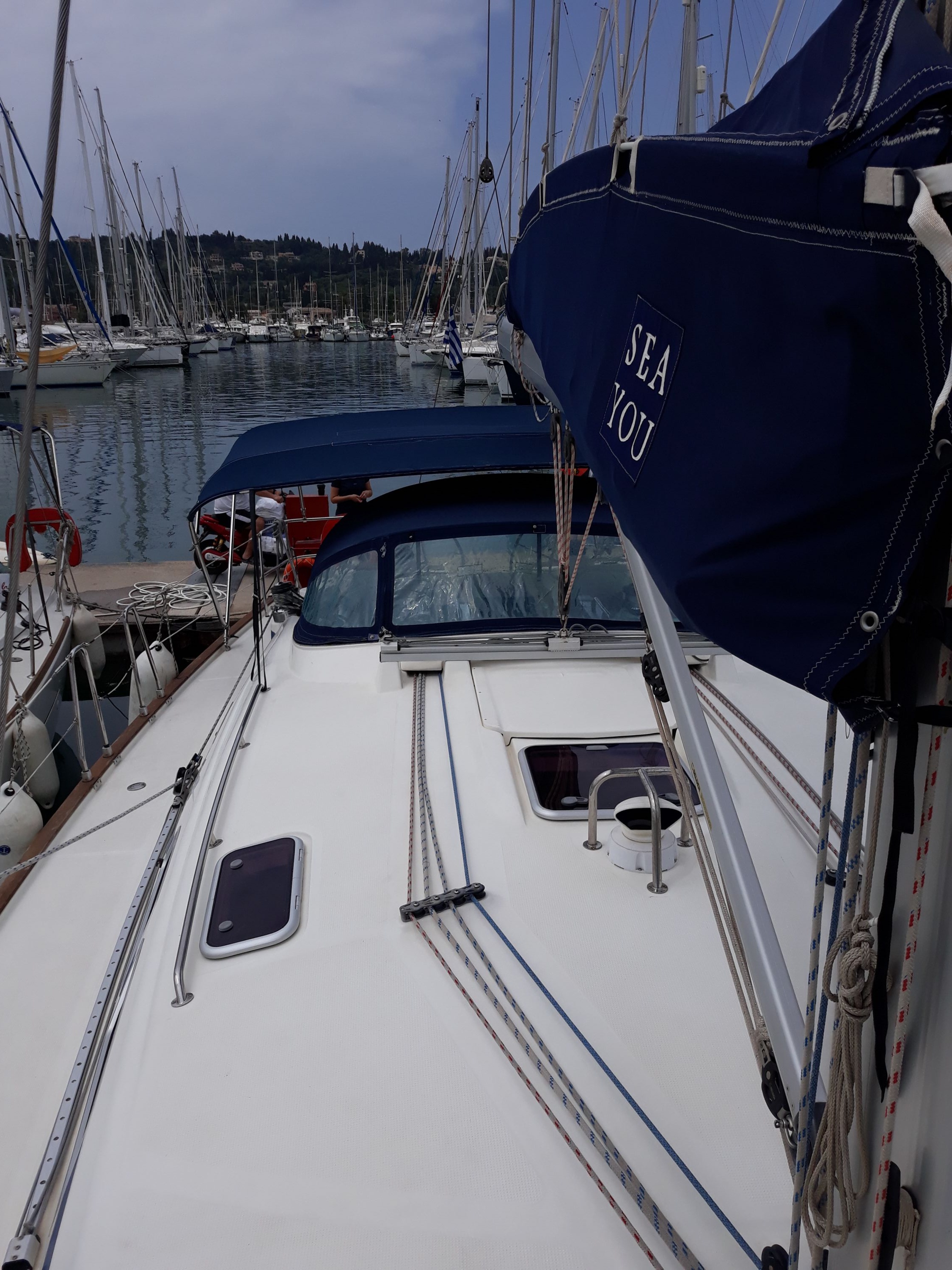 | Outside | Anker mit Kette, Badeleiter, Biminitop, Cockpitdusche, Cockpitlautsprecher, Cockpittisch, elektr. Ankerwinsch, Gangway, Sprayhood, Windex |