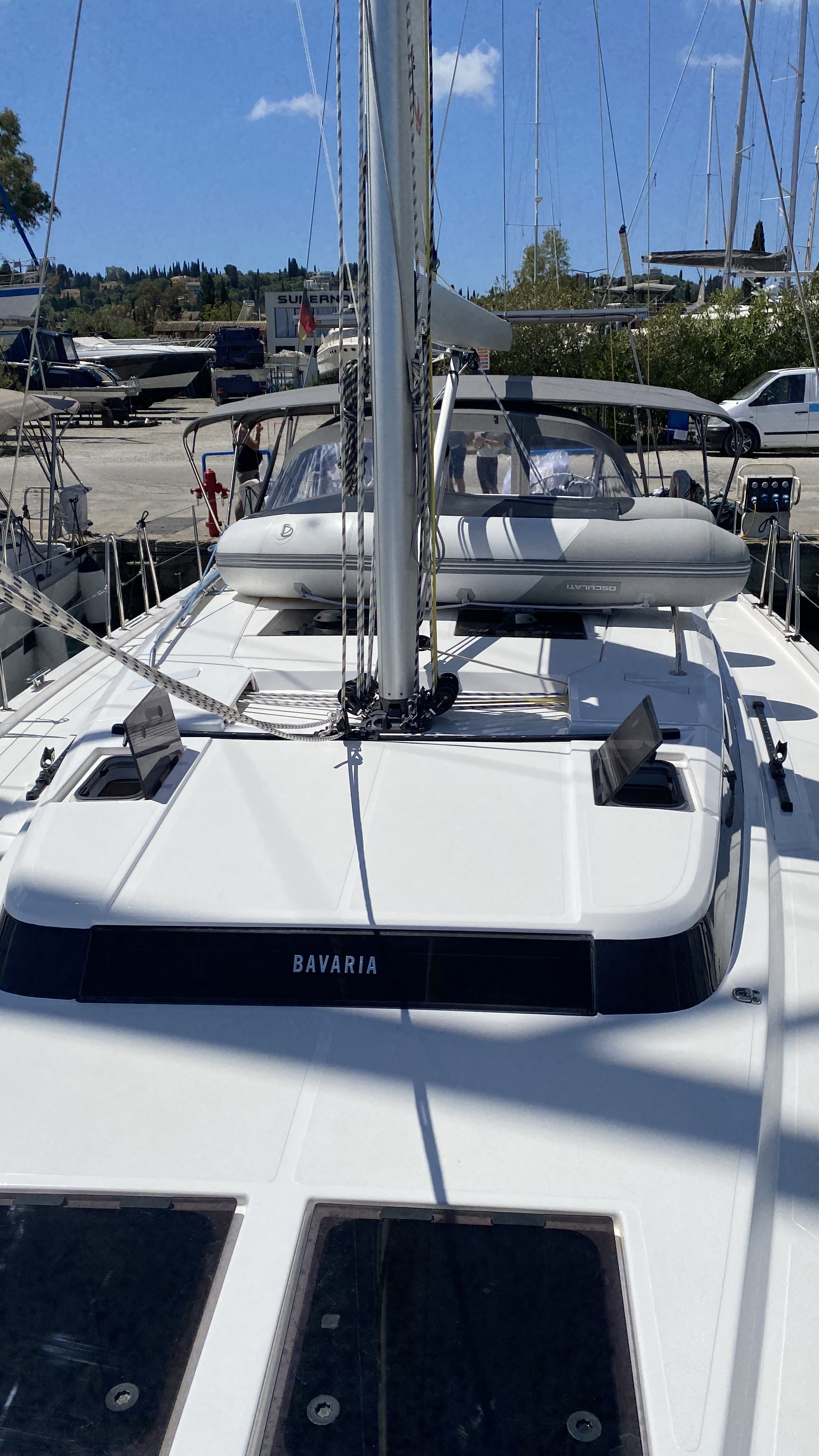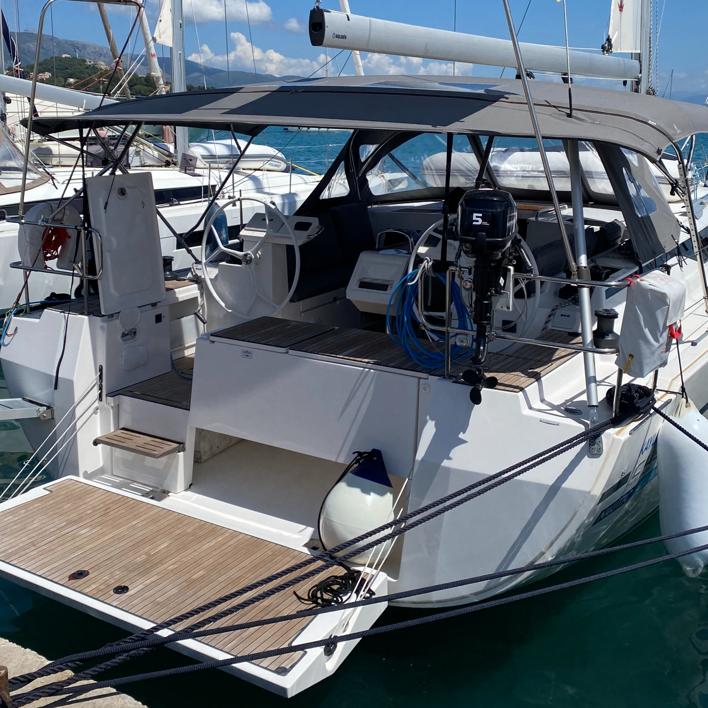 | Outside | 220 V-Landanschluss, Anker mit Kette, Ankerwinsch, Biminitop, Bootshaken, Cockpitdusche, Cockpitlautsprecher, Cockpitpolster, Cockpittisch, Dieselkanister , elektr. Ankerwinsch, Fender, Festmacherleinen, Gangway, Kugelfender, Kunststoff-Eimer (Pütz), Solaranlage, Sprayhood, Teak im Cockpit, Wantenschneider, Wasserkanister , Wasserschlauch, Windex |