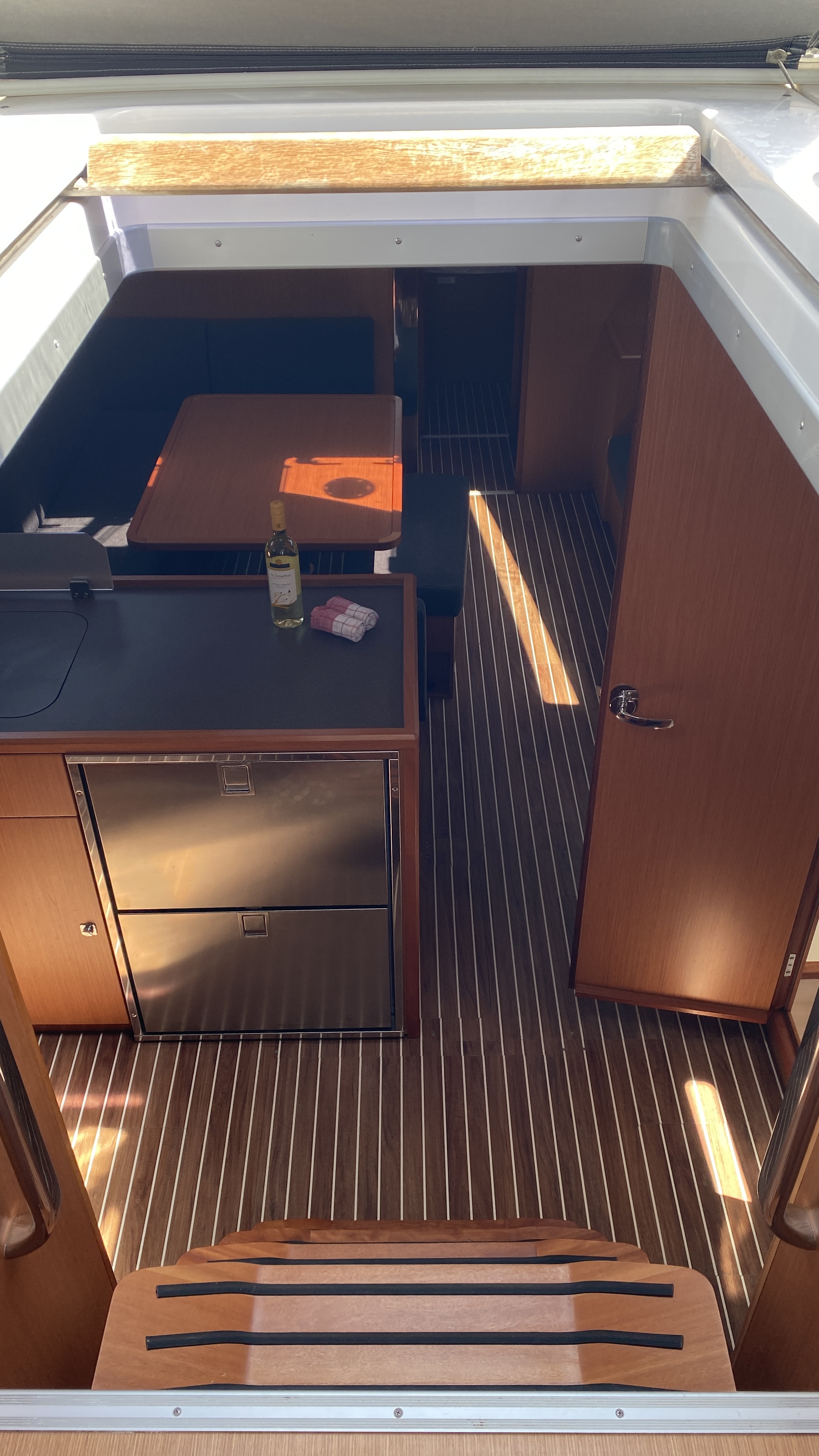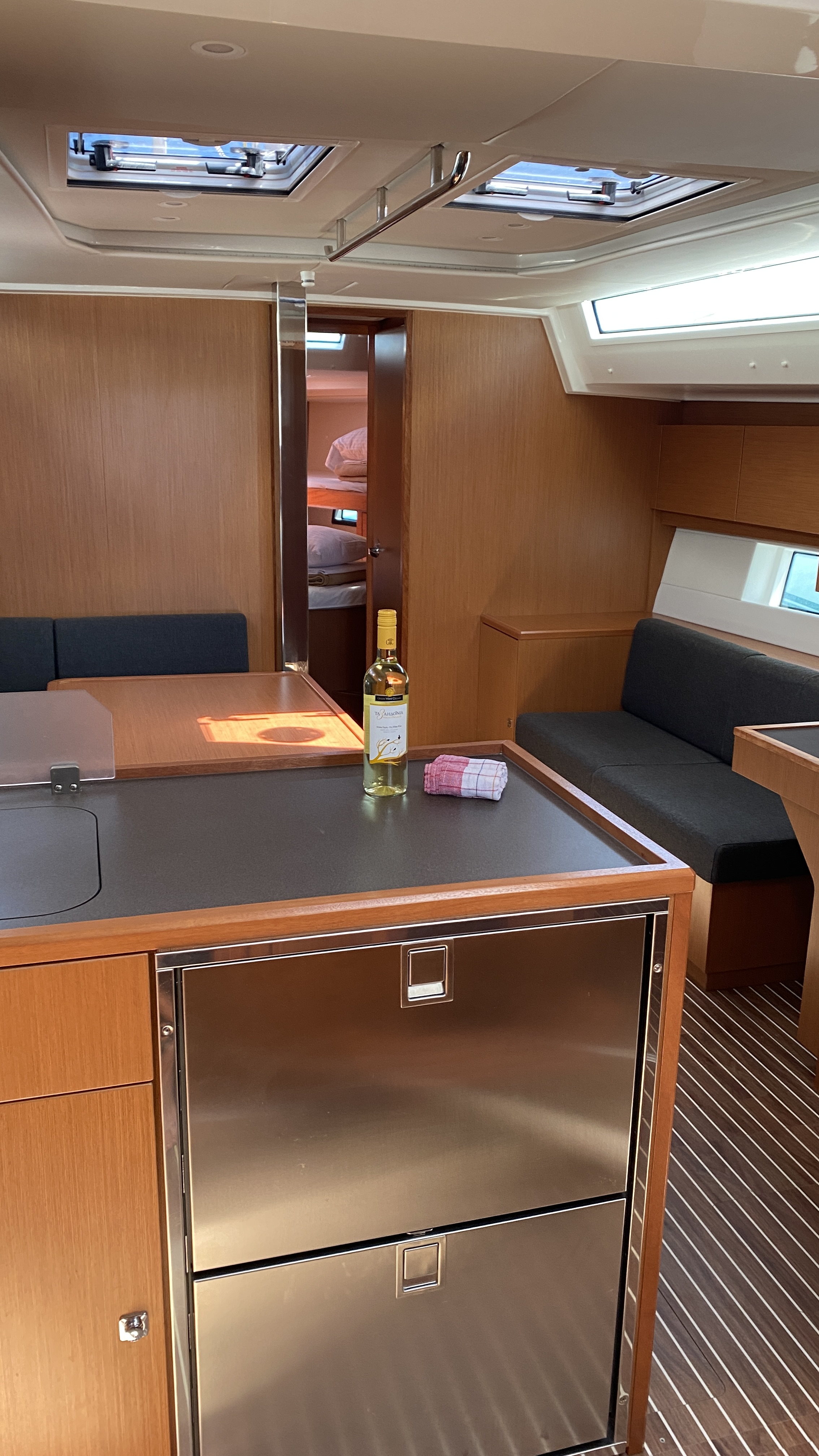 | Inside | Borduhr, Inverter 12V/220V, Kühlschrank, Ladegerät, Luftpumpe für Beiboot, Pantryausstattung, Radio, Salontisch absenkbar, USB Steckdose, Warmwasser |
