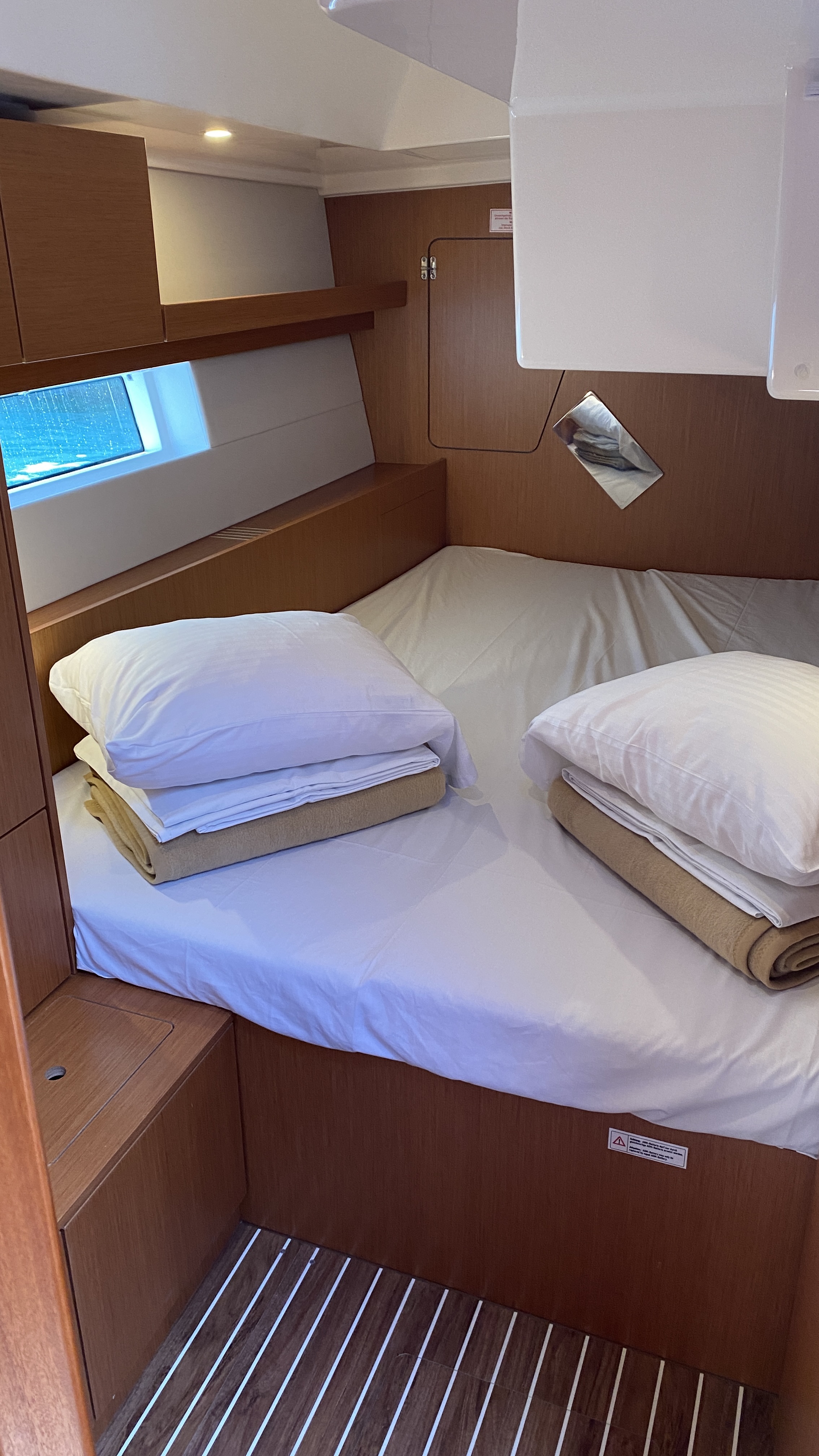 Das war bisher die gründlichste Einweisung die ich je erhalten habe. Die Rückgabe der Yacht wurde ebenso gründlich durchgeführt (es wurde jedes Ausstattungsteil, auch die in der Küche, überprüft). Beim Checkout wurde eine Beschädigung an dem Furnier einer Sitzbank festgestellt und auf dem Übergabeprotokoll vermerkt. Ich musste dafür nichts zahlen, fand das aber merkwürdig, da dieser Schaden eher von der Montage einer Batterie oder ähnliches stammt und nicht von uns verursacht wurde. Einzige Mankos waren eine leere Gasflasche (noch am 1. Abend auf See war die Flasche leer). Ich habe beim Checkin darauf hingewiesen und mir wurde erklärt, das es dafür die 2. Flasche gibt. Wir hatten dadurch ab Donnerstag früh kein Gas mehr an Board. Der Außenborder wollte ab Mitte der Woche nicht mehr funktionieren und eine Winsch ist ausgefallen. Das war aber alles kein Problem, da so etwas immer sein kann. Ärgerlich war eher der Mangel an Gas. Sonst war wirklich alles vorbildlich. Besonders hervorzuheben ist, dass die Yachten sehr günstig am Steg liegen. Wir hatten 100 m zum Büro, das Taxi konnte vorm Boot halten und wir konnte einfach gerade raus fahren. Early Check In wurde gegen 13:00 Uhr durchgeführt.