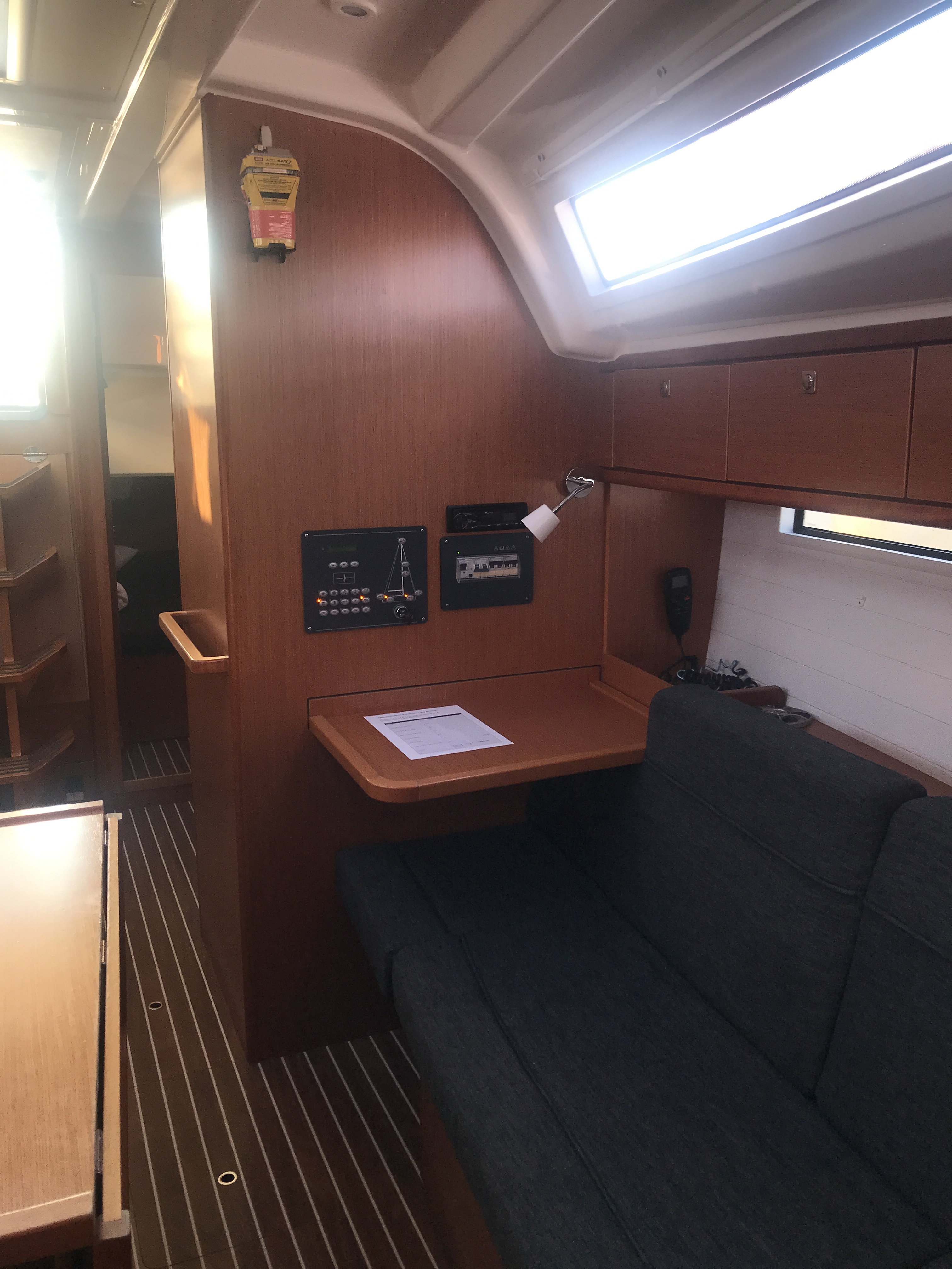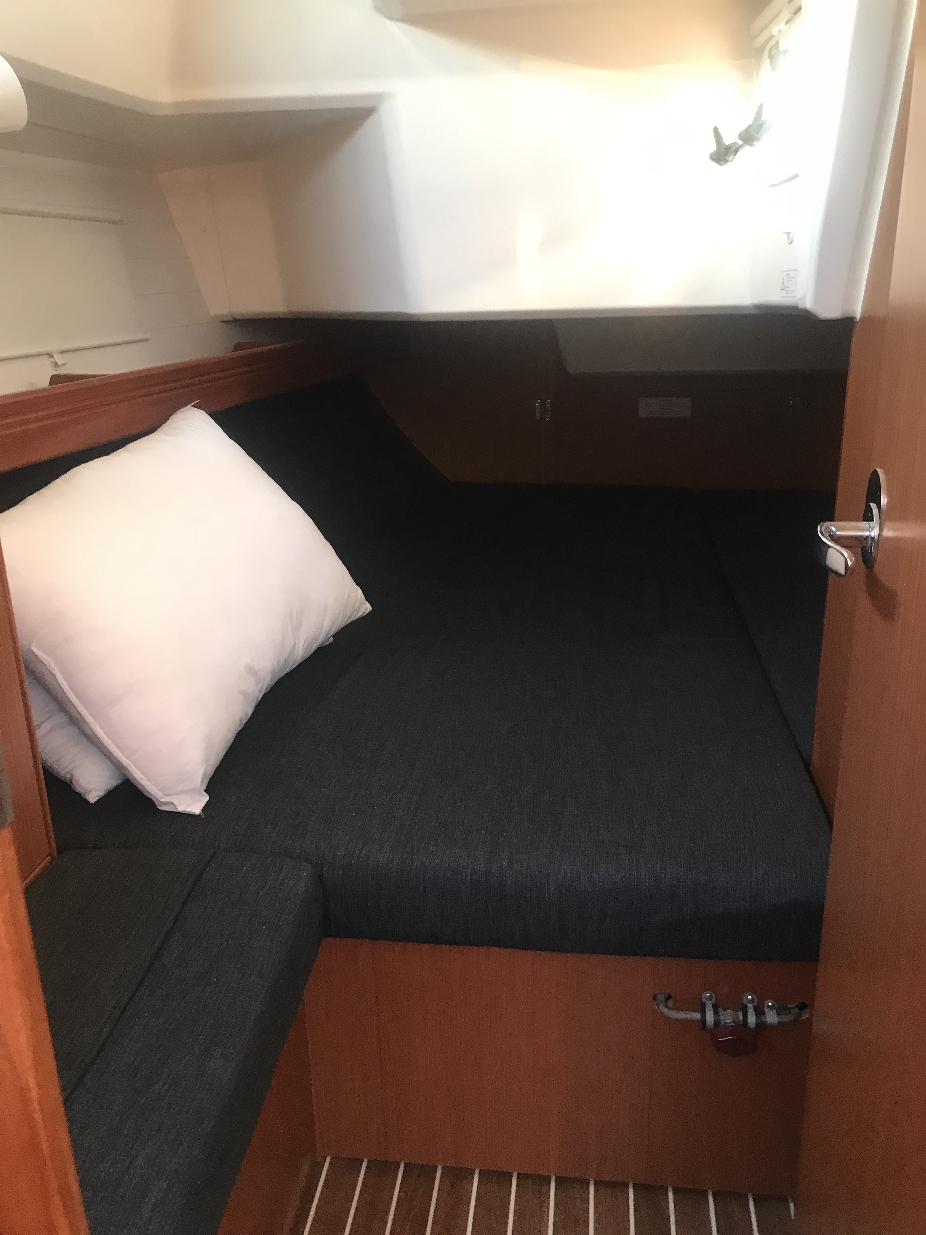 | Navigation | Echolot, Fernglas, GPS mit Kartenplotter im Cockpit, Hafenhandbücher, Handpeilkompass, Navigationsbesteck, Seekarten, Sumlog |
