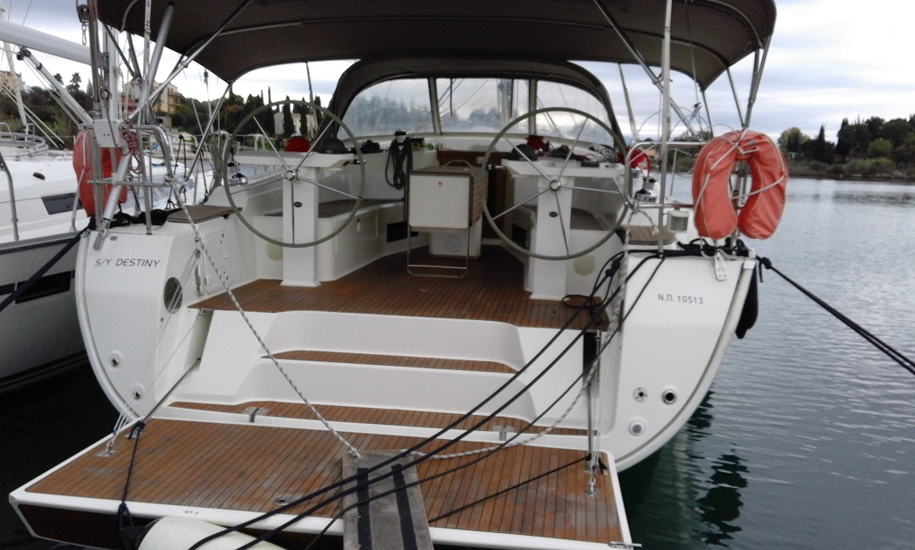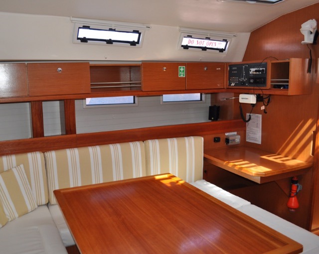 | Outside | Biminitop, Cockpitlautsprecher, Cockpitpolster, Davits, elektr. Ankerwinsch, Solaranlage, Sprayhood, Windex |