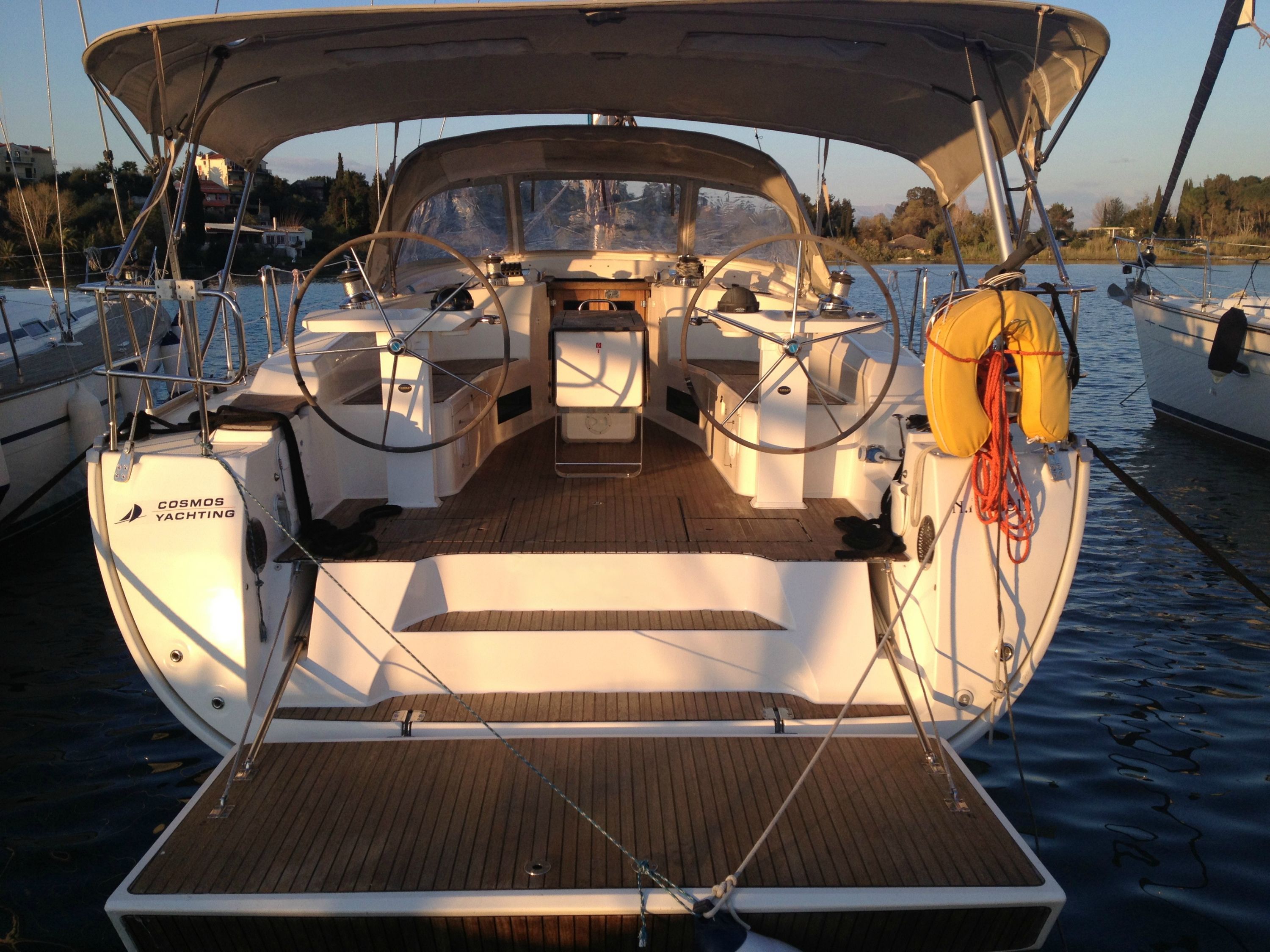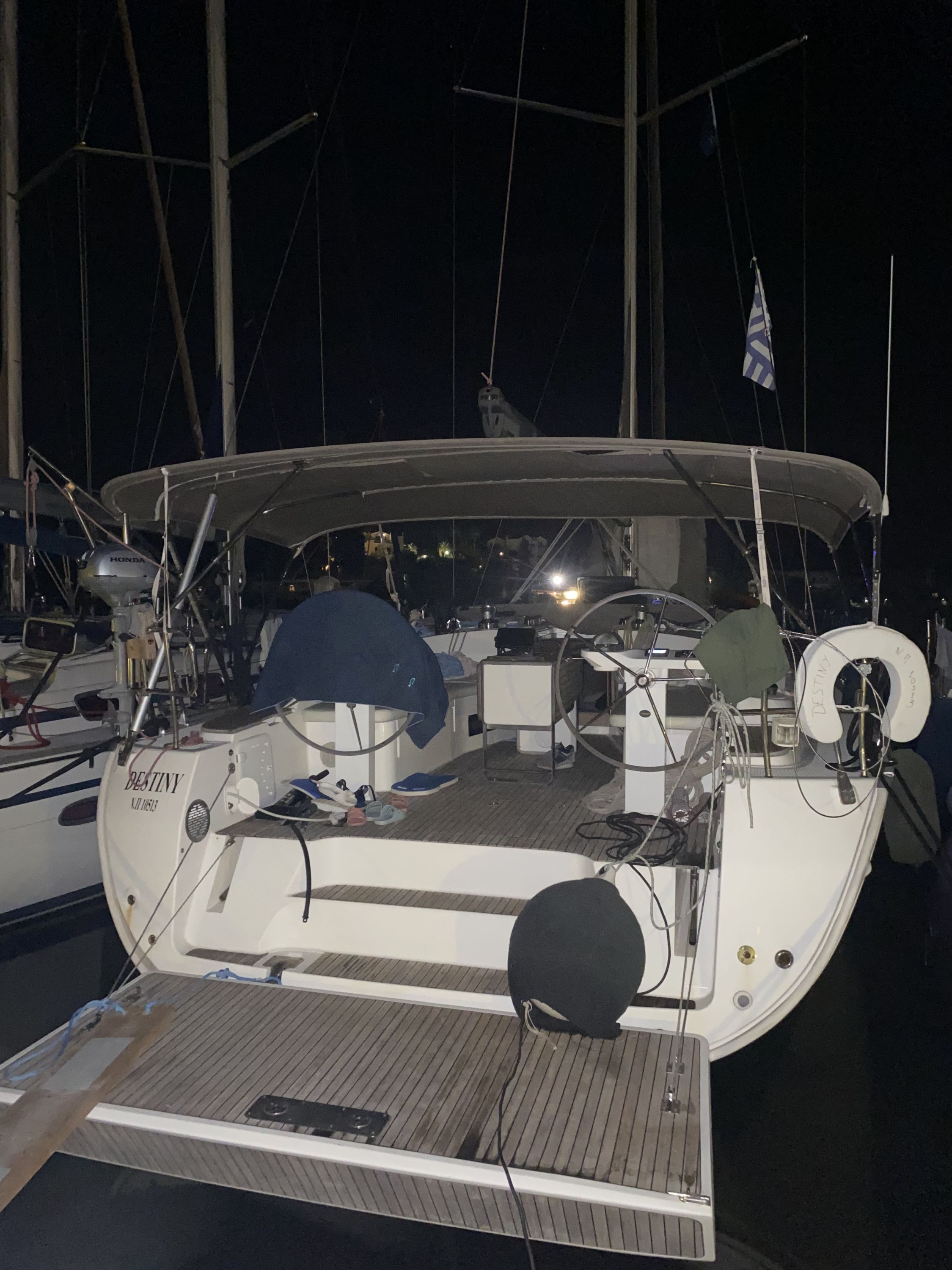 | Outside | Anker mit Kette, Badeleiter, Badeplattform, Biminitop, Cockpitlautsprecher, Cockpitpolster, Cockpittisch, Deckbürste, elektr. Ankerwinsch, Fender, Festmacherleinen, Kunststoff-Eimer (Pütz), Solaranlage, Sprayhood, Treibanker, Wasserschlauch |