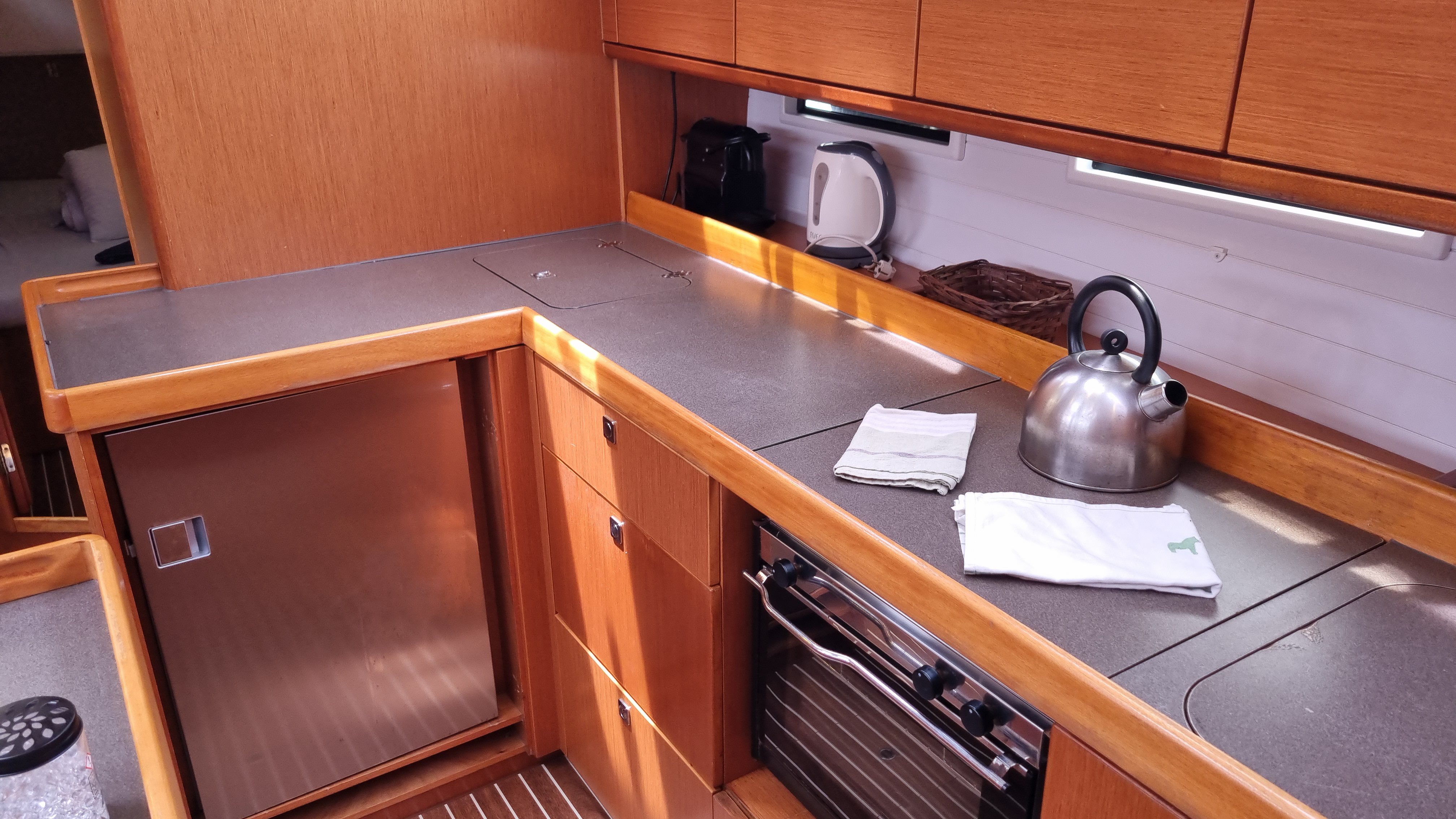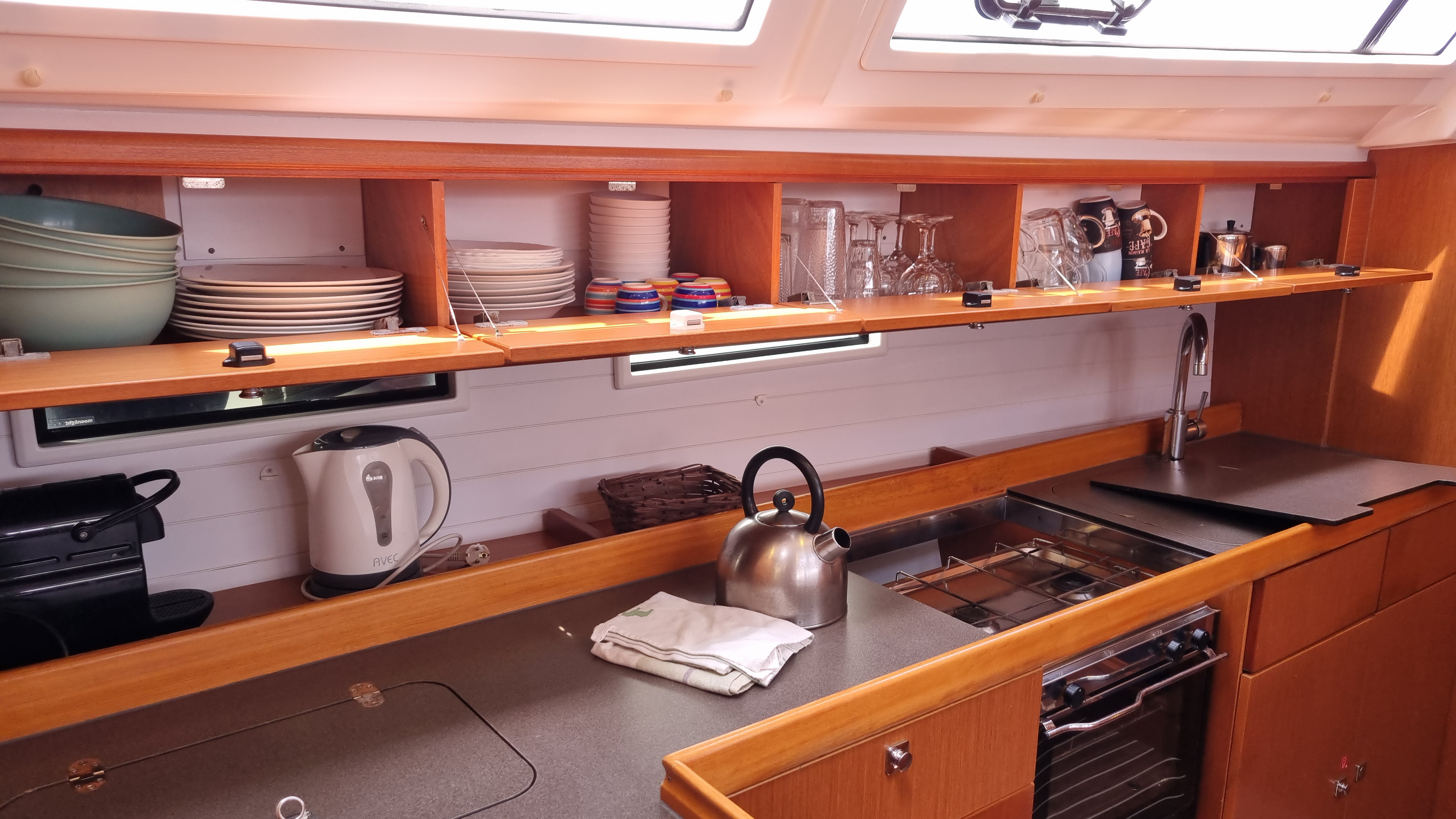 | Inside | Espresso Maschine, Flexschott, Gasherd, Heizung, Inverter 12V/220V, Kühlschrank, Pantryausstattung, Radio mit Bluetooth, USB Steckdosen in den Kabinen, Ventilatoren in Kabinen, WC (elektr.) |