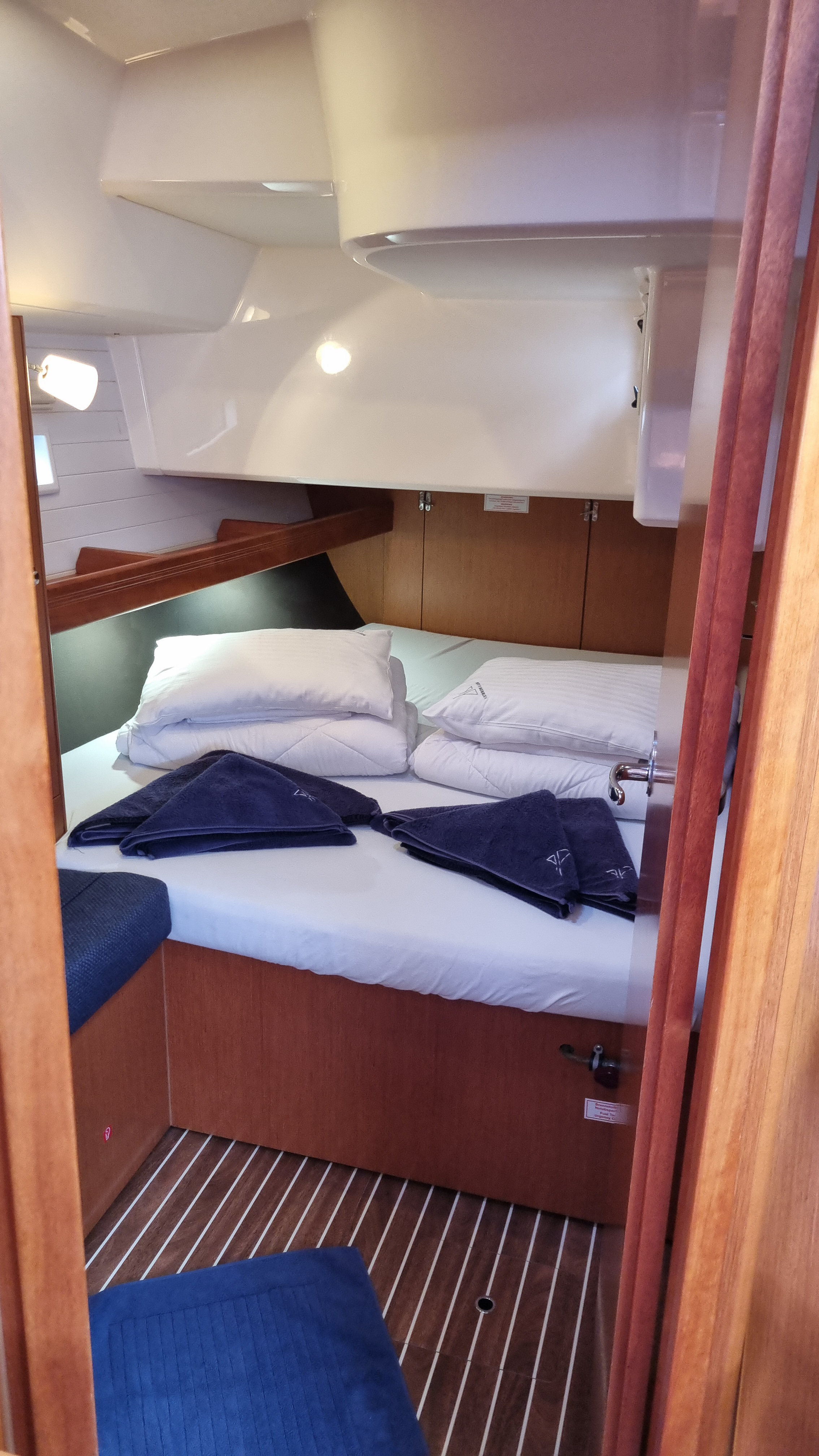 | Safety | AIS Empfänger, Autopilot, Bootsmannstuhl, Bordapotheke, Bordwerkzeug, Bugstrahlruder, Epirb, Feststoffschwimmwesten, Flaggen, Leuchtboje, Navigationslichter, Notpinne, Notsignale, Rettungsinsel, Rettungskragen, Sicherheitsgurt, Taschenlampe, UKW-Funk mit AIS, Zweitanker |