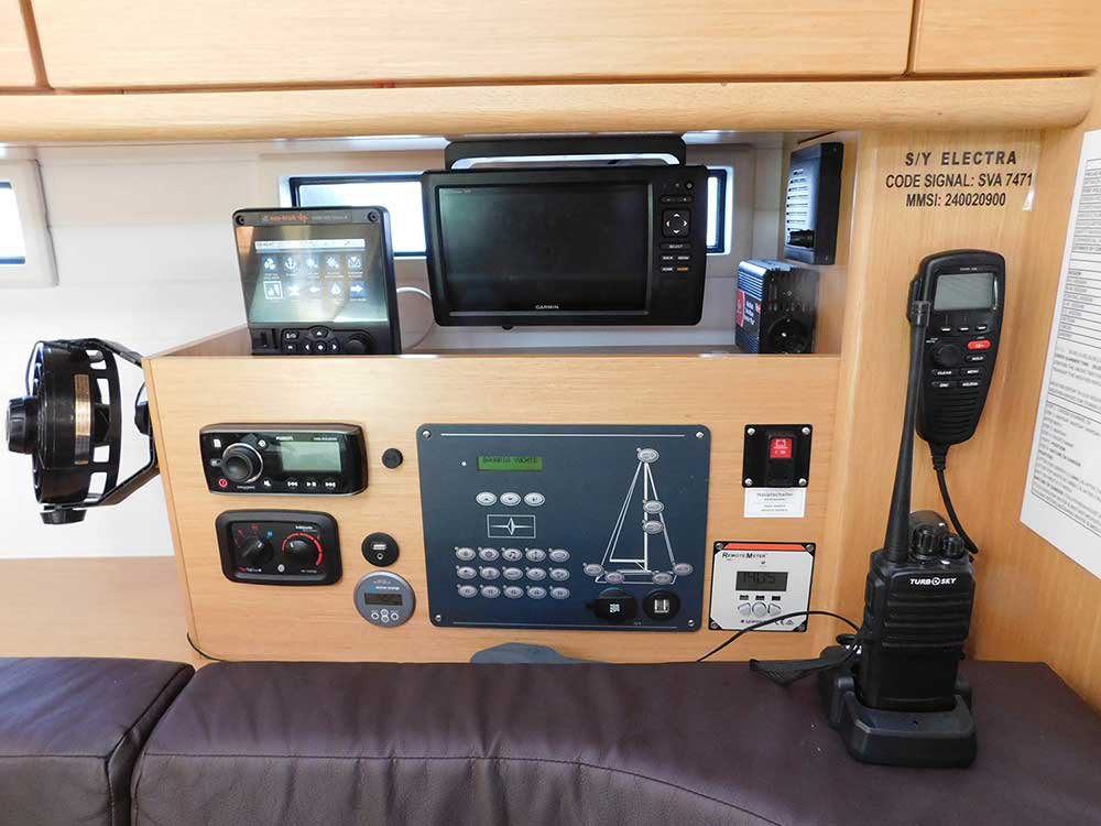 | Navigation | GPS mit Kartenplotter im Cockpit, Tridata (Log, Echolot, Windm.) |