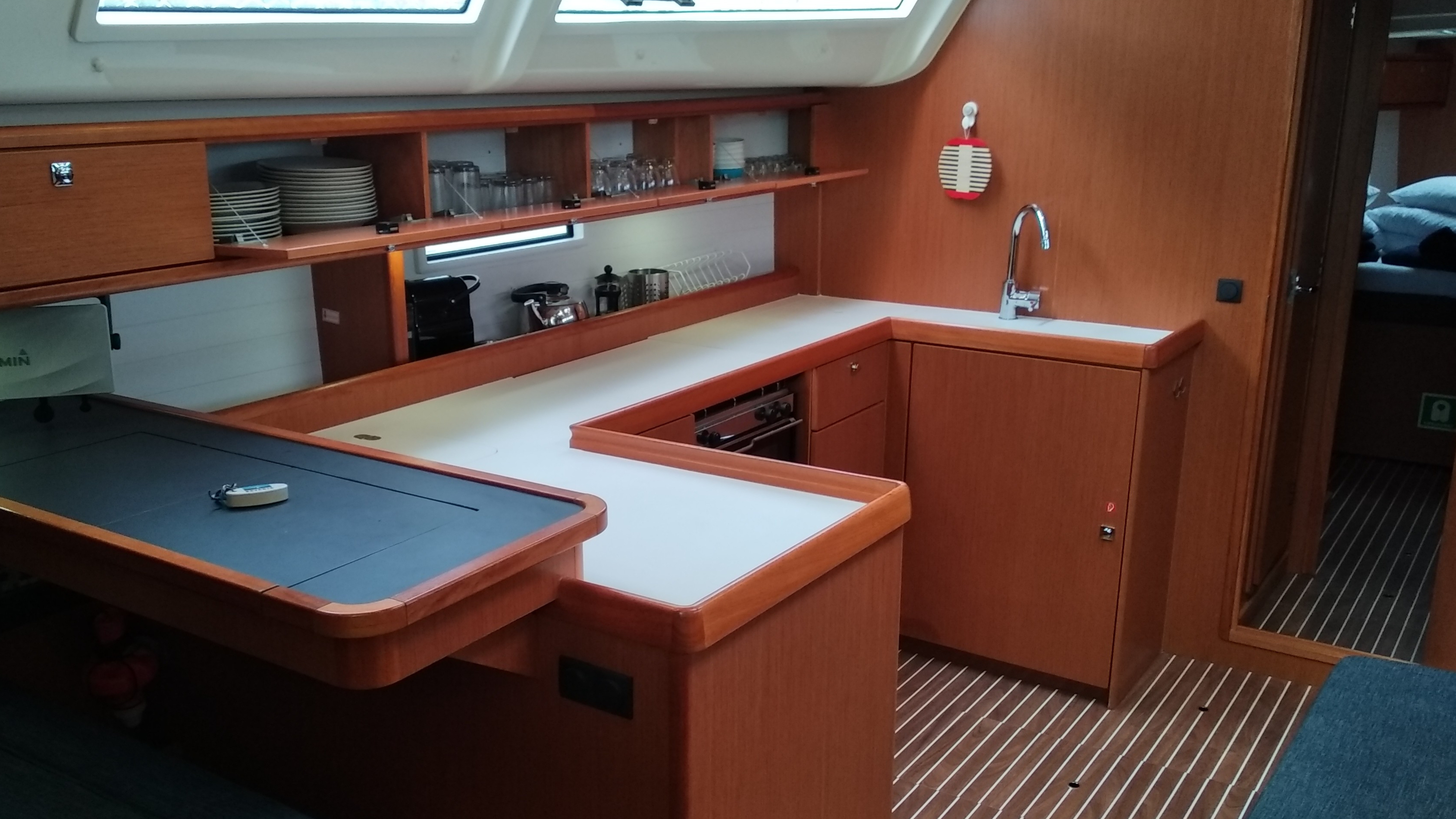 | Safety | AIS Empfänger, Autopilot, Bootsmannstuhl, Bordapotheke, Bordwerkzeug, Bugstrahlruder, Epirb, Feststoffschwimmwesten, Flaggen, Leuchtboje, Navigationslichter, Notpinne, Notsignale, Rettungsinsel, Rettungskragen, Sicherheitsgurt, Taschenlampe, UKW-Funk mit AIS, Zweitanker |