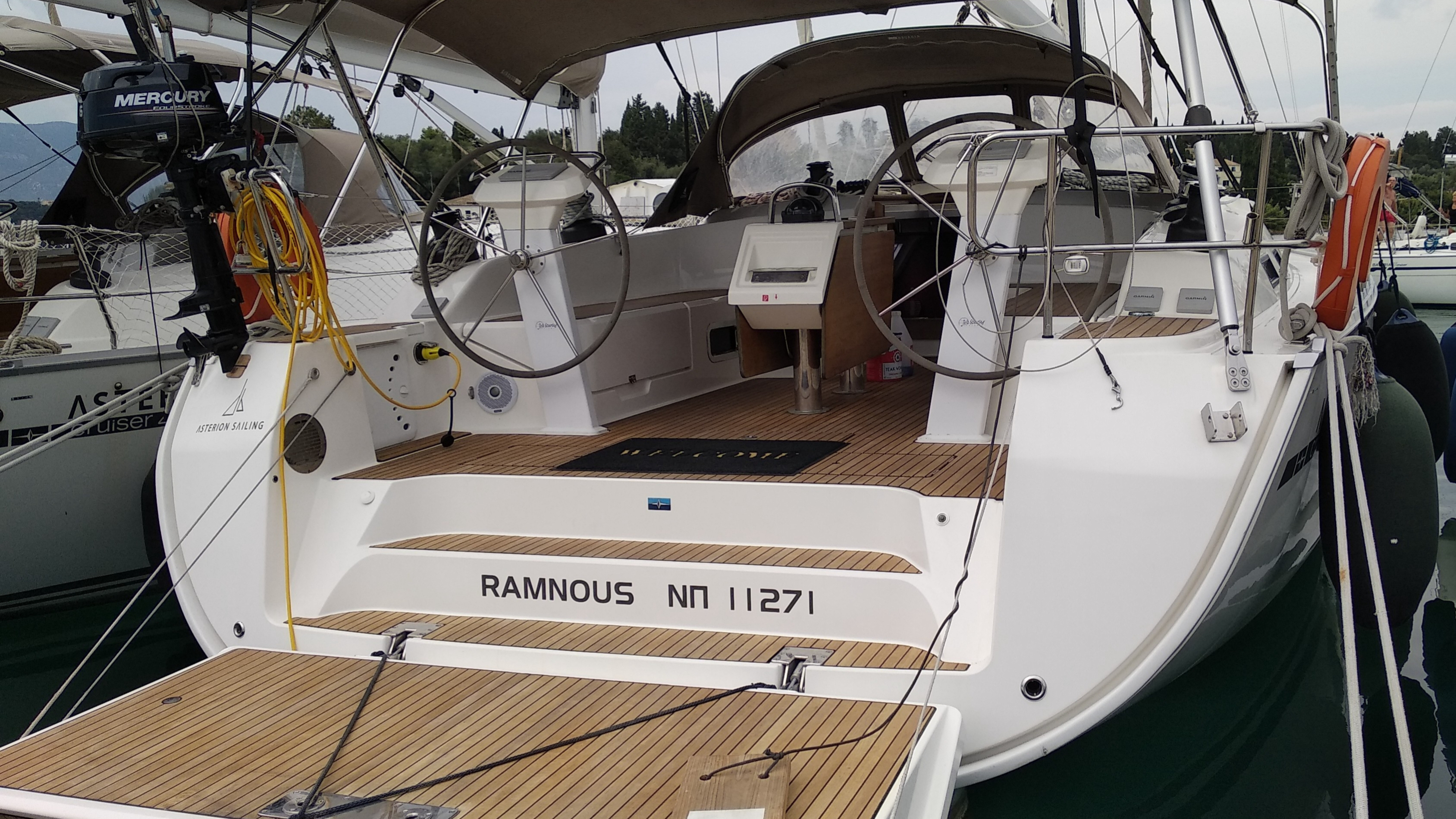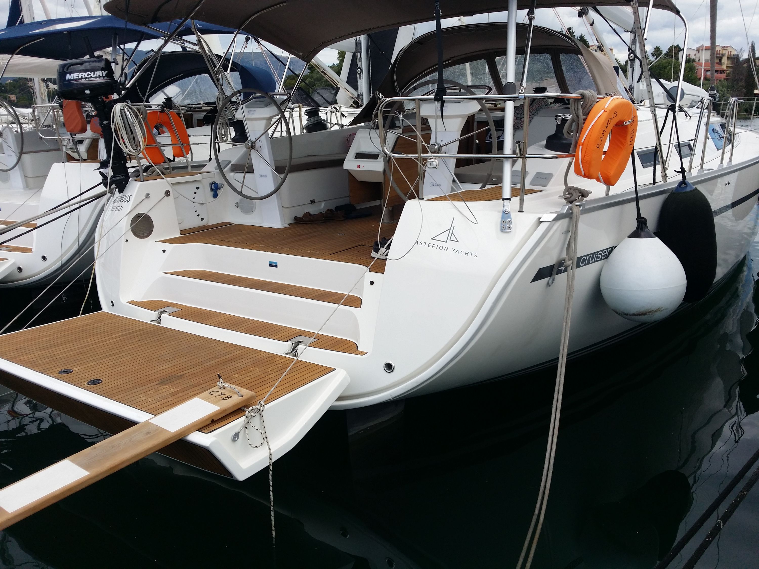 | Outside | Anker mit Kette, Badeleiter, Biminitop, Cockpitdusche, Cockpitlautsprecher, Delta-Anker, elektr. Ankerwinsch, Solaranlage, Sprayhood, Teak im Cockpit, Treibanker |