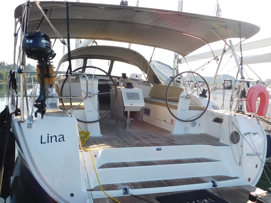 | Outside | Anker mit Kette, Badeleiter, Badeplattform, Biminitop, Cockpitlautsprecher, Cockpitpolster, Cockpittisch, Deckbürste, elektr. Ankerwinsch, Fender, Festmacherleinen, Kunststoff-Eimer (Pütz), Solaranlage, Sprayhood, Treibanker, Wasserschlauch |