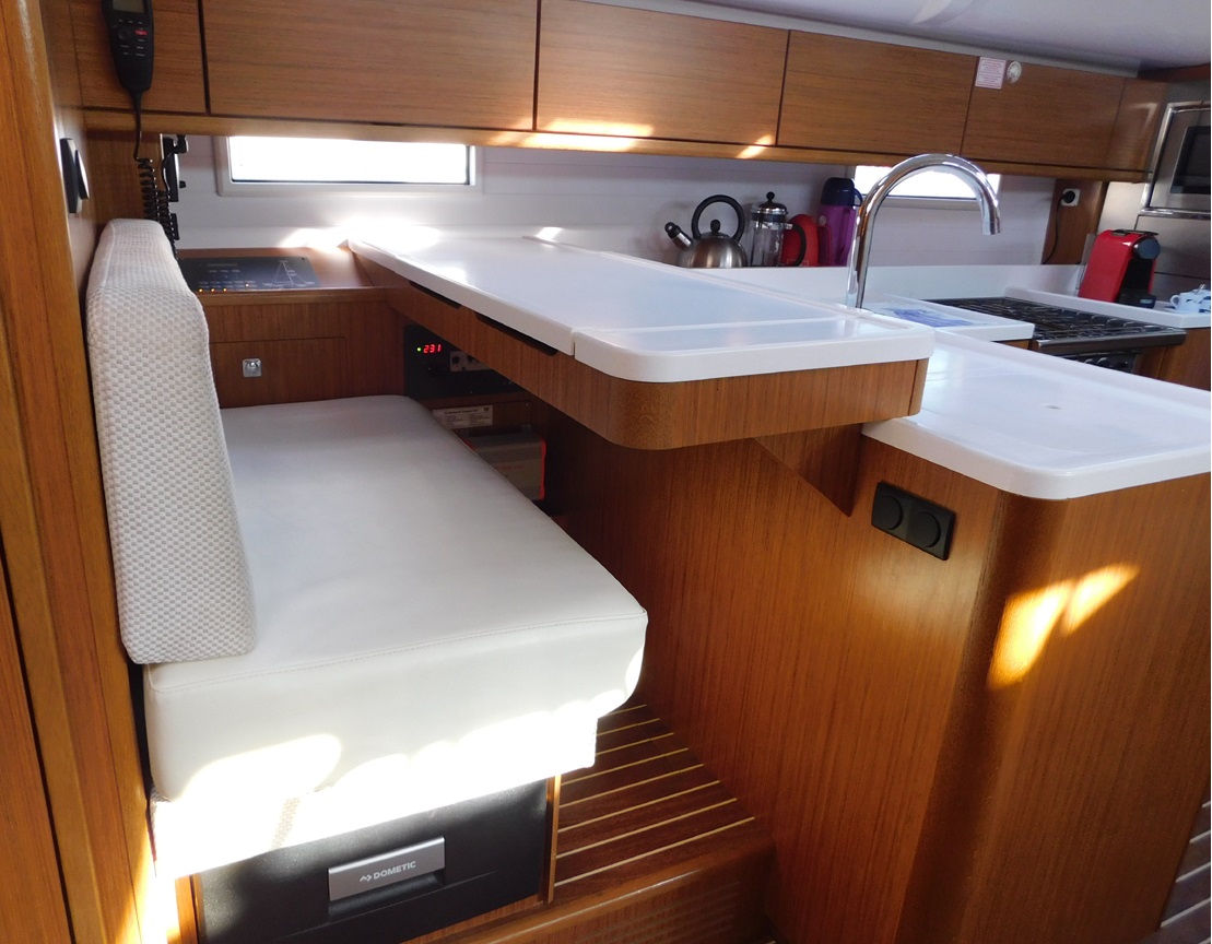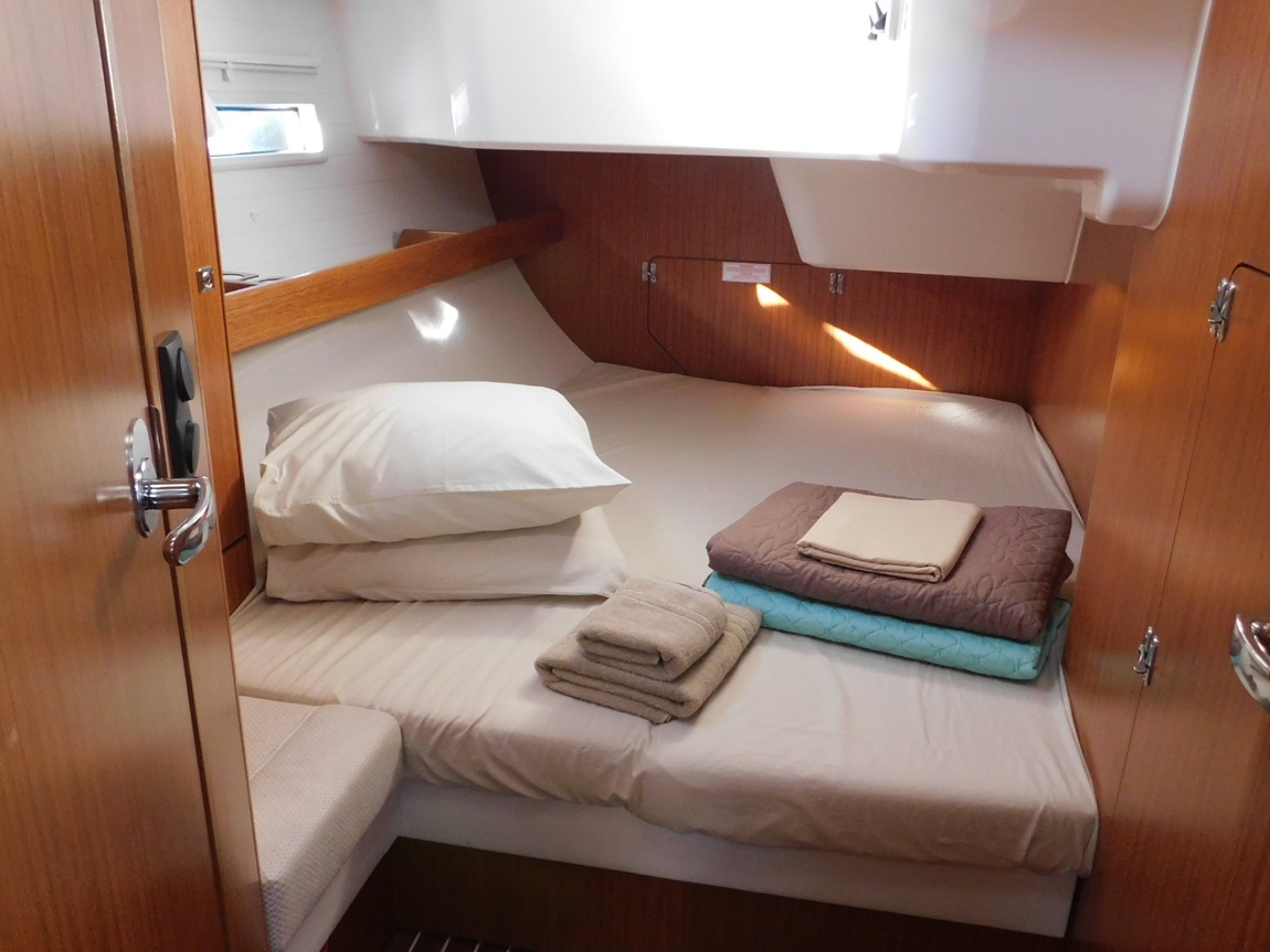 | Safety | Autopilot, Bootsmannstuhl, Bordapotheke, Bordwerkzeug, Bugstrahlruder, elektr. Bilgepumpe, Feststoffschwimmwesten, Feuerlöscher, Flaggen, Leuchtboje, Navigationslichter, Nebelhorn, Notpinne, Notsignale, Radarreflektor, Reserve-Motoröl, Rettungsinsel, Rettungskragen, Sicherheitsgurt, Taschenlampe, UKW-Funk |