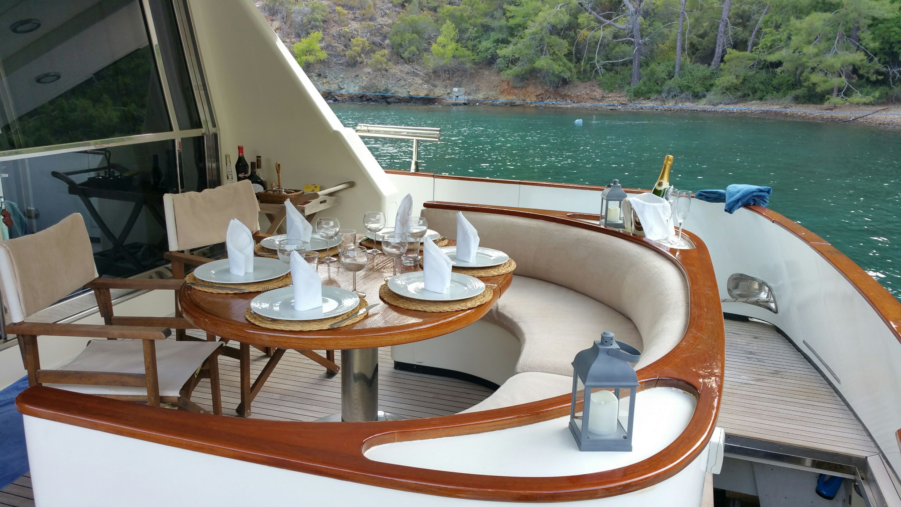 | Outside | Angelausrüstung, Badeplattform, Cockpitlautsprecher, Schnorchelausrüstung, Teakdeck, Wasserski |