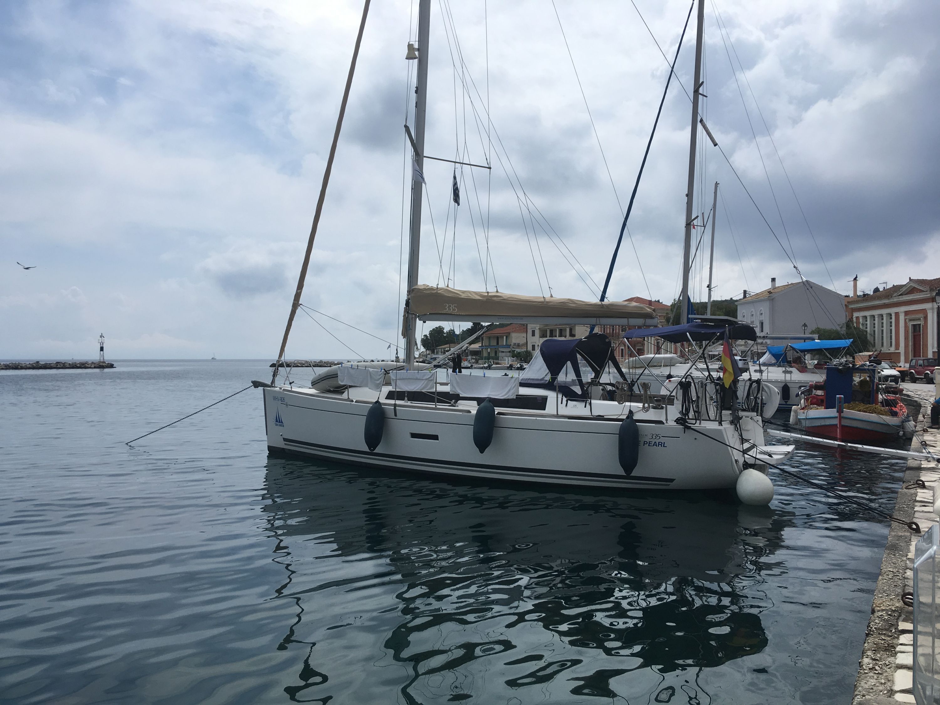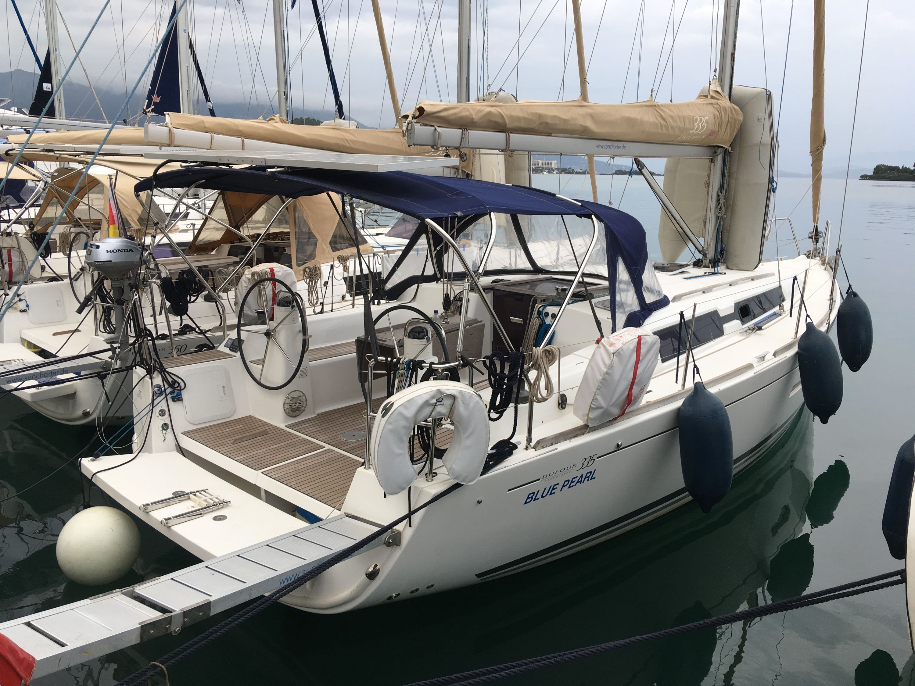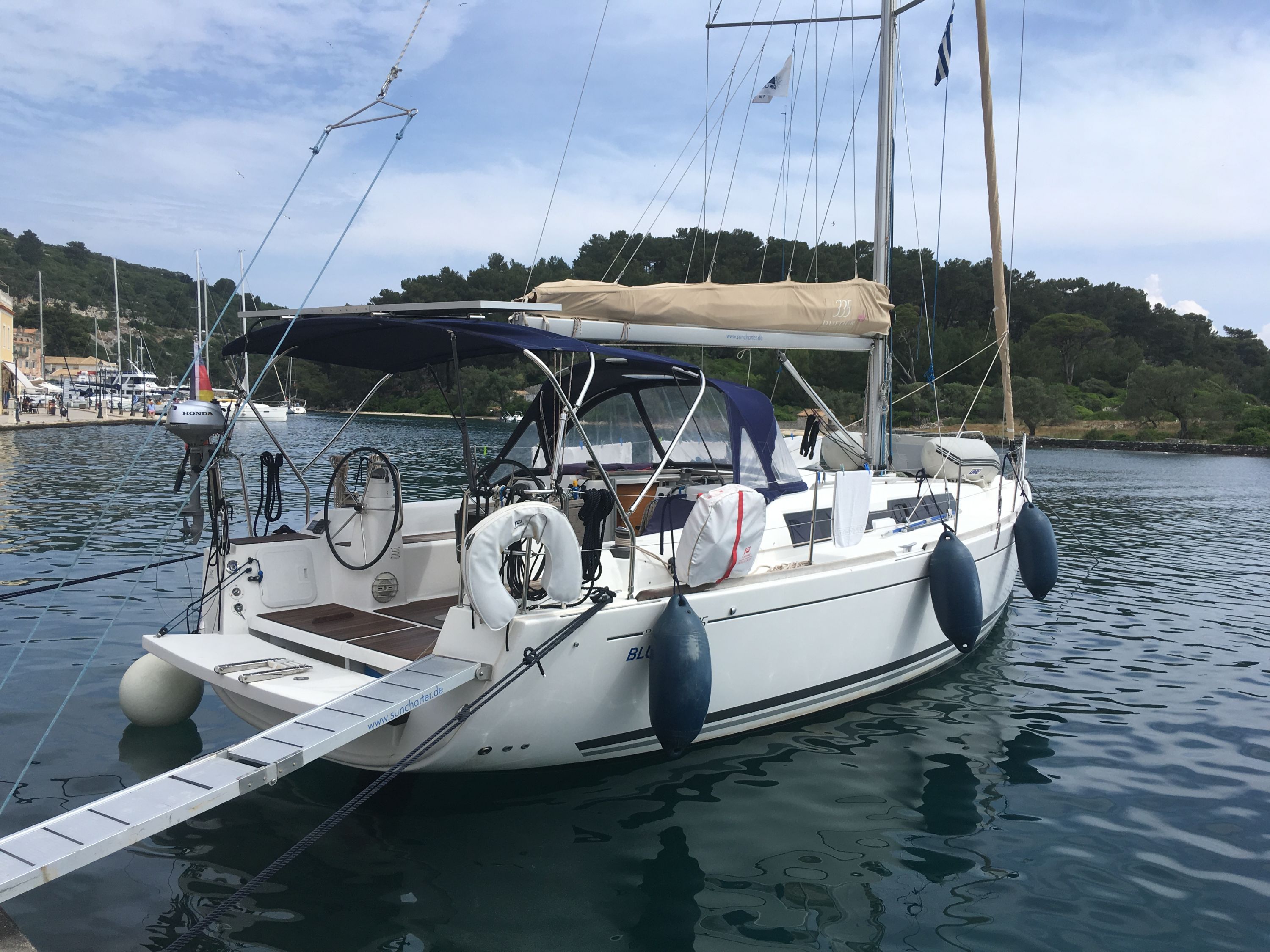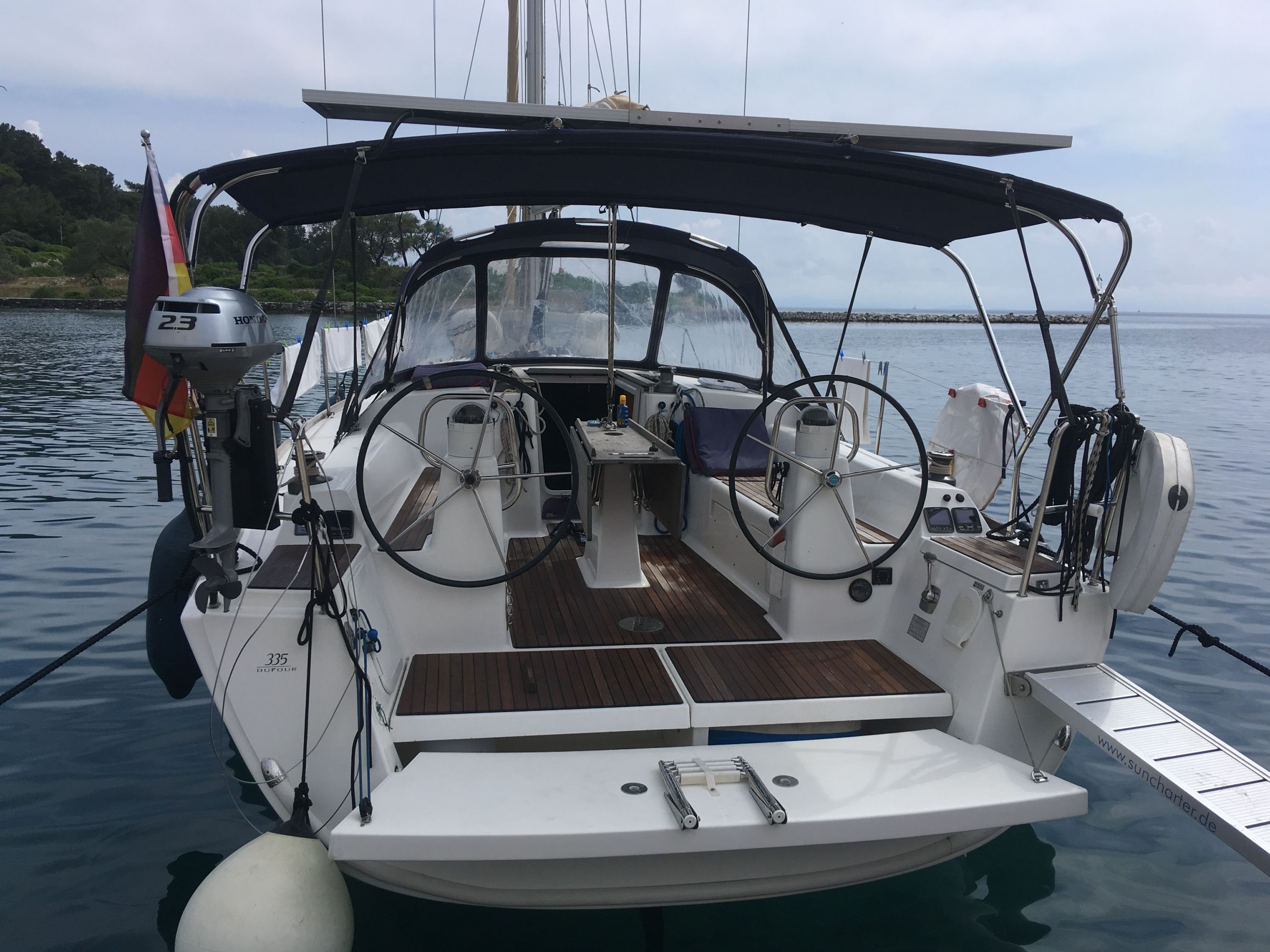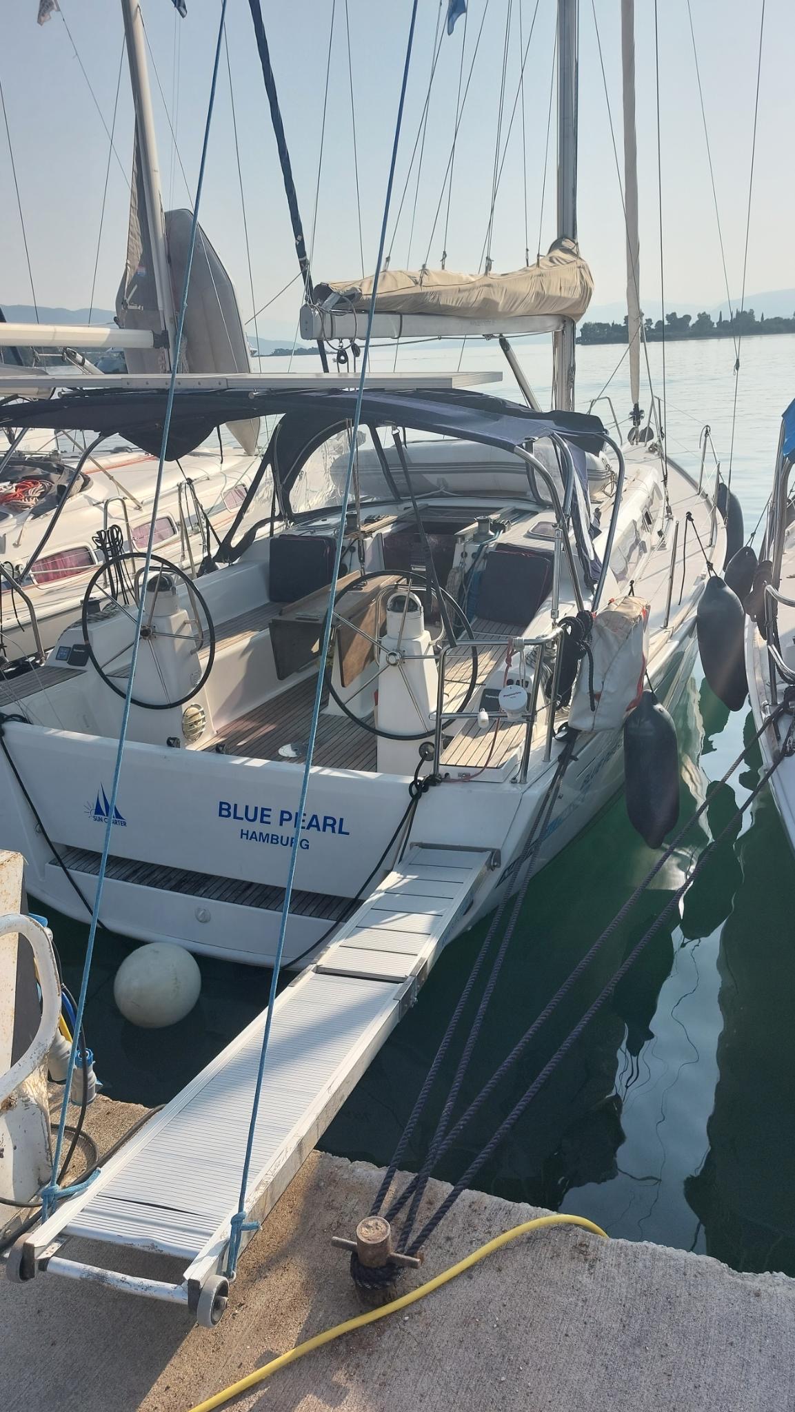 220 V-Landanschluss, Anker mit Kette, Ankerwinsch, Biminitop, Bootshaken, Cockpitdusche, Cockpitlautsprecher, Cockpitpolster, Cockpittisch, Dieselkanister , elektr. Ankerwinsch, Fender, Festmacherleinen, Gangway, Kugelfender, Kunststoff-Eimer (Pütz), Lifeline System, Solaranlage, Sprayhood, Teak im Cockpit, Wantenschneider, Wasserkanister , Wasserschlauch, Windex |