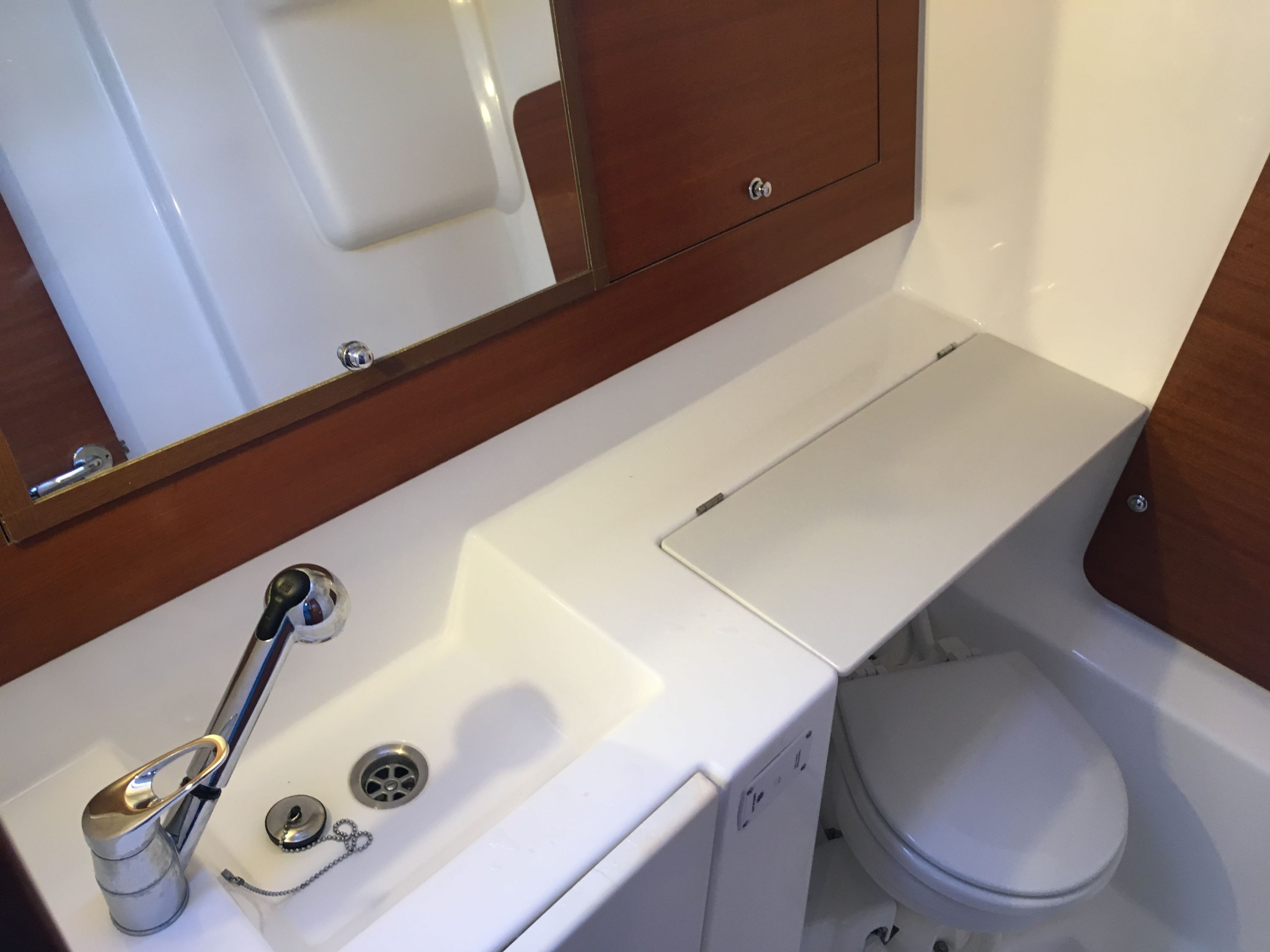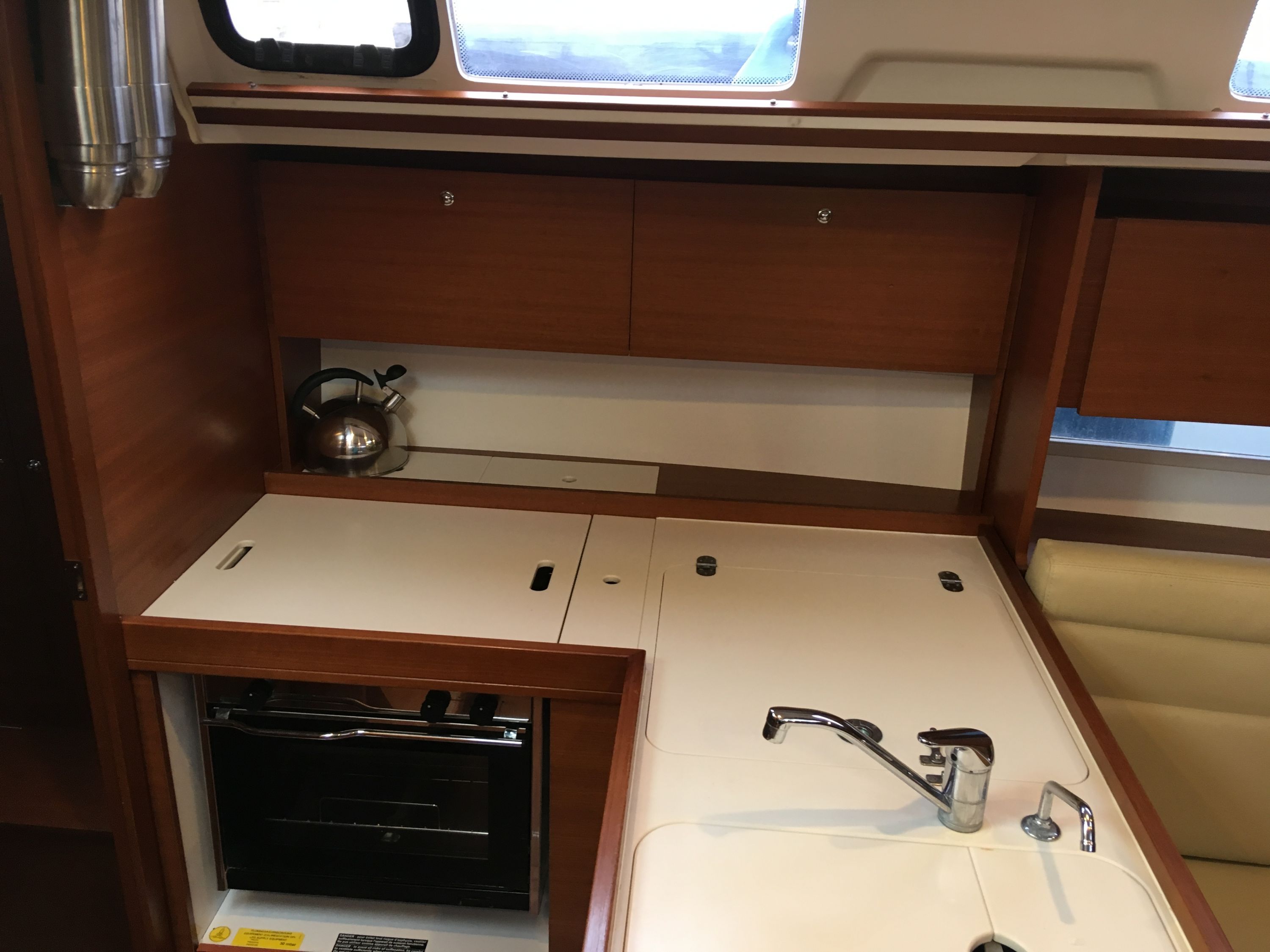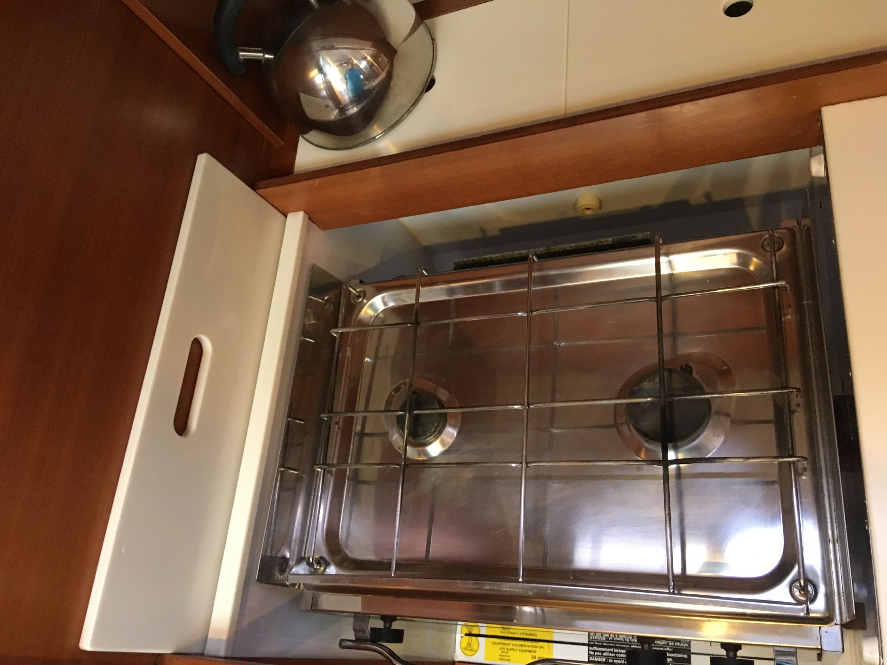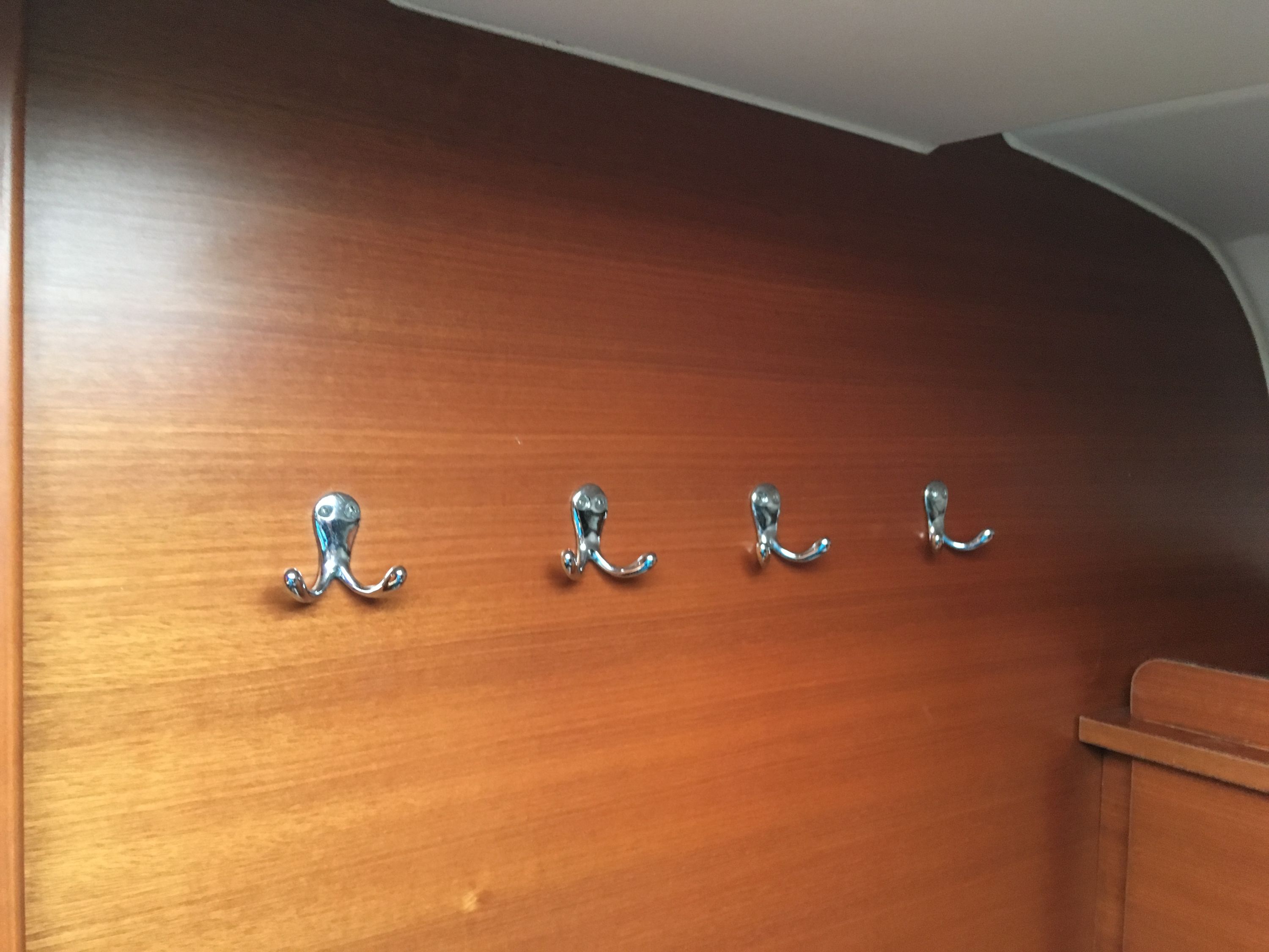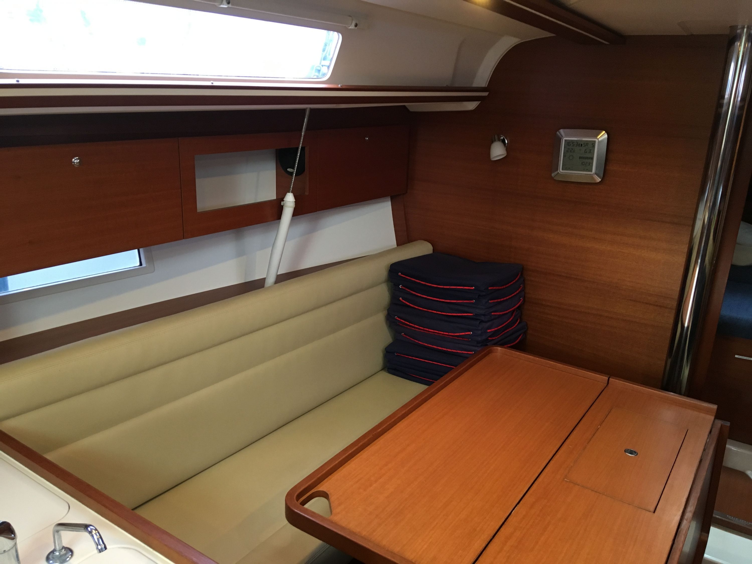 Borduhr, CD-Player, Fäkalientank, Kühlschrank, Ladegerät, Luftpumpe für Beiboot, Pantryausstattung, Radio, Salontisch absenkbar, Warmwasser |